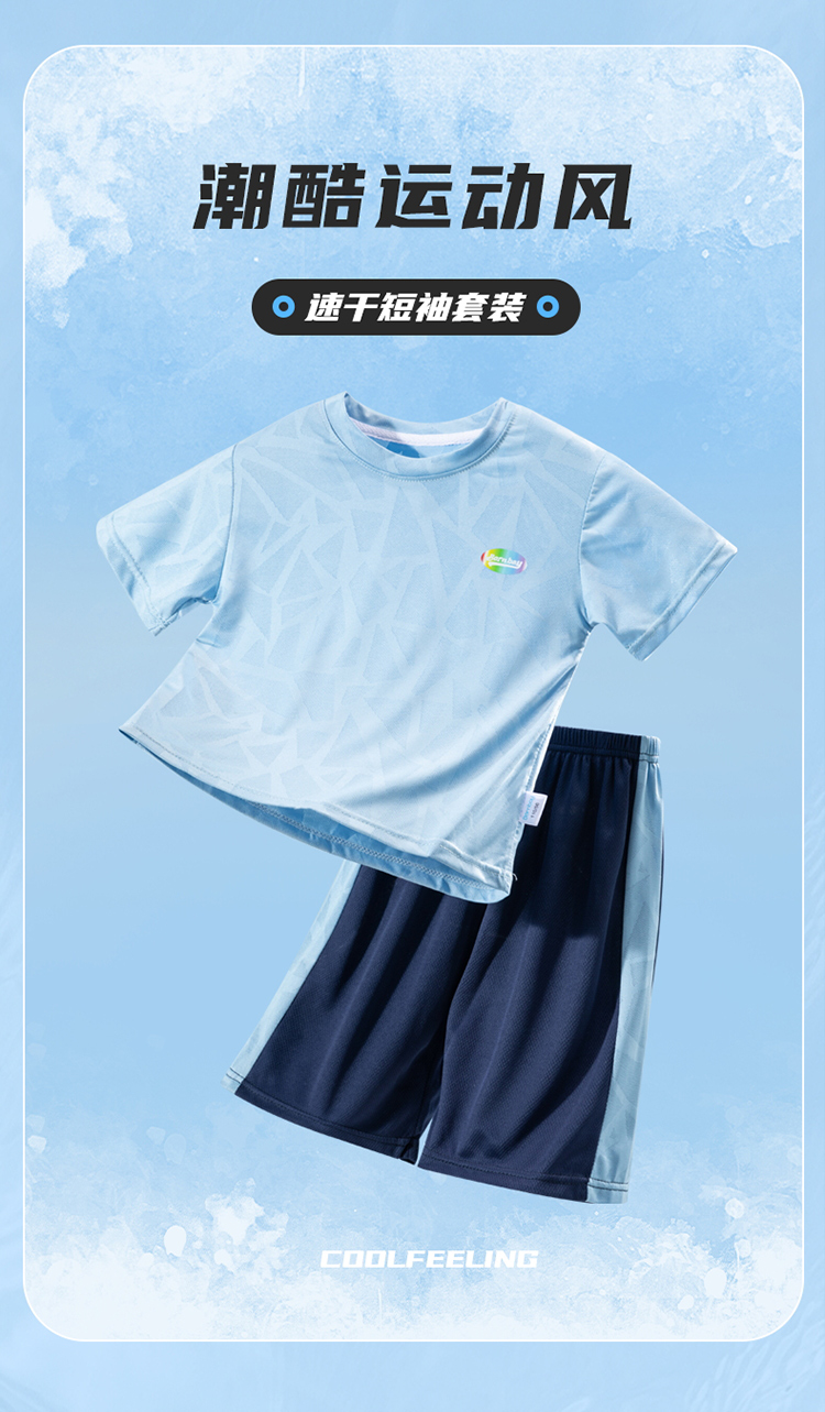 贝贝怡童装男童套装儿童速干衣2024新款夏装冰感透气运动短袖t恤
