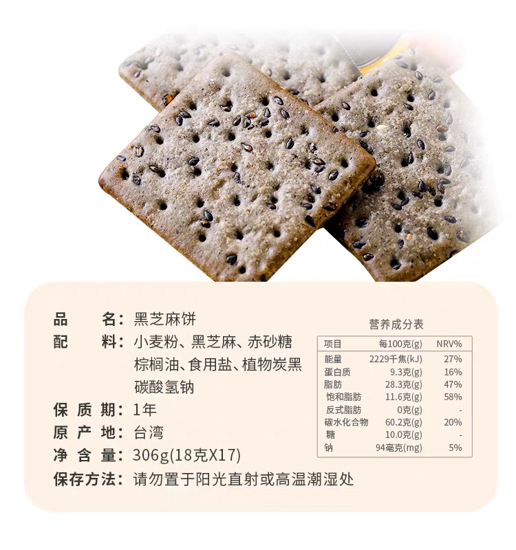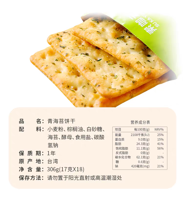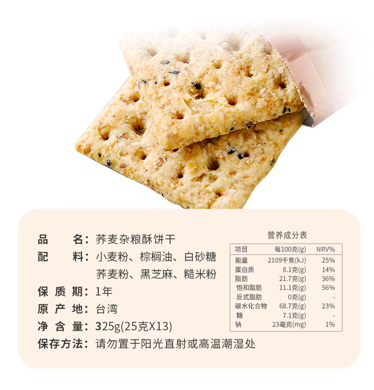 台湾谷物苏打饼 净素饼干 亚麻籽青海苔荞麦杂粮酥黑芝麻苏打饼