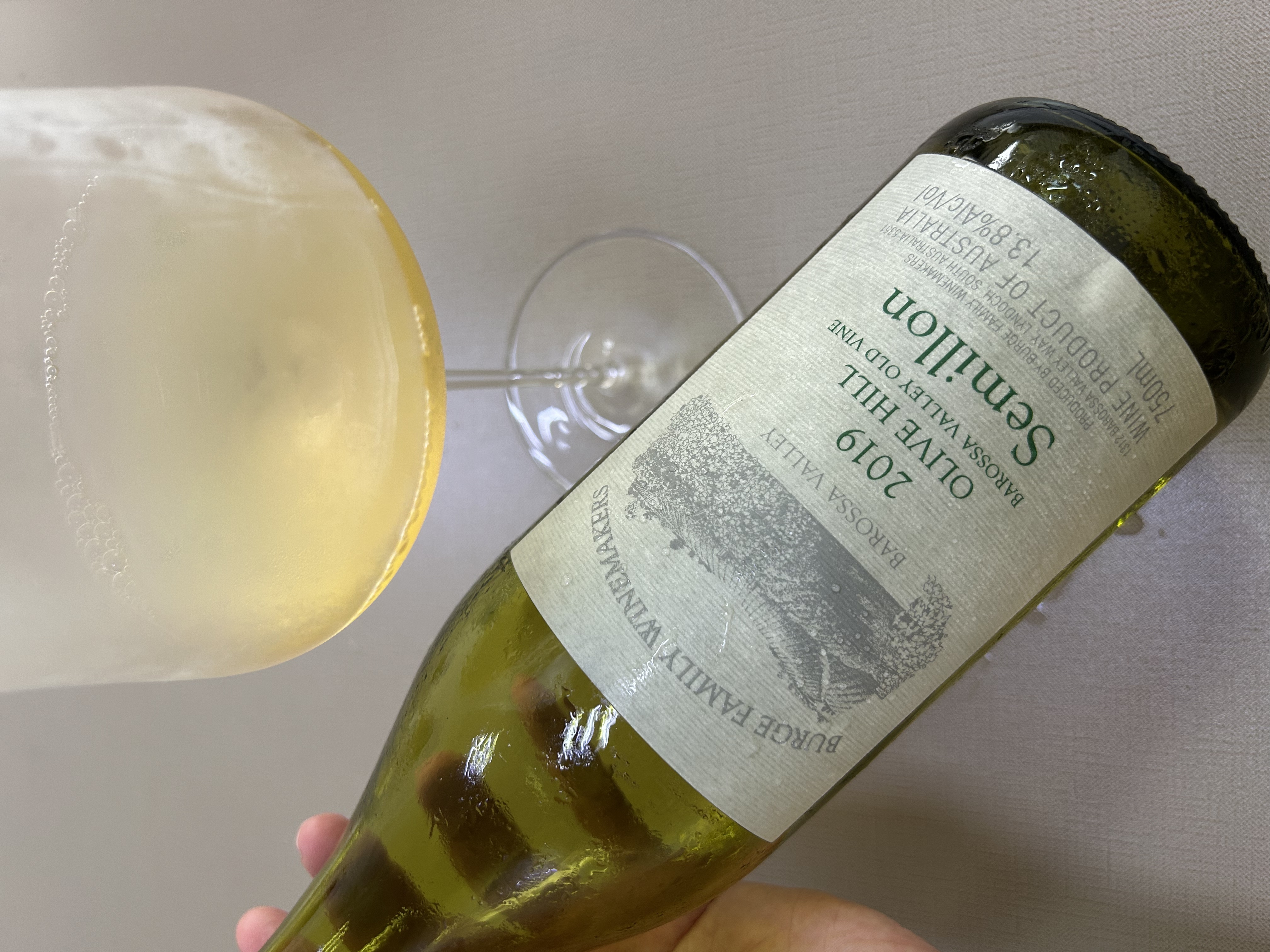 夏天就是喝干白的季节,今日红酒百科全书推荐一款平衡适饮、富有层次的澳洲干白:2019 年堡歌家族览山单一园老藤赛美蓉干白(Burge Family Winemakers Olive Hill Old Vine Semillon Barossa Valley)。