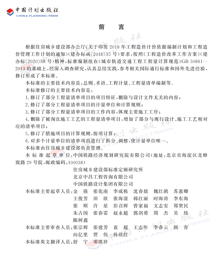 本标准的主要技术内容是:总则、术语、工程计量、工程量清单编制等。本标准适用于城市轨道交通工程施工发承包及实施阶段的工程计量和工程量清单编制。