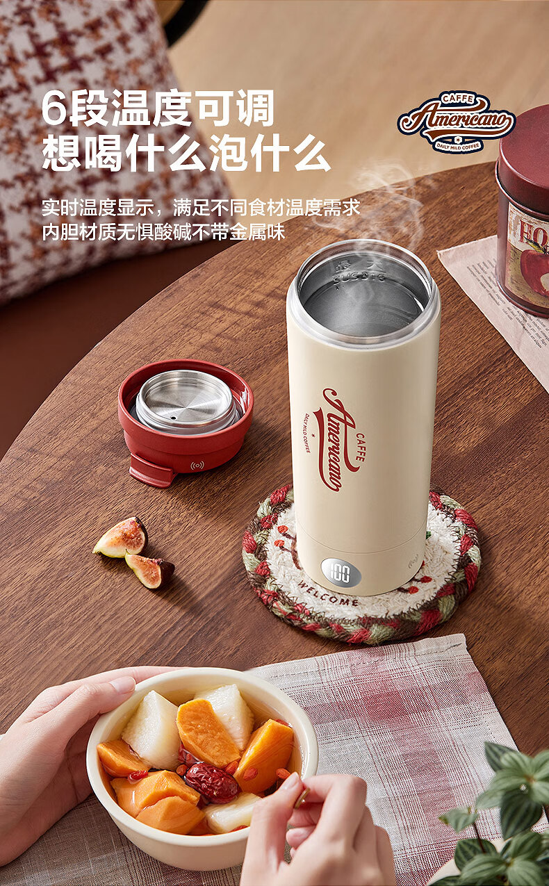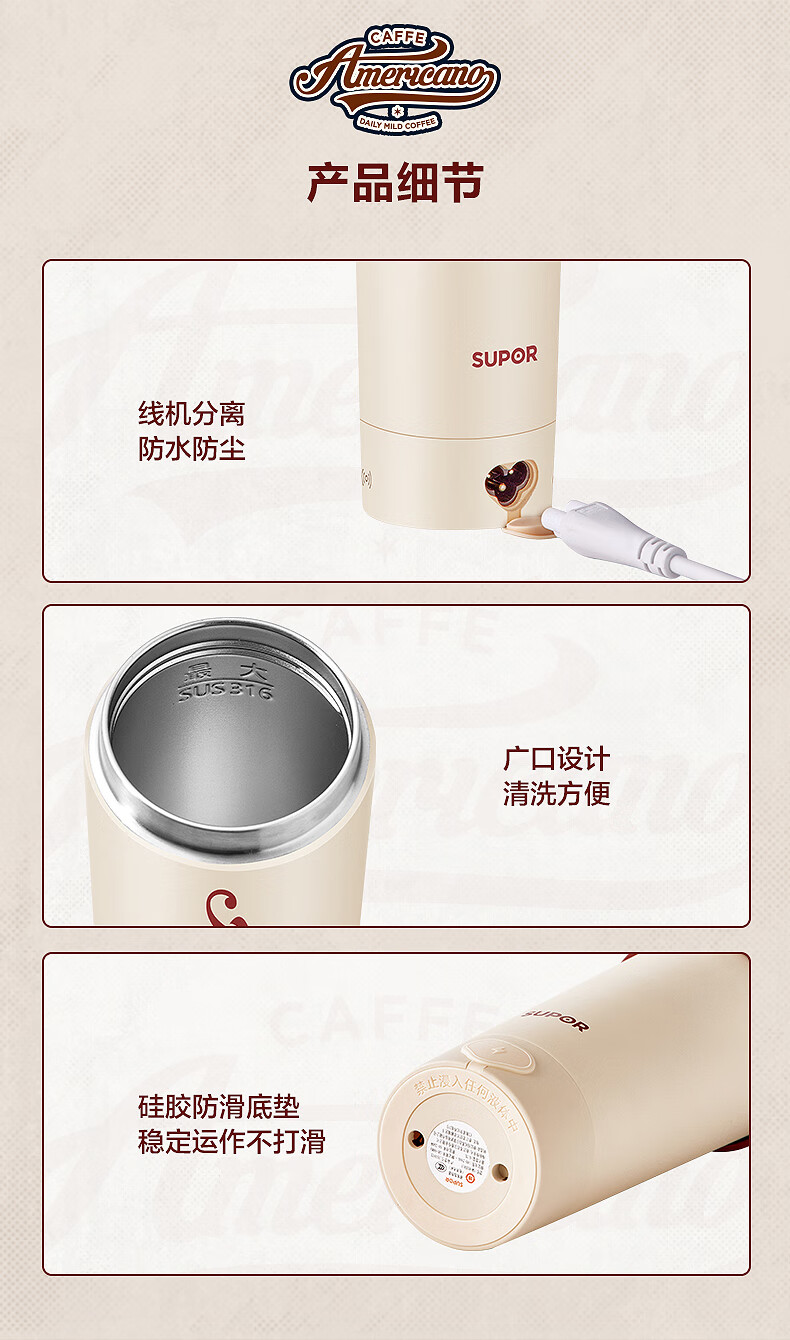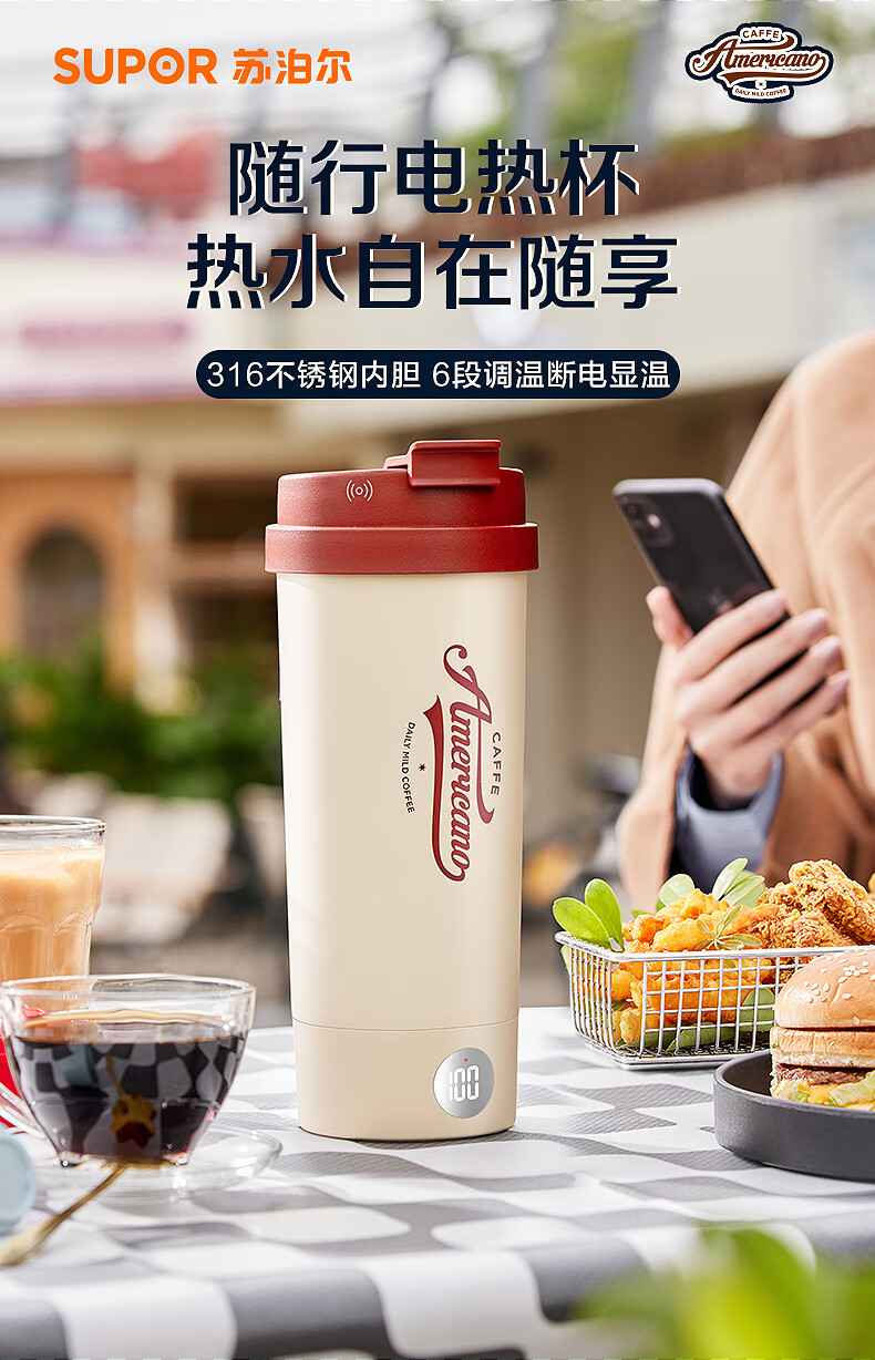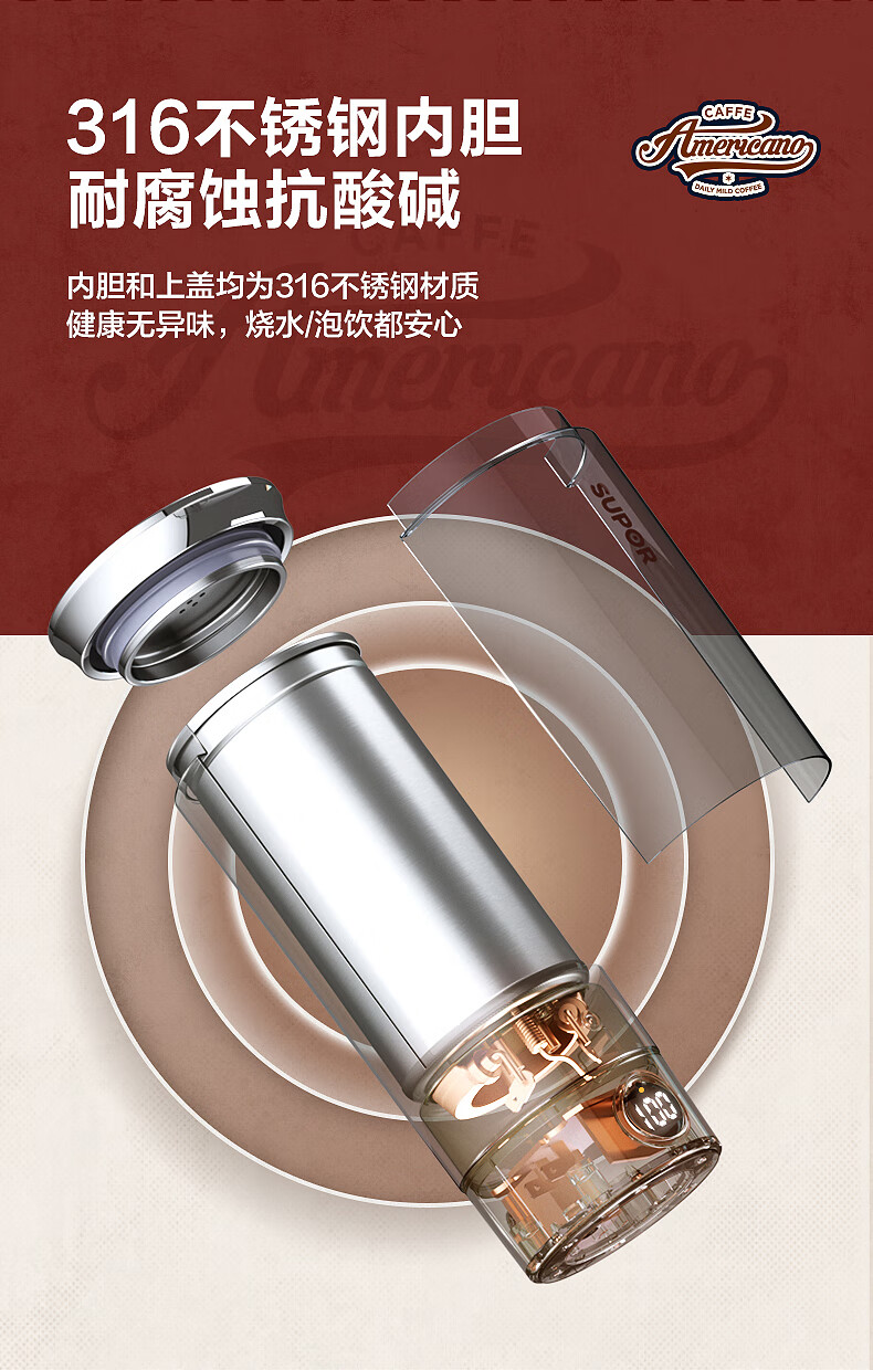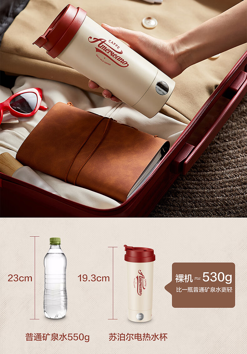 苏泊尔(SUPOR)便携式烧水杯家用旅行电热杯 316不锈钢 旅行冲奶办公室养生 SW-03T01E 摩登红