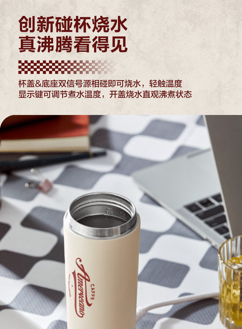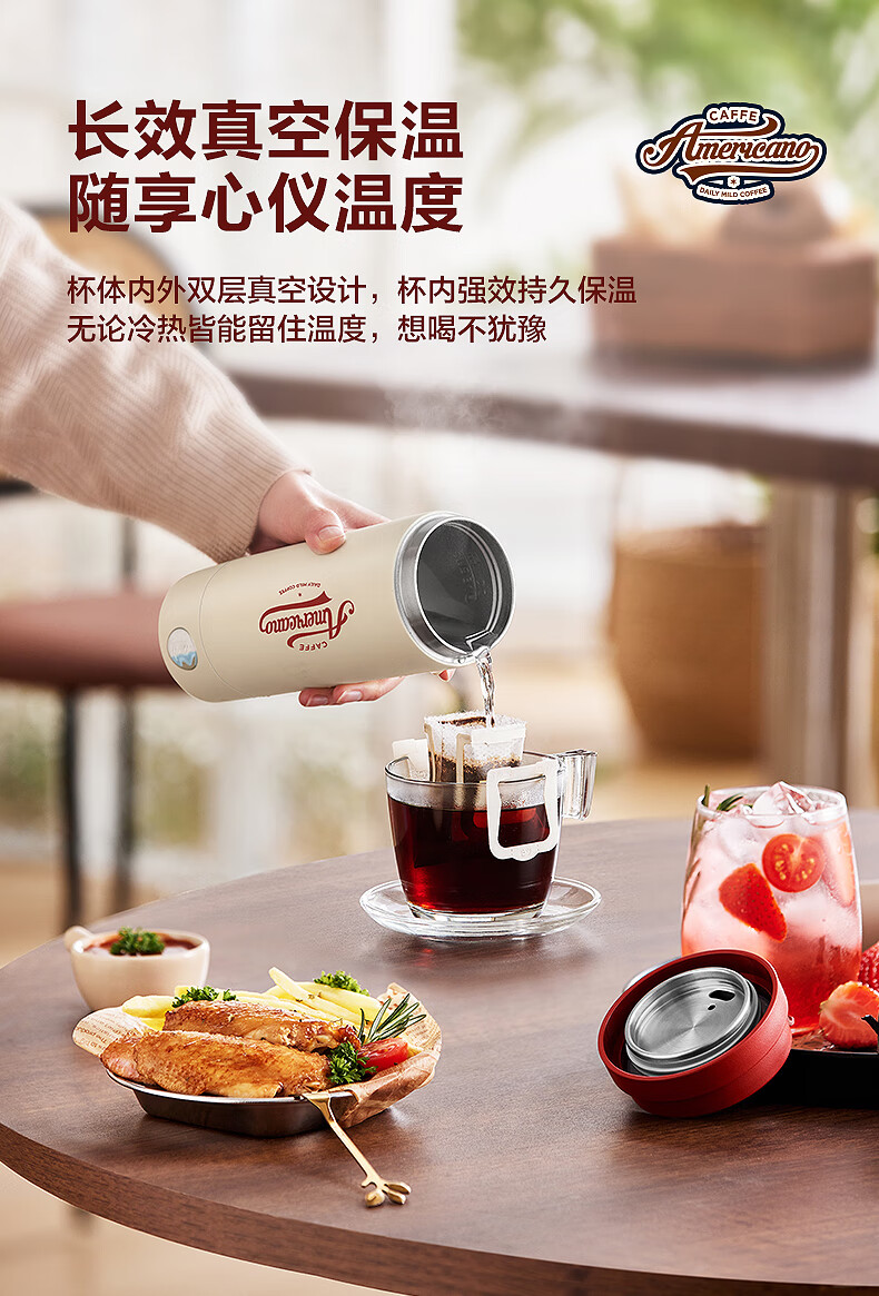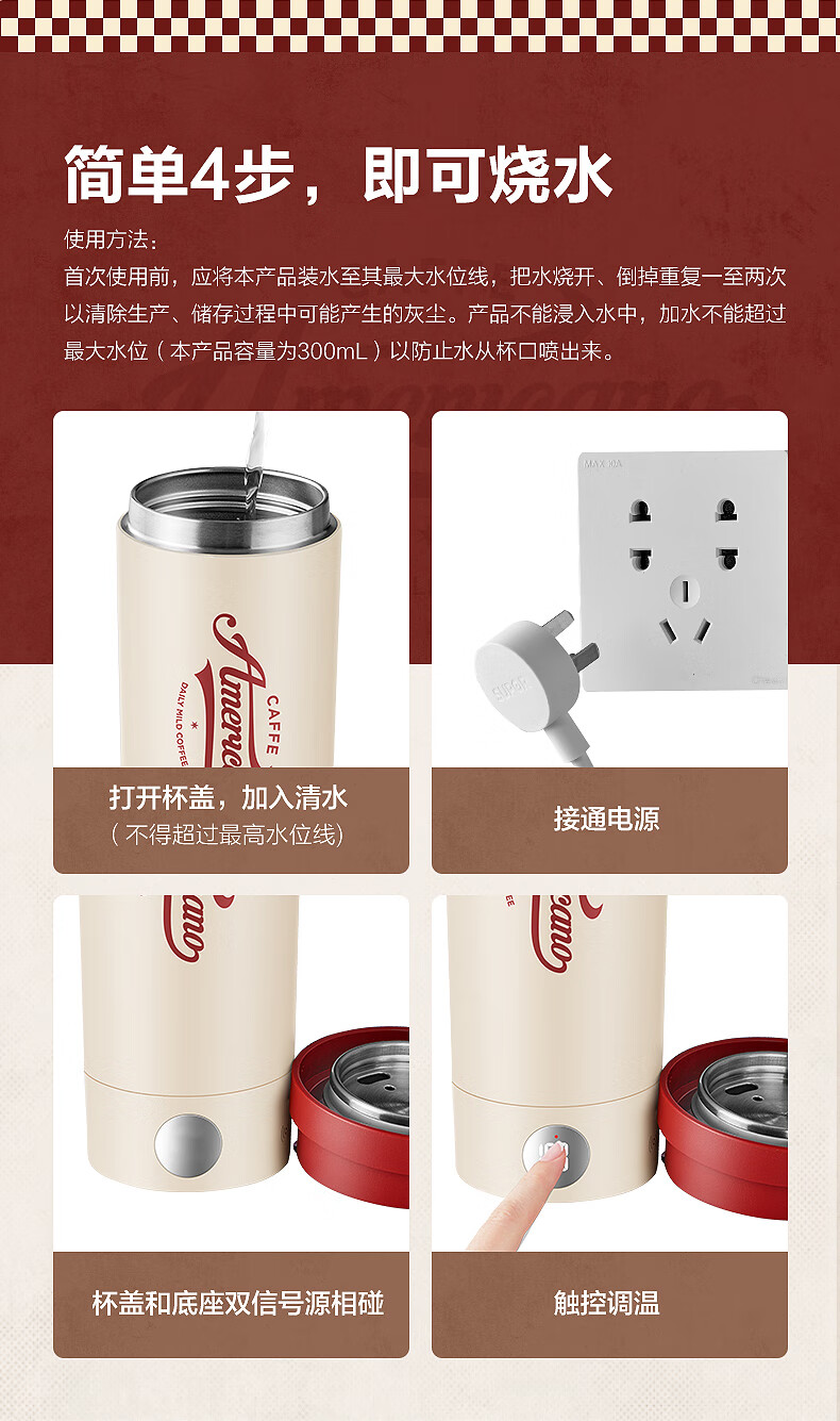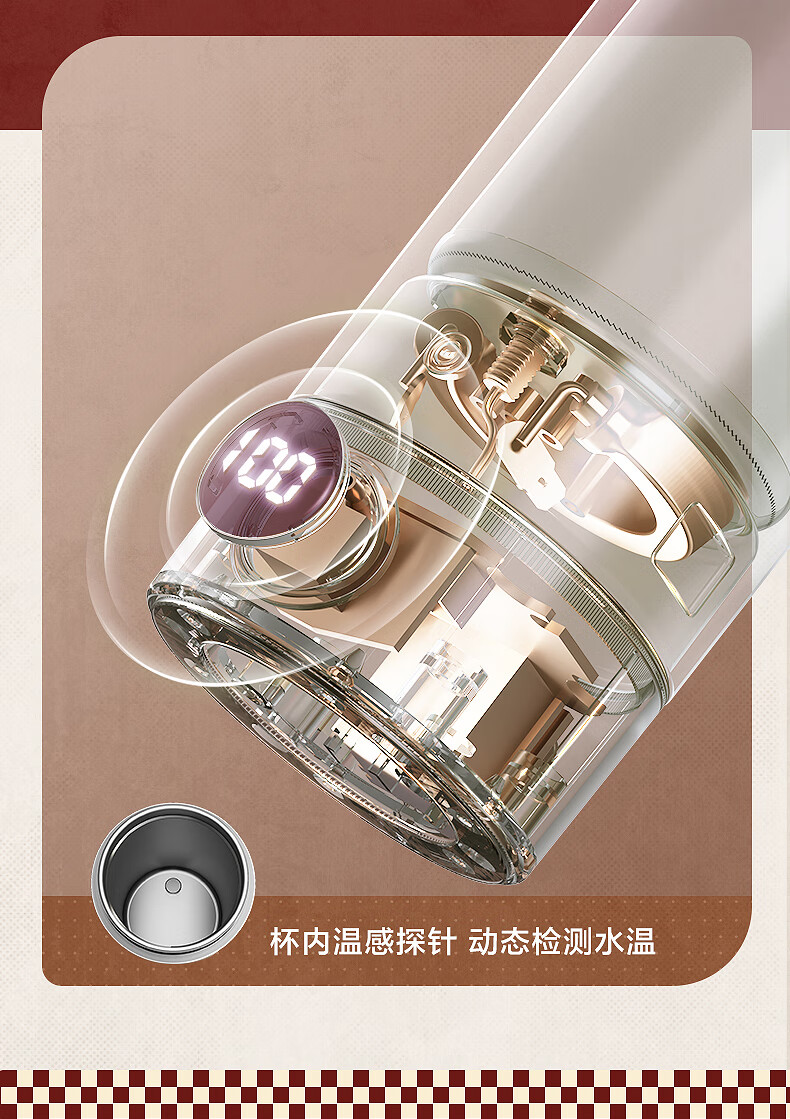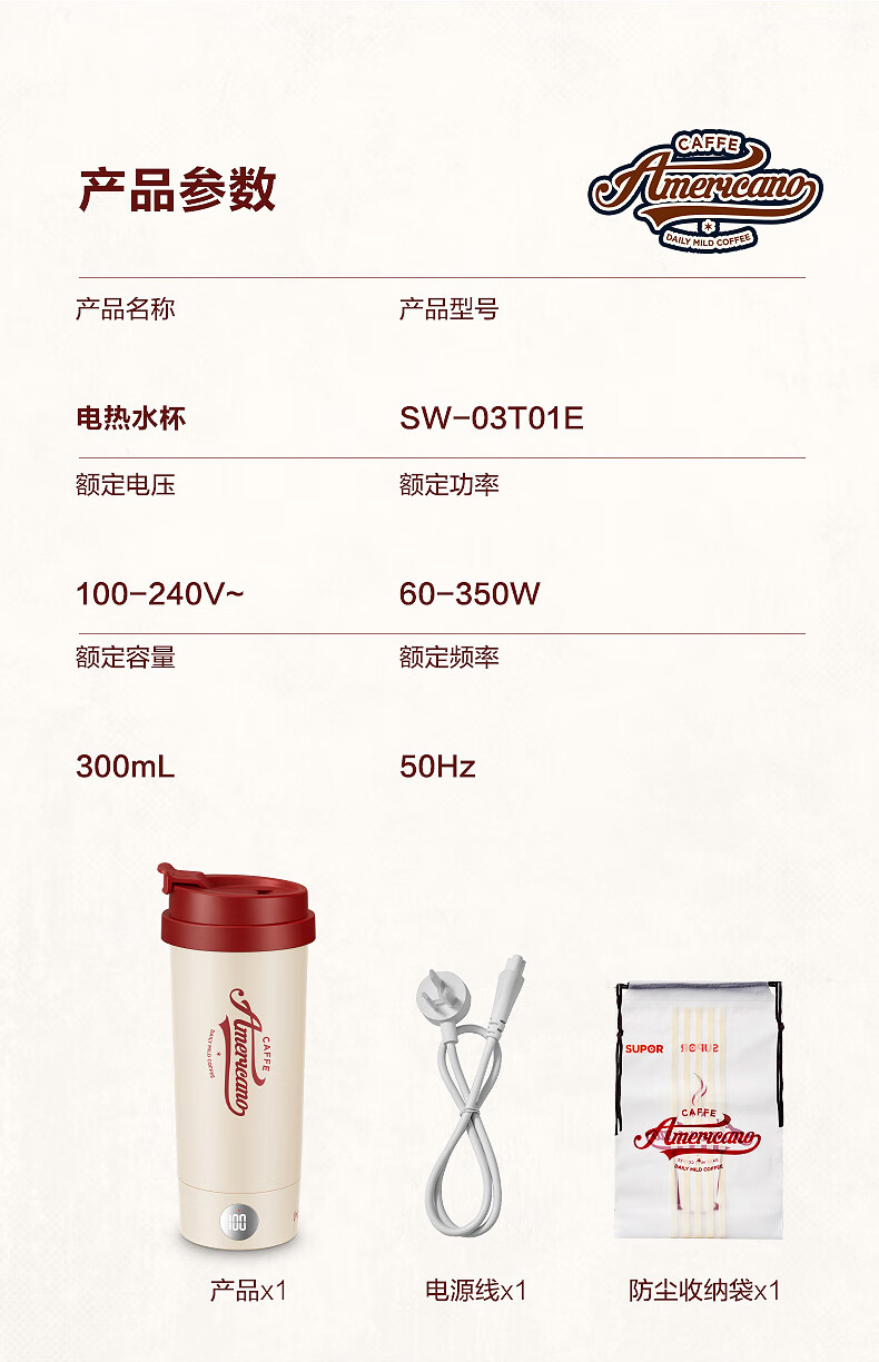 苏泊尔(SUPOR)便携式烧水杯家用旅行电热杯 316不锈钢 旅行冲奶办公室养生 SW-03T01E 摩登红