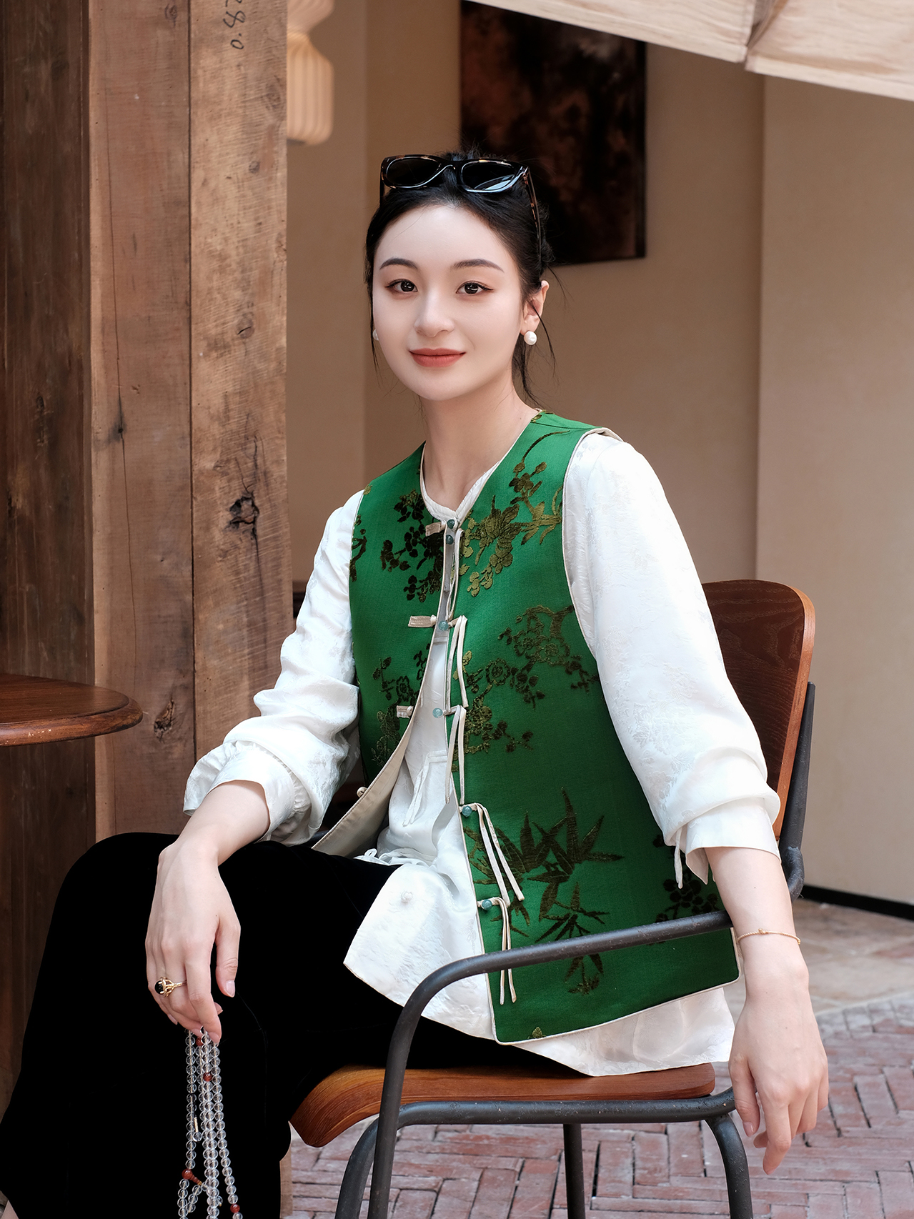 盛唐牡丹| 珍珠白真丝竹子纹偏襟上衣