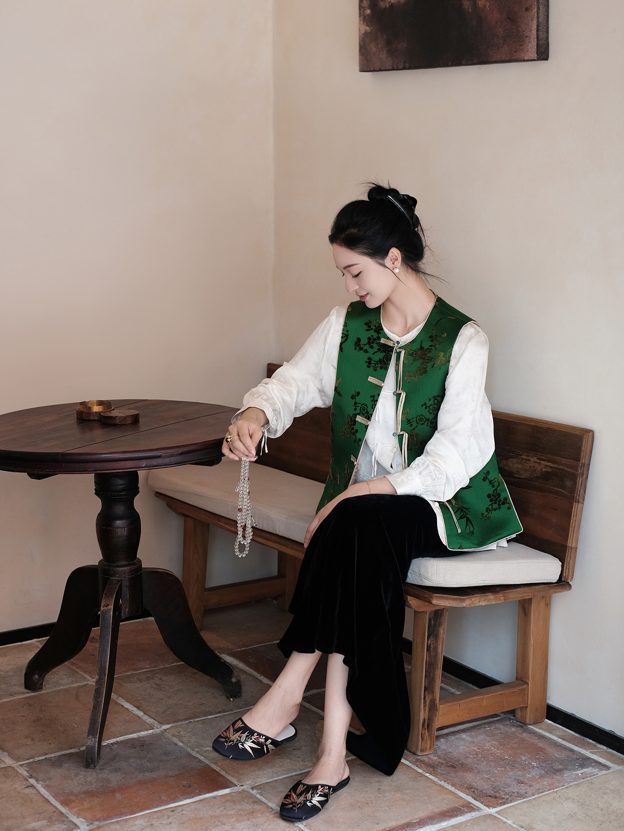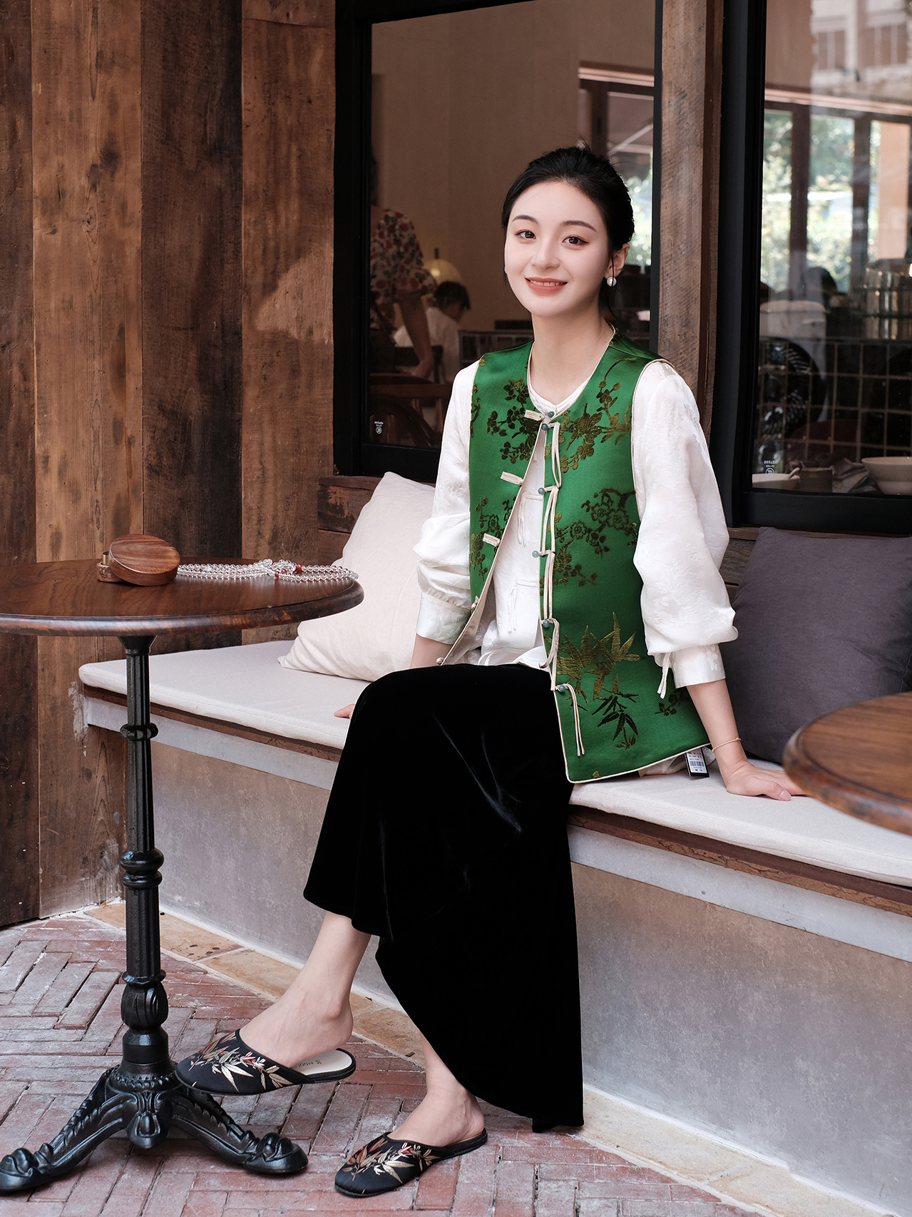 盛唐牡丹 |翠微绿底色梅兰竹菊漳缎马甲