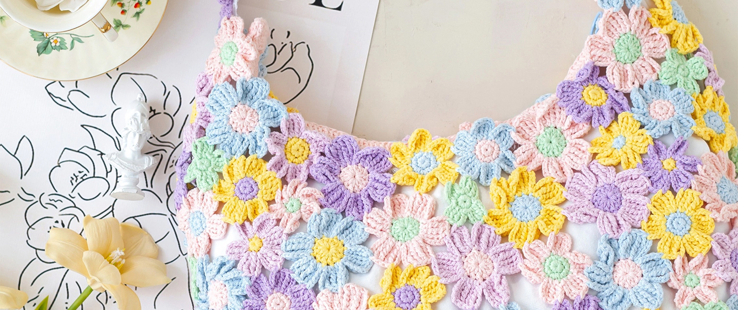 苏苏姐家四叶草与太阳花单肩包手工diy编织钩针云小骨毛线团材料包