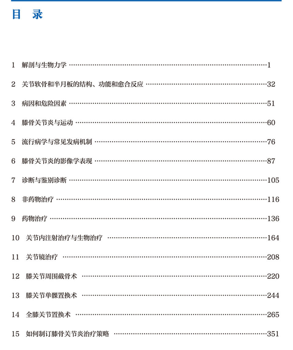 本书全面介绍了膝骨关节炎的最新研究成果。除对现有治疗方案进行详尽的循证医学综述外,还系统阐述了膝关节解剖结构、生物力学特性、生物化学特征、病因病理机制及影像学评估等基础知识。在治疗策略方面,内容涵盖非药物疗法、药物治疗、关节内药物及细胞注射疗法、关节镜治疗、截骨术和人工关节置换术等多元化治疗手段。通过深入解析疾病本质和不同临床情况下的治疗选择,旨在帮助读者建立系统的诊疗思维,尤其强调在制订治疗策略时需要综合考虑关节炎程度、患者活动水平、生活方式及疼痛程度等个体化因素。由于本书内容突破传统以手术为核心的论述模式,不仅为骨科专科医生提供专业指导,更为广大临床医生全面了解该疾病构建了完整的知识体系。