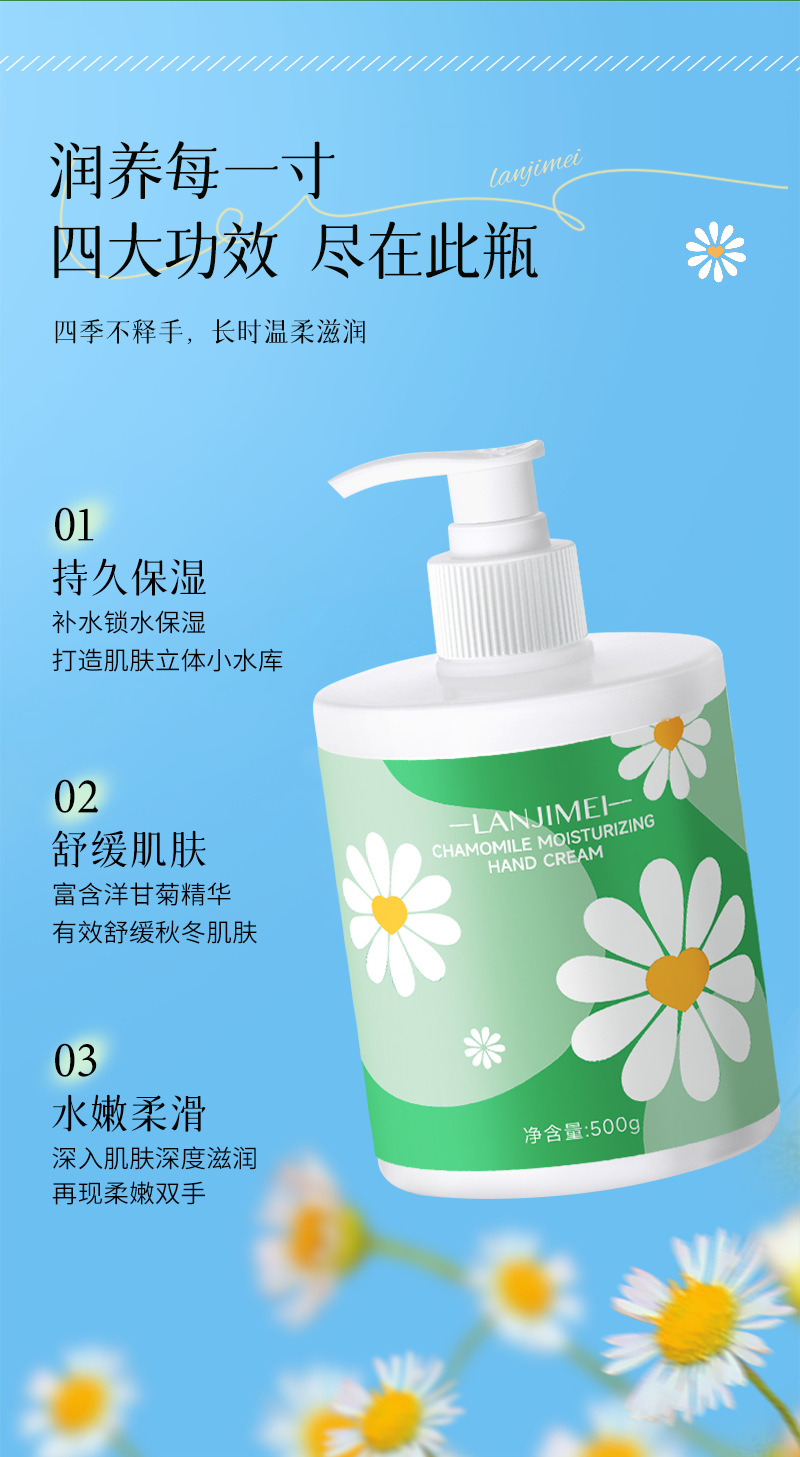 【一抹爆水❗️洋甘菊护手霜】抹出柔嫩少女手「专为手部护理研发」富含洋甘菊精华,有效舒缓秋冬肌肤,深入肌肤深度滋润,大罐滋润保湿补水,清爽不油腻凡士林护手霜L