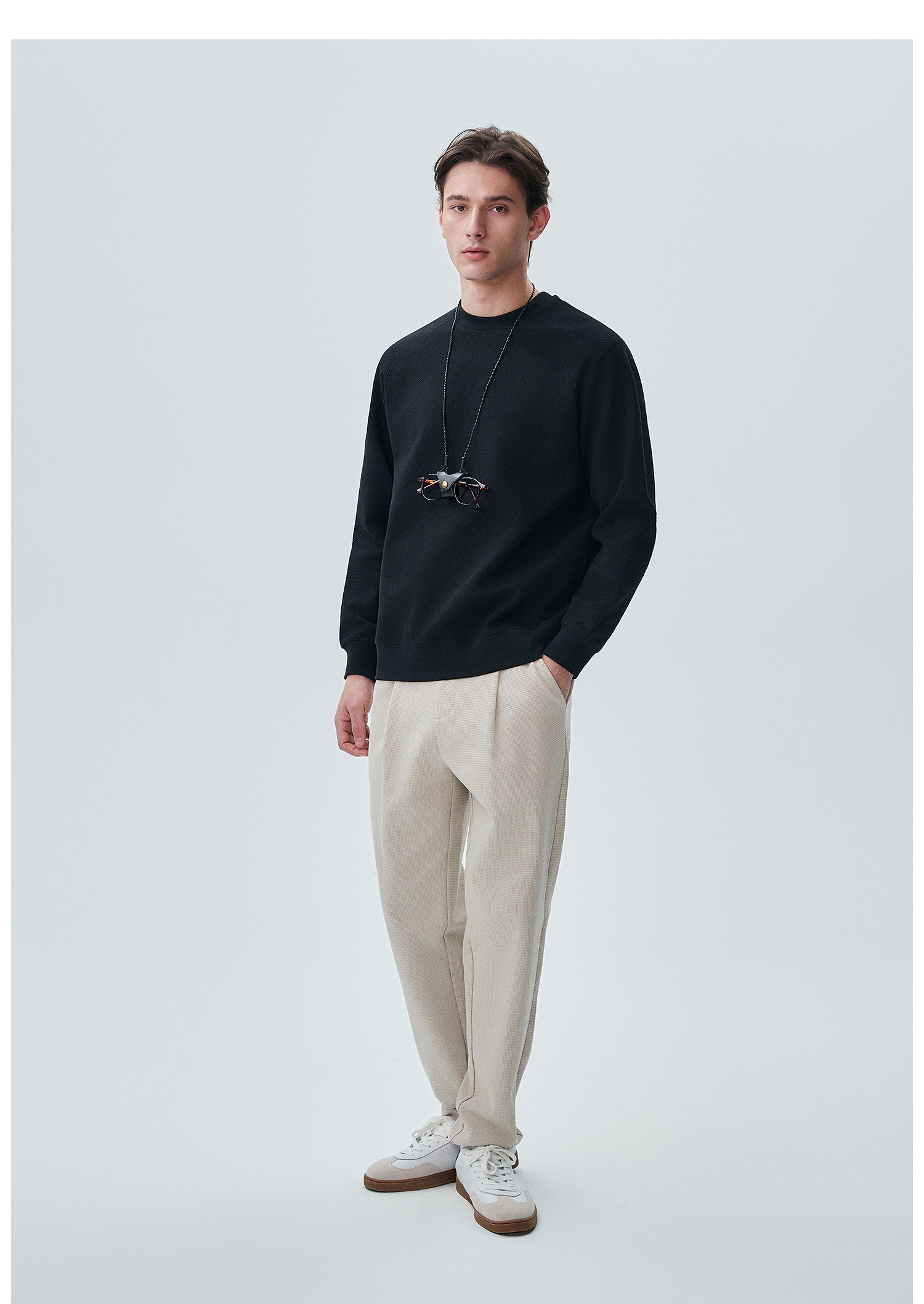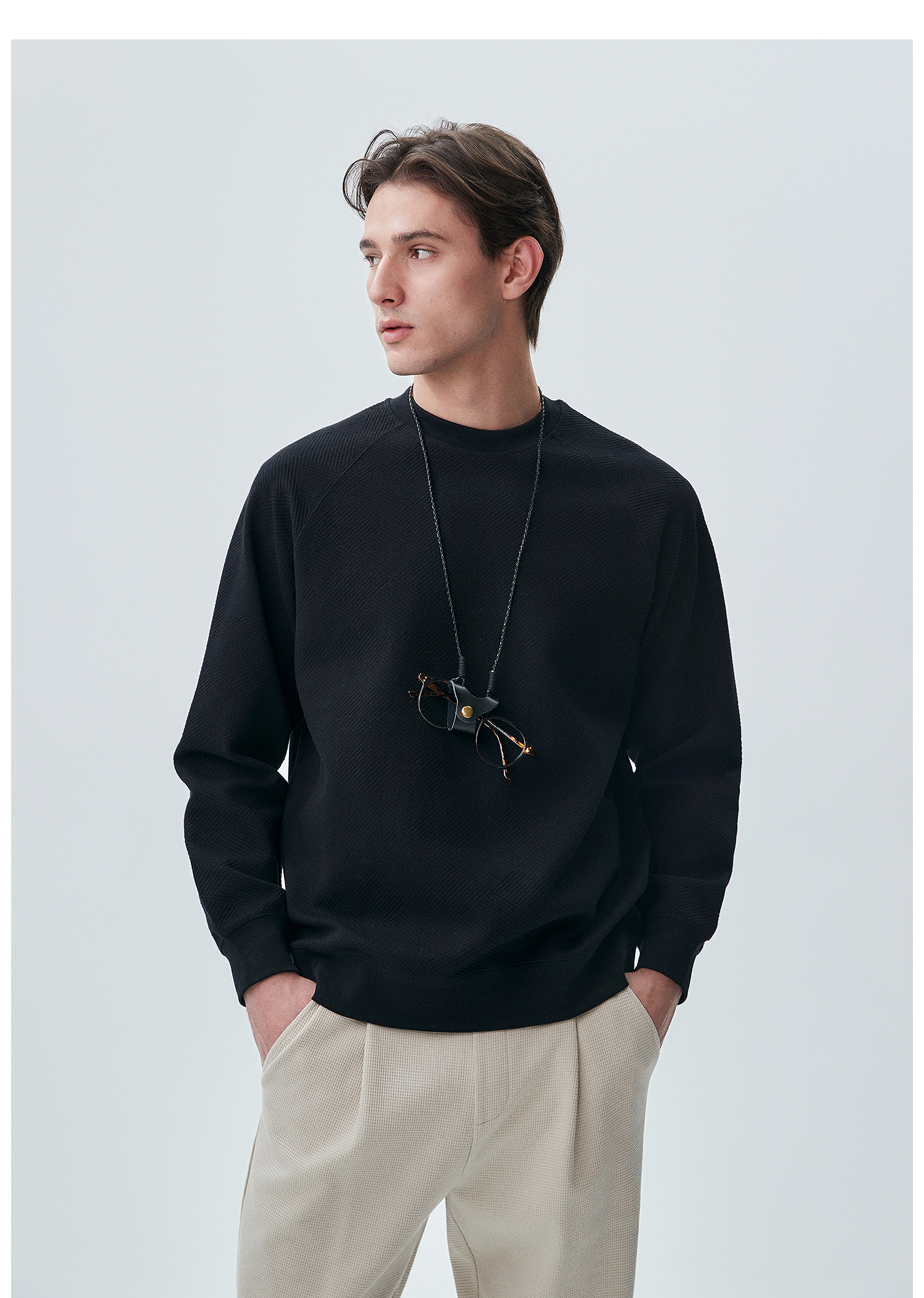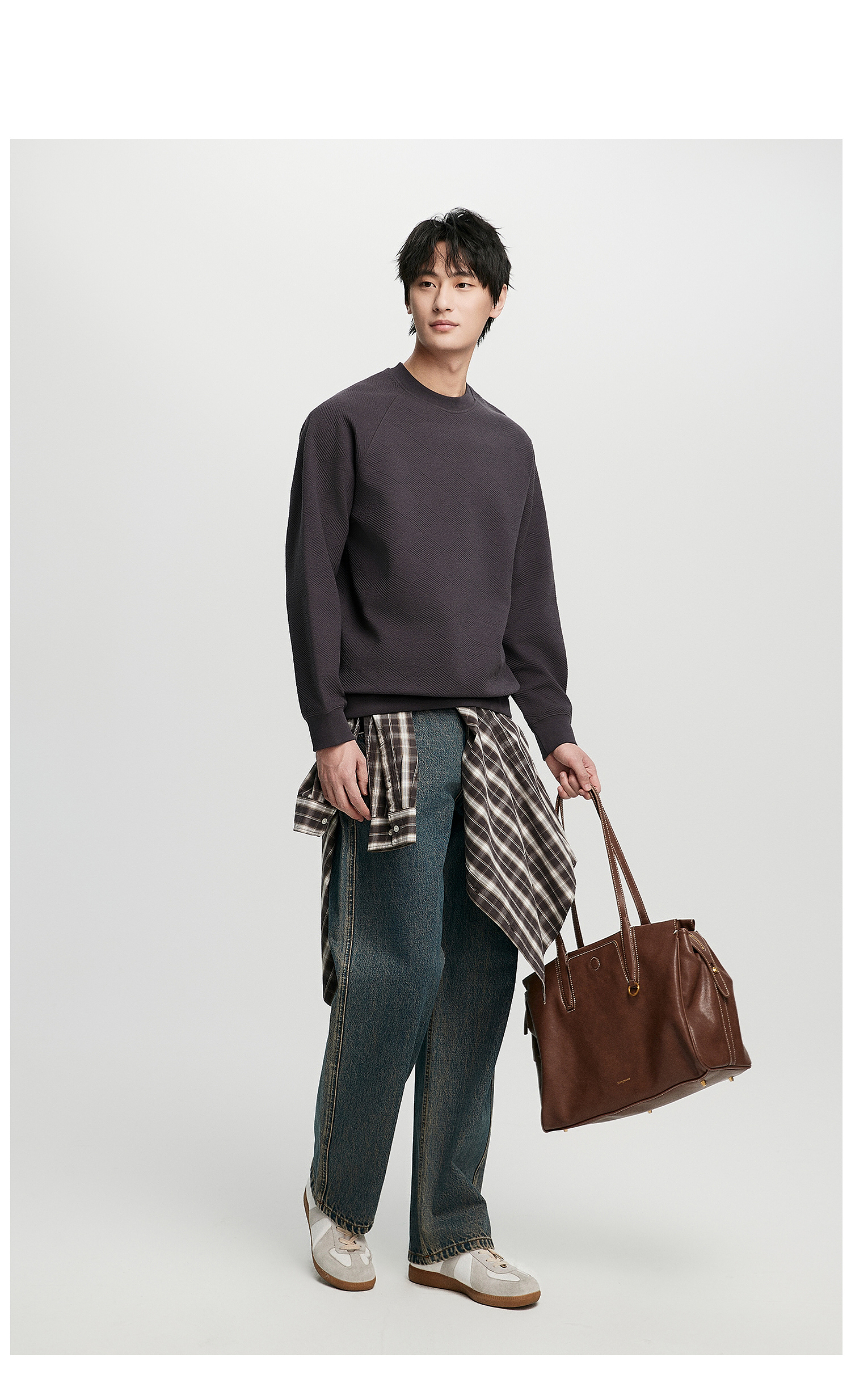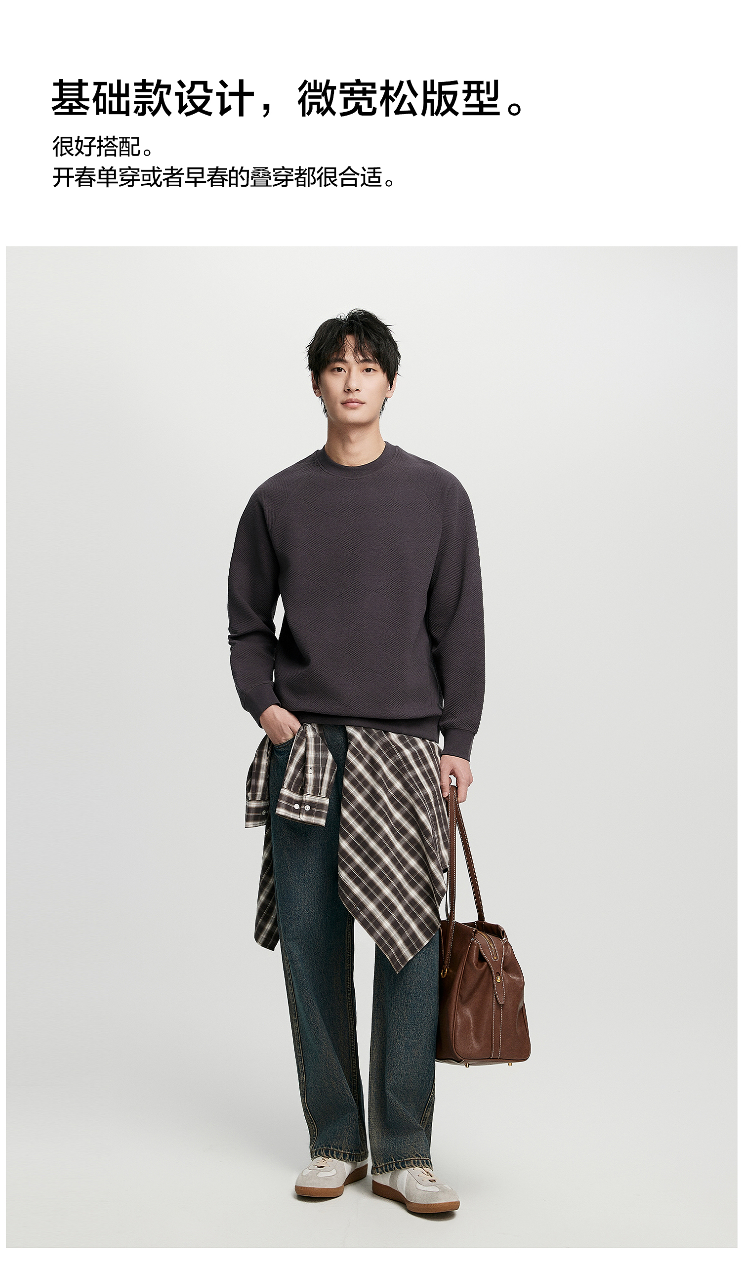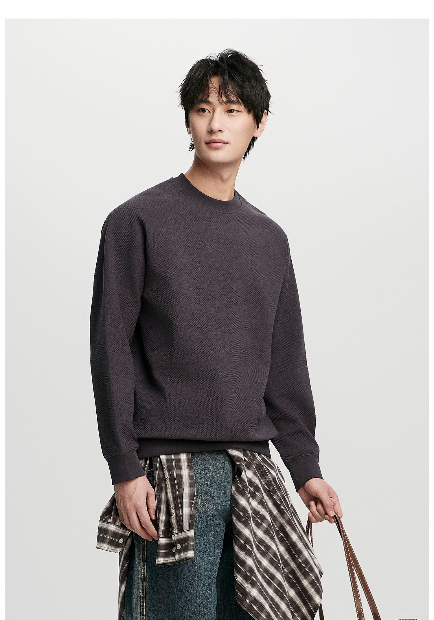 棉仓362808010-宽松插肩阔版老钱风圆领套头卫衣
