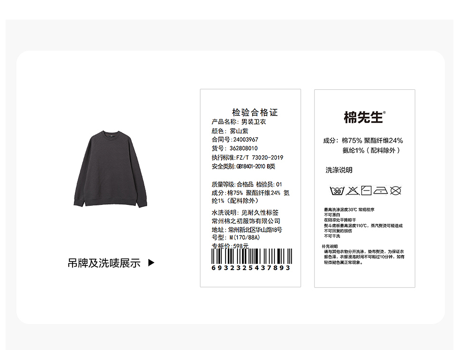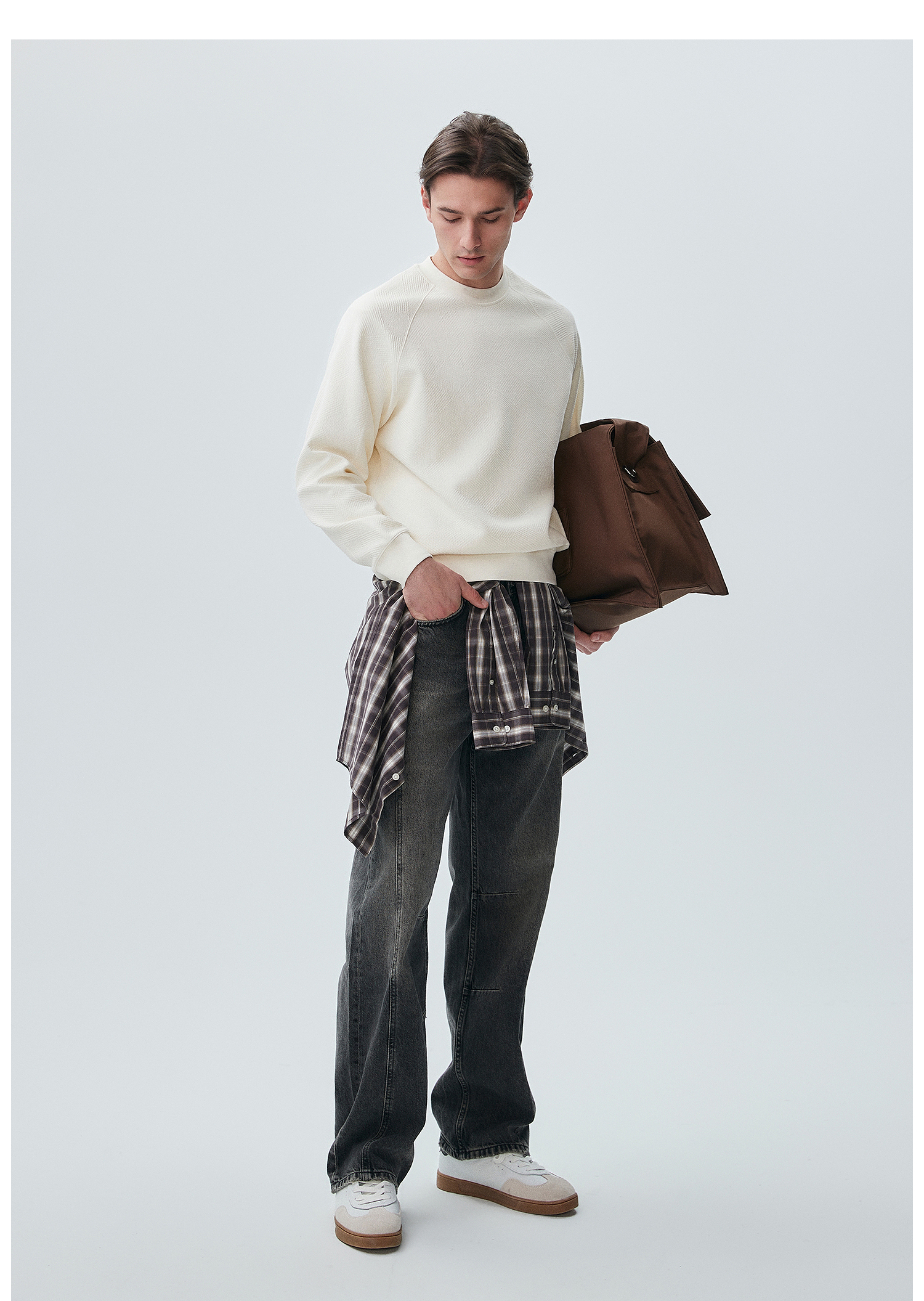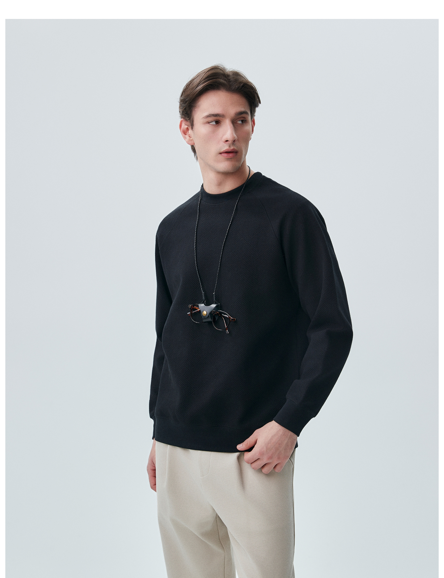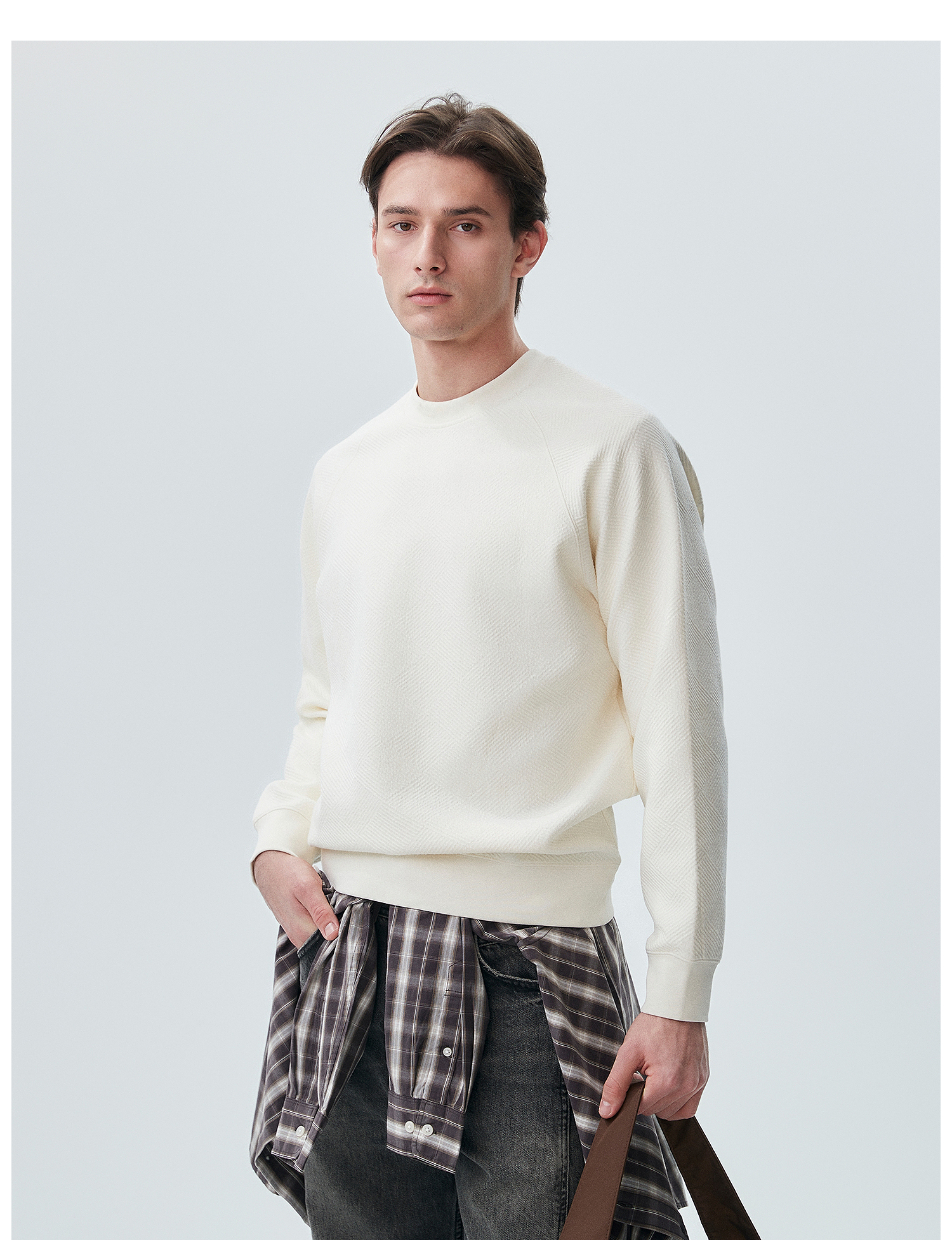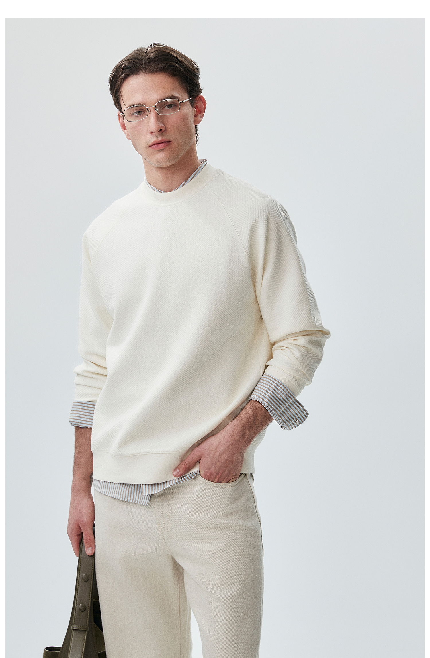棉仓362808010-宽松插肩阔版老钱风圆领套头卫衣