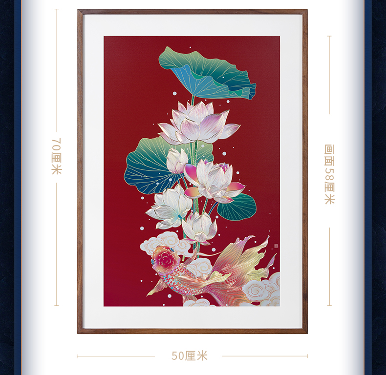 铜师傅 手工錾刻 铜雕画《荷花金鱼》装饰画