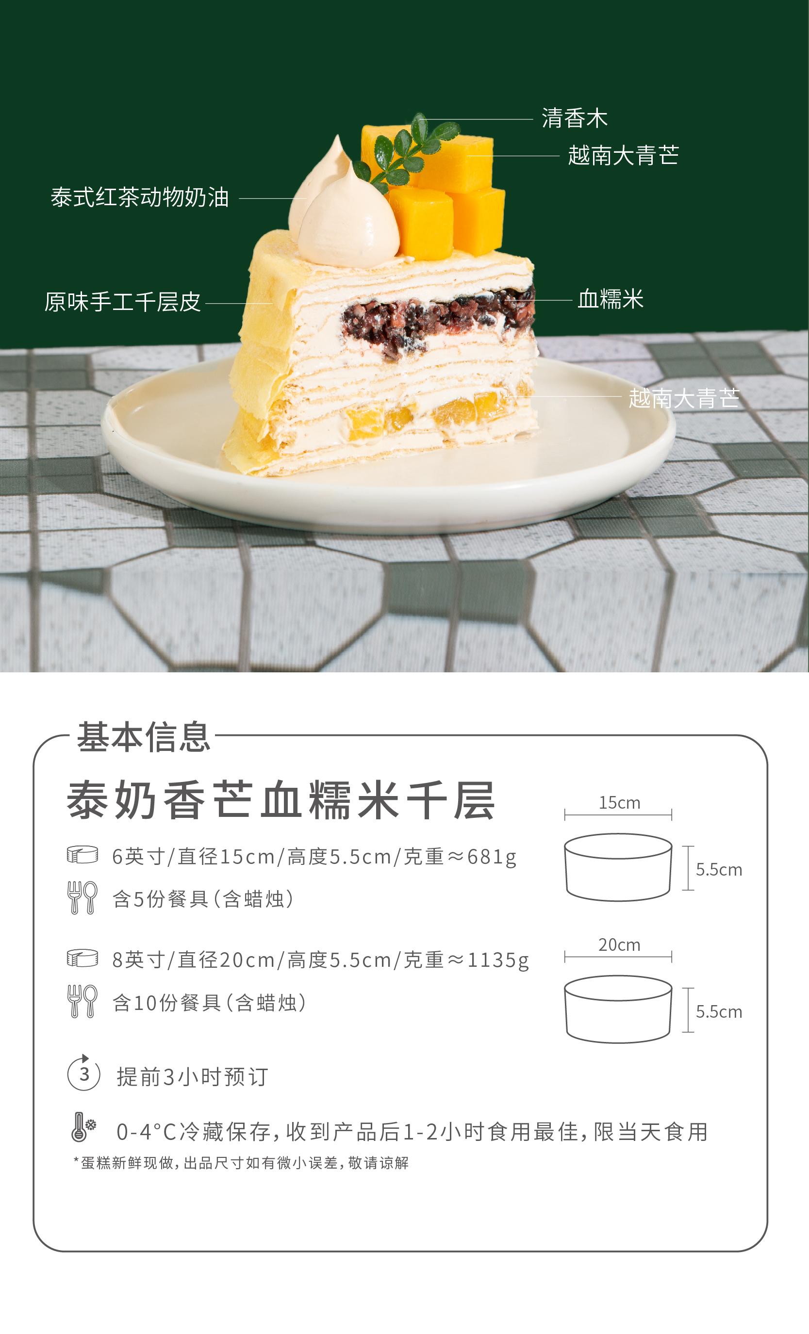 泰奶香芒 血糯米千层-可选6/8英寸