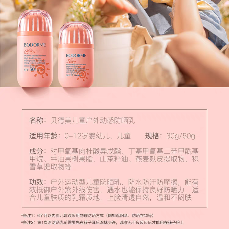 【春上新】9楼母婴生活馆 贝德美儿童户外动感防晒乳男女童防水防汗宝宝专用户外防晒乳SPF50 活动价:69元