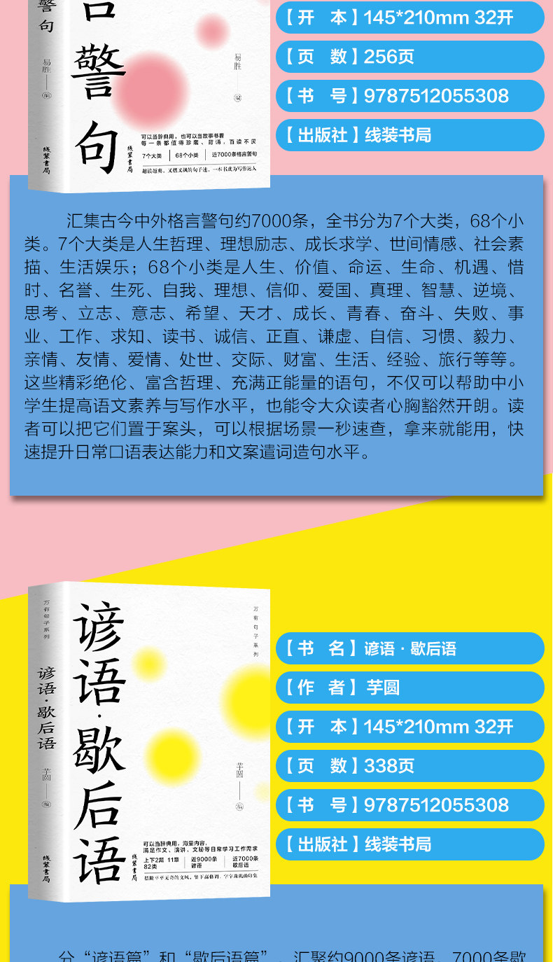 全2册万有句子系列;格言警句+谚语·歇后语 好词好句好段大全小学作文素材摘抄优美句子积累大全小学生 小学生初中生阅读课外书籍