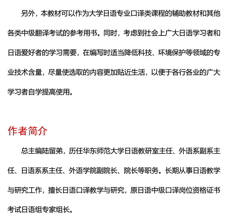 日语中级口译岗位资格证书考试 口译教程 附录音内容附答案陆留弟 高校日语专业 大学日语专业口译类课程教材