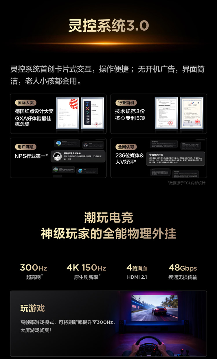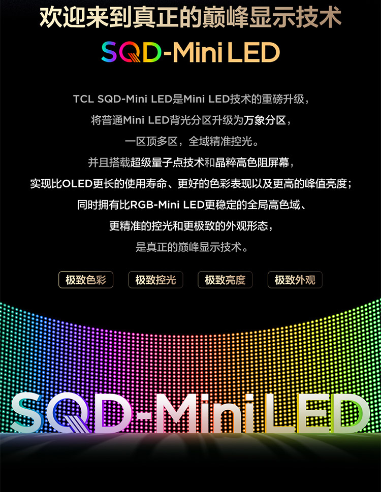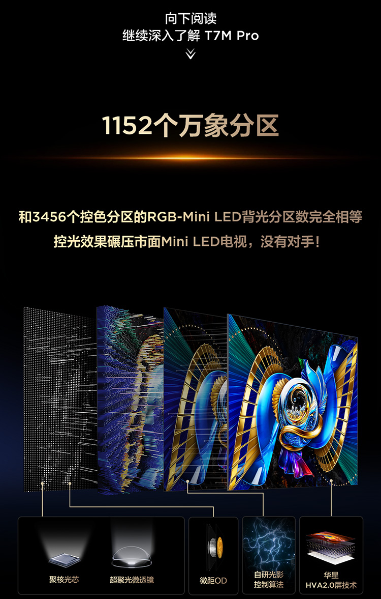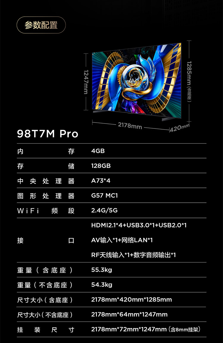 【新品上市】TCL电视 98T7M Pro 98英寸 SQD-Mini LED 100%全局高色域 超级蝶翼星曜屏 万象分区 绚彩XDR 2200nits