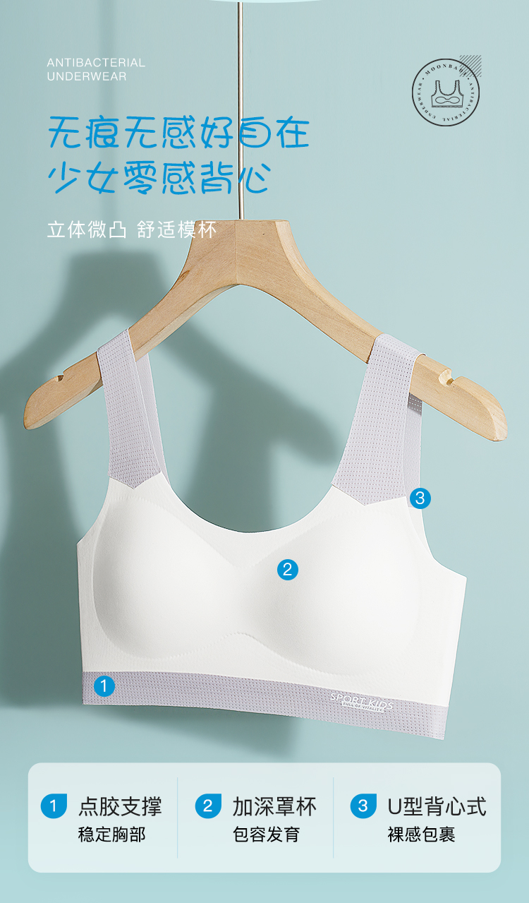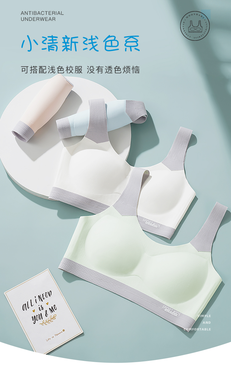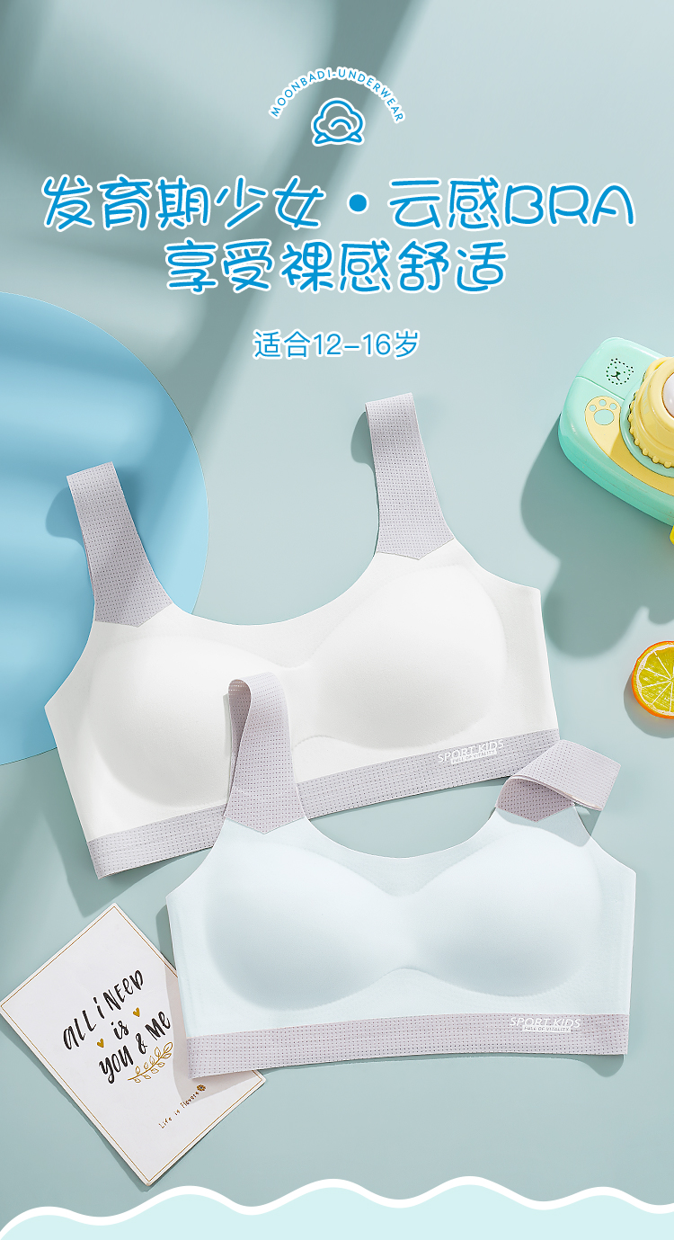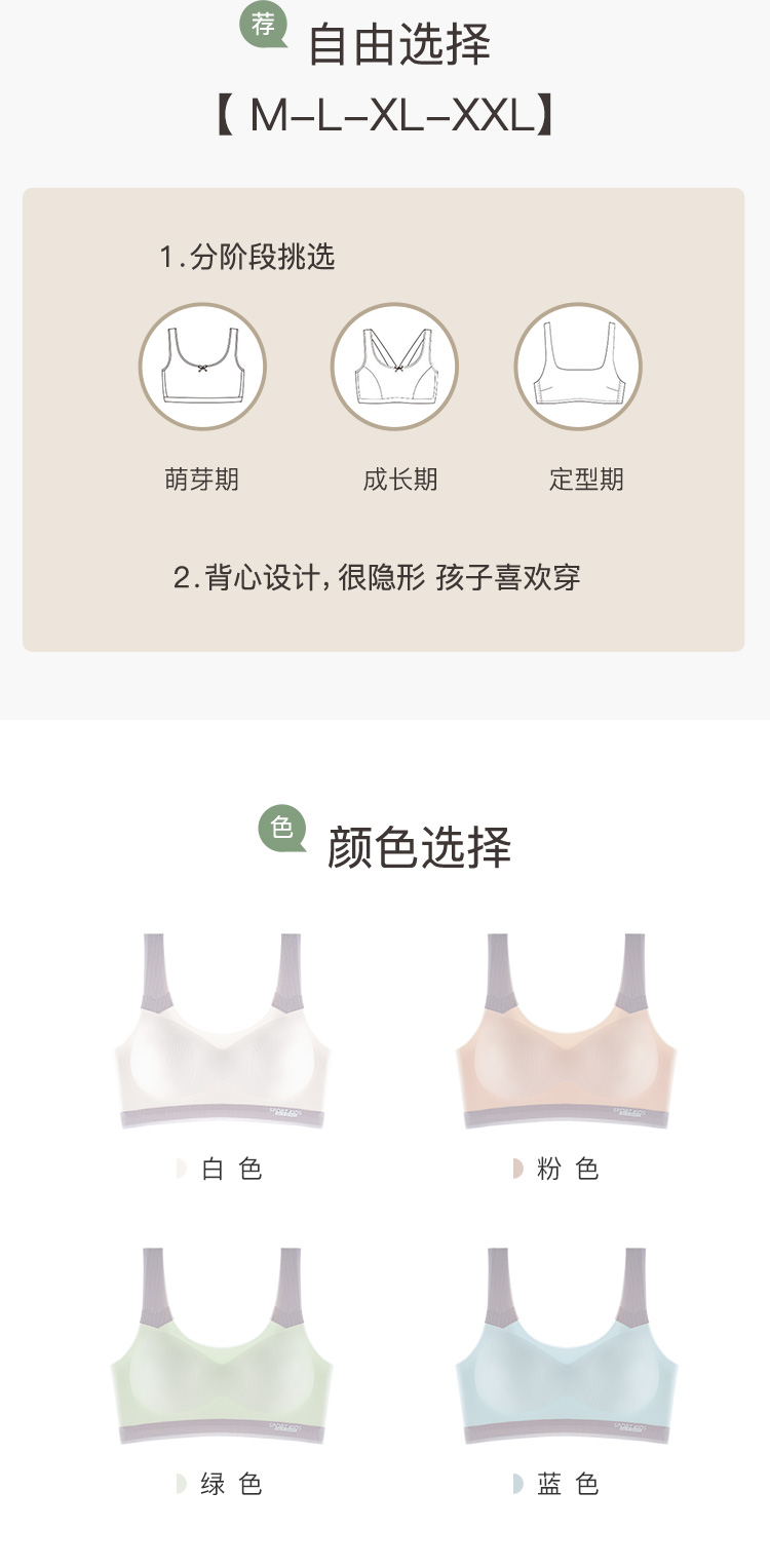 无痕冰丝背心式少女文胸轻薄透气高弹不勒发育期文胸粉黛少女2件装