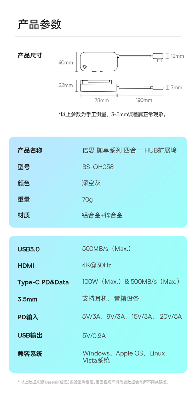 【69元3件】倍思 明镜Mini系列 随意拉伸快充数据线 Type-C to Type-C 60W