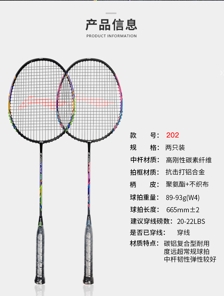 已穿线成品拍李宁(LI-NING) 羽毛球拍 G-FORCE PRO 610 对拍/ G-FORCEPLUS202 双拍 碳复合羽拍成品拍
