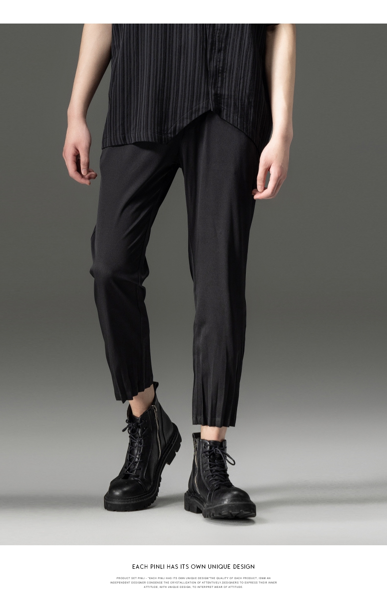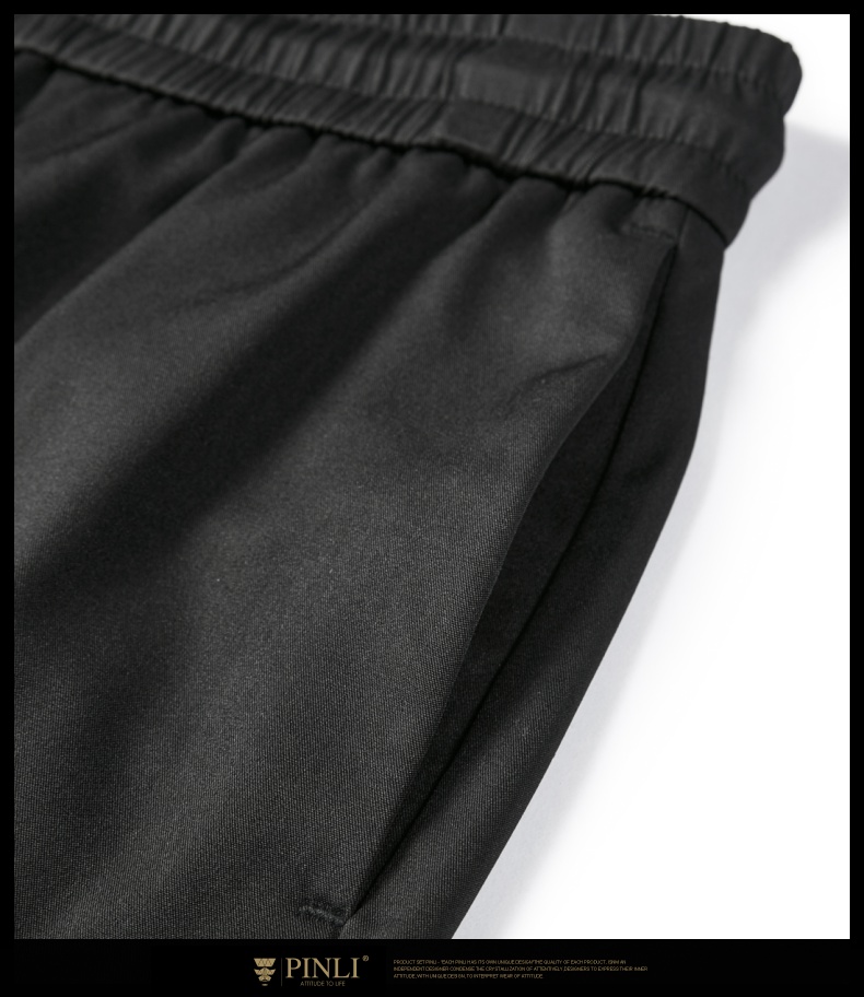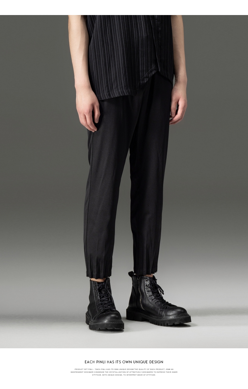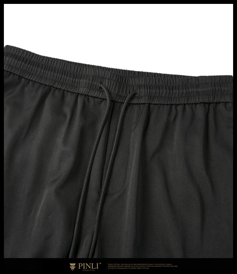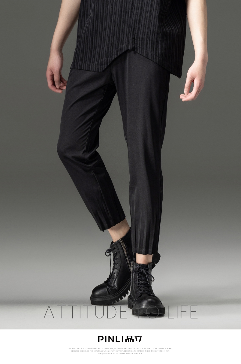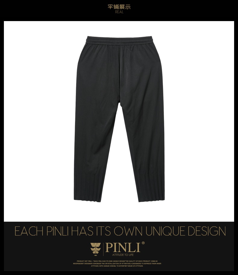 PINLI品立夏季新款男装压褶小脚裤黑色轻薄休闲九分裤潮牌束脚裤,B242117159-B222517105