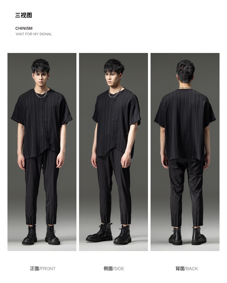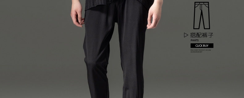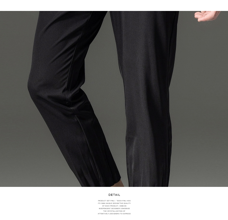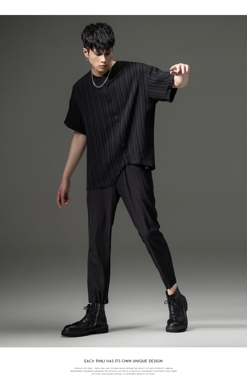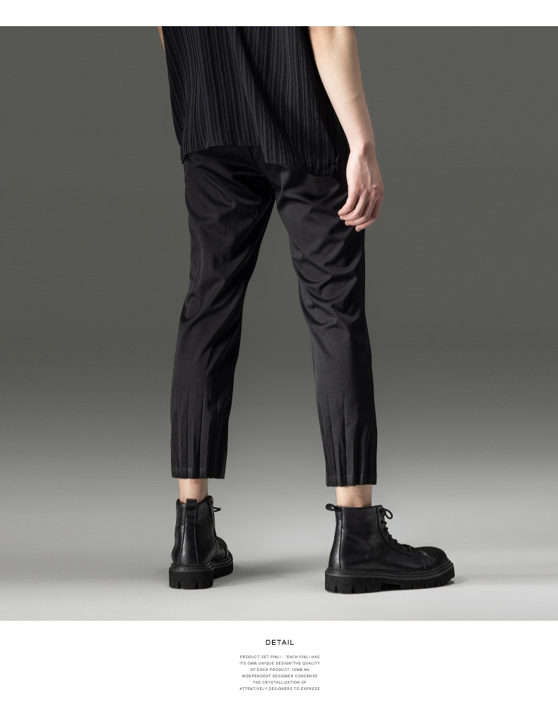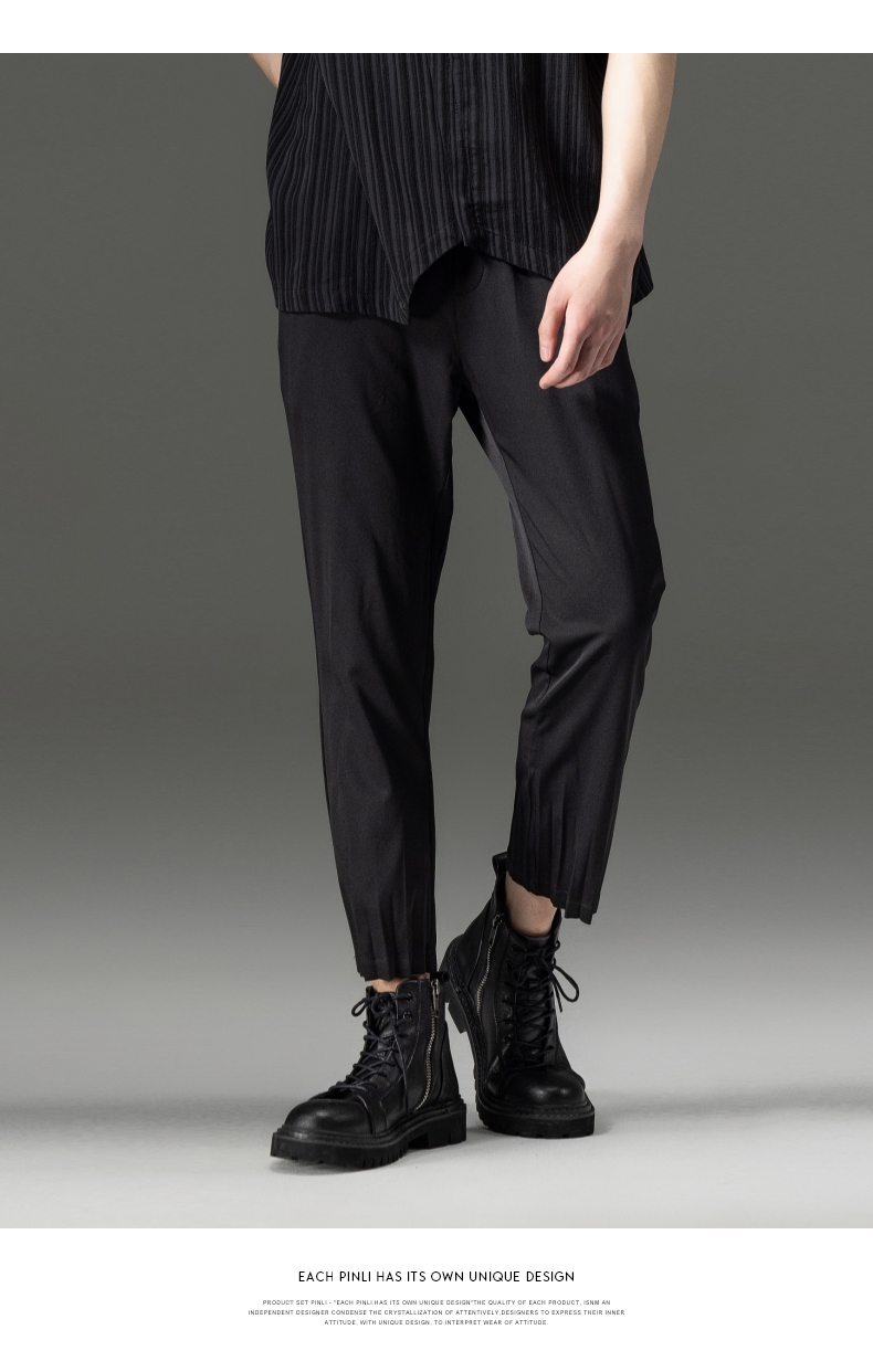 PINLI品立夏季新款男装压褶小脚裤黑色轻薄休闲九分裤潮牌束脚裤,B242117159-B222517105