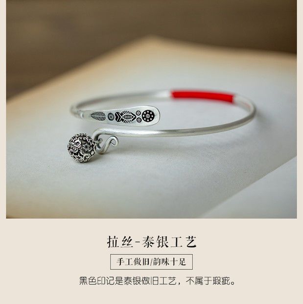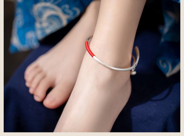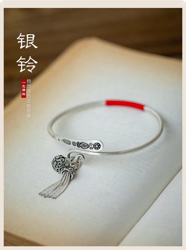 脚镯女古风脚链复古雕刻花纹流苏吊坠开口可调节脚环
