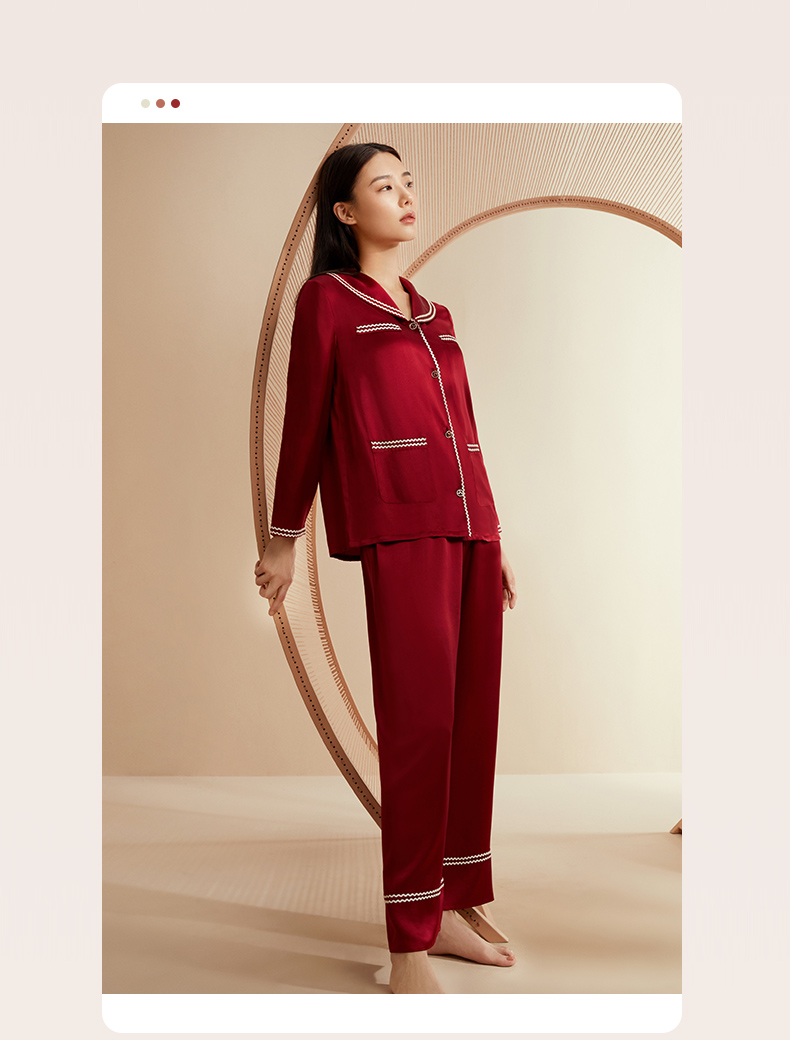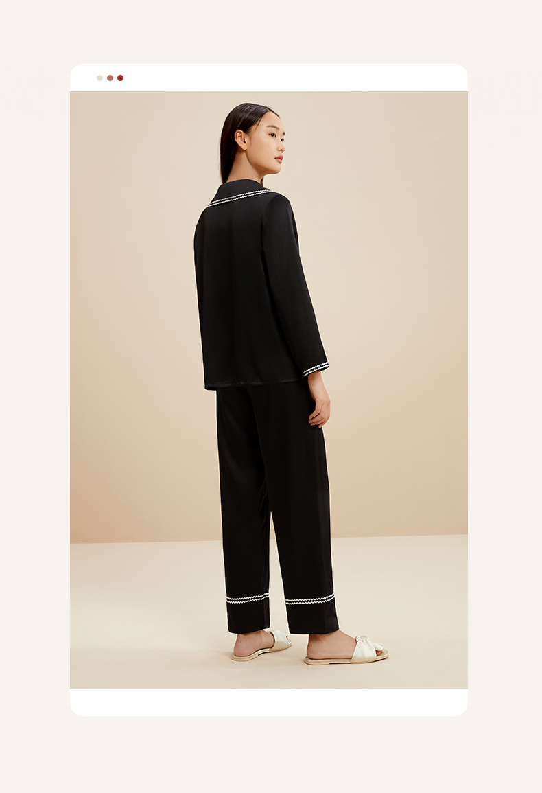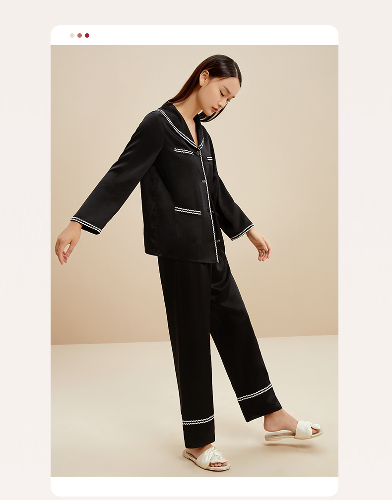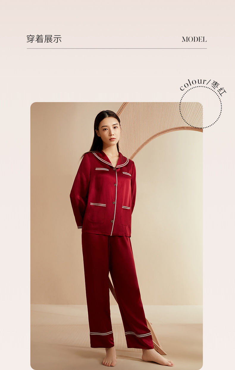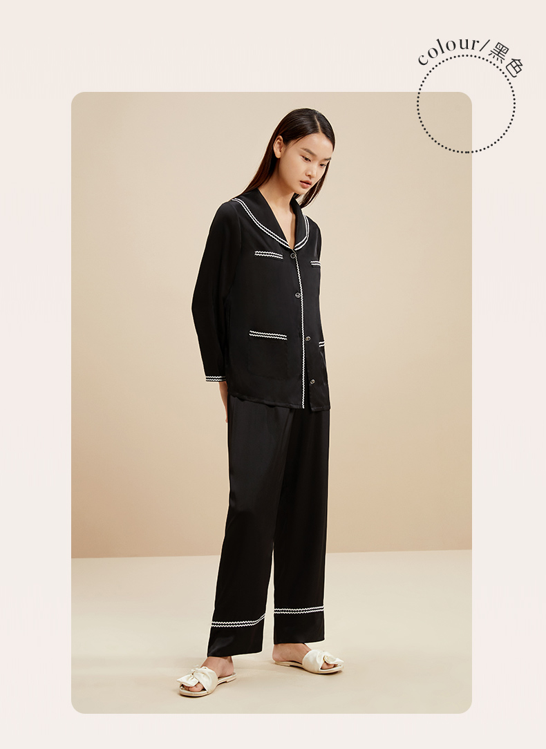 金三塔100%桑蚕丝两件套长袖真丝睡衣撞色家居服套装 YSFCC203