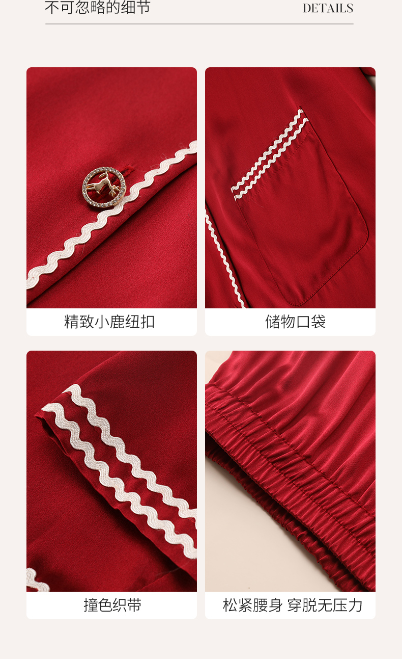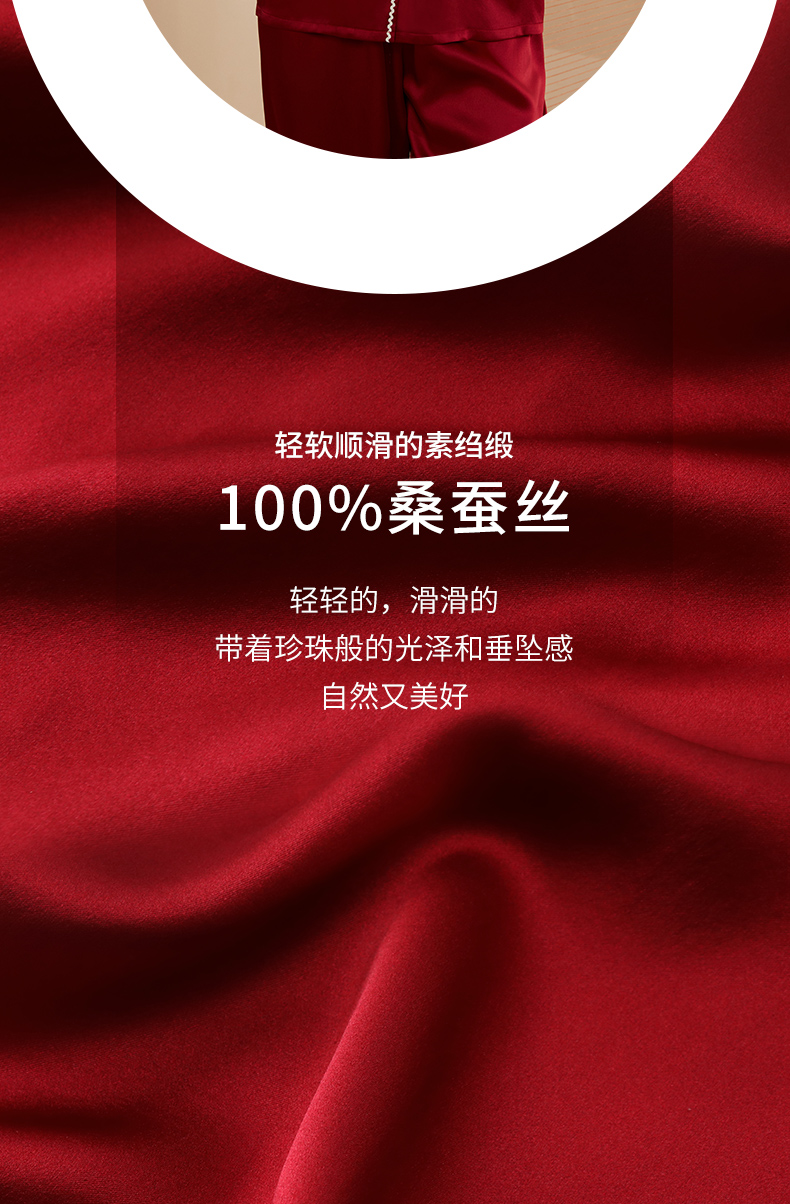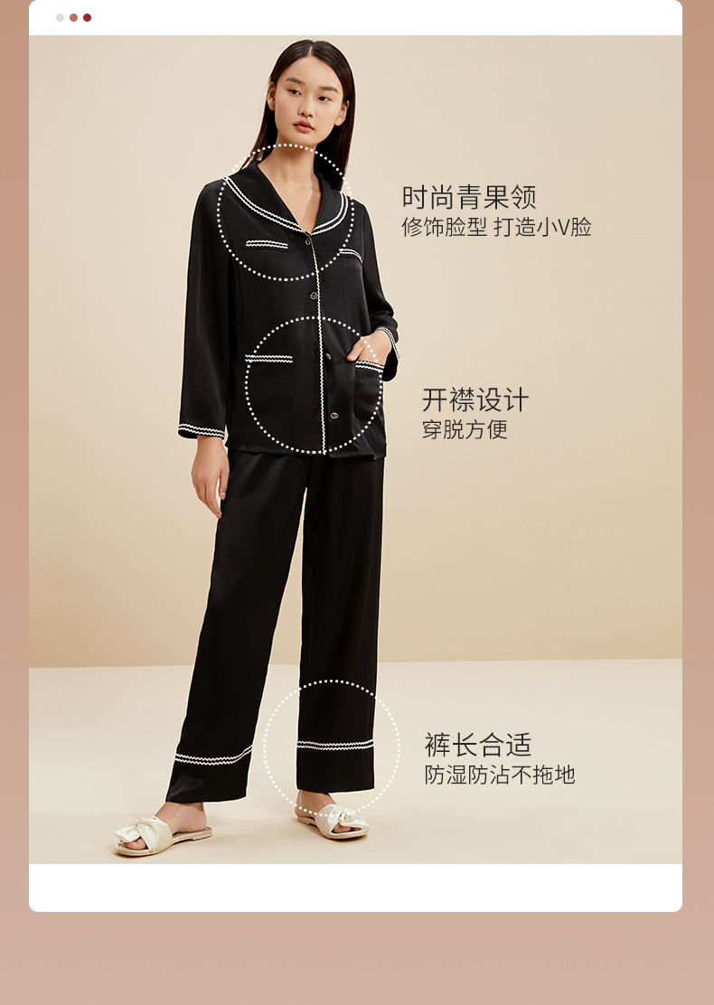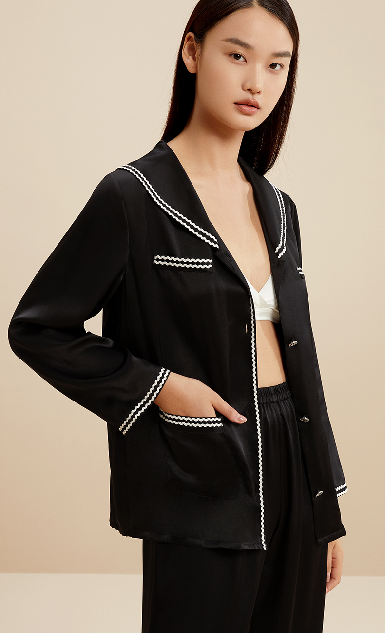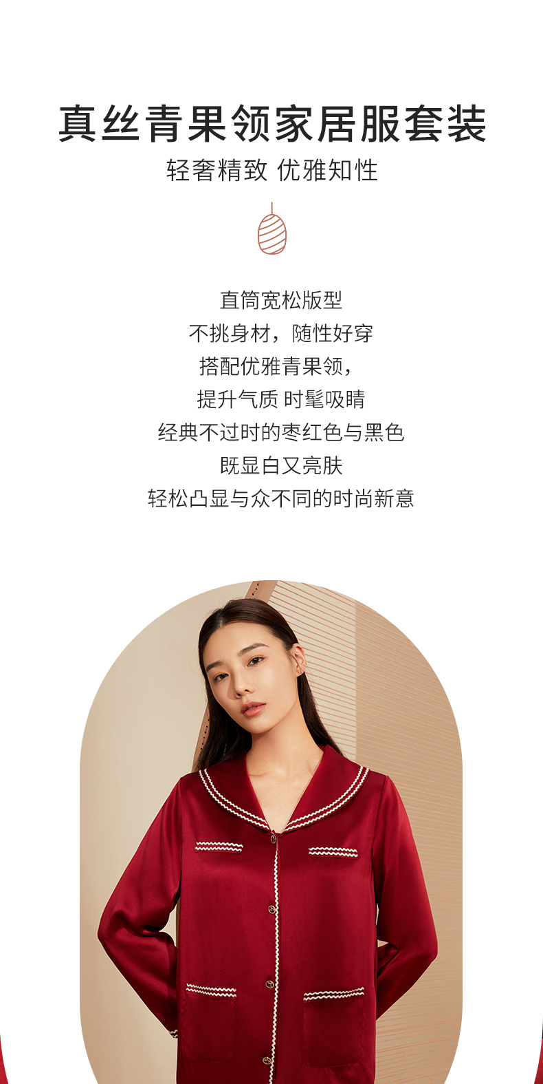 金三塔100%桑蚕丝两件套长袖真丝睡衣撞色家居服套装 YSFCC203