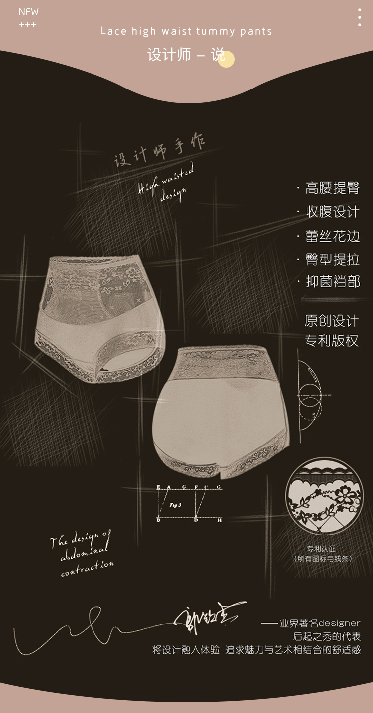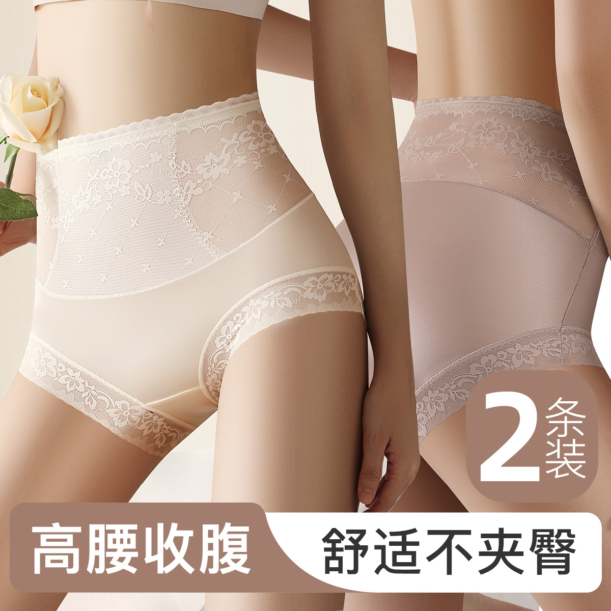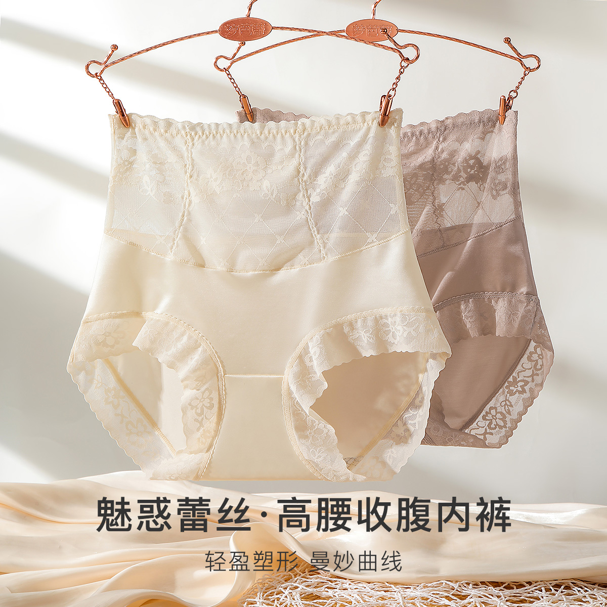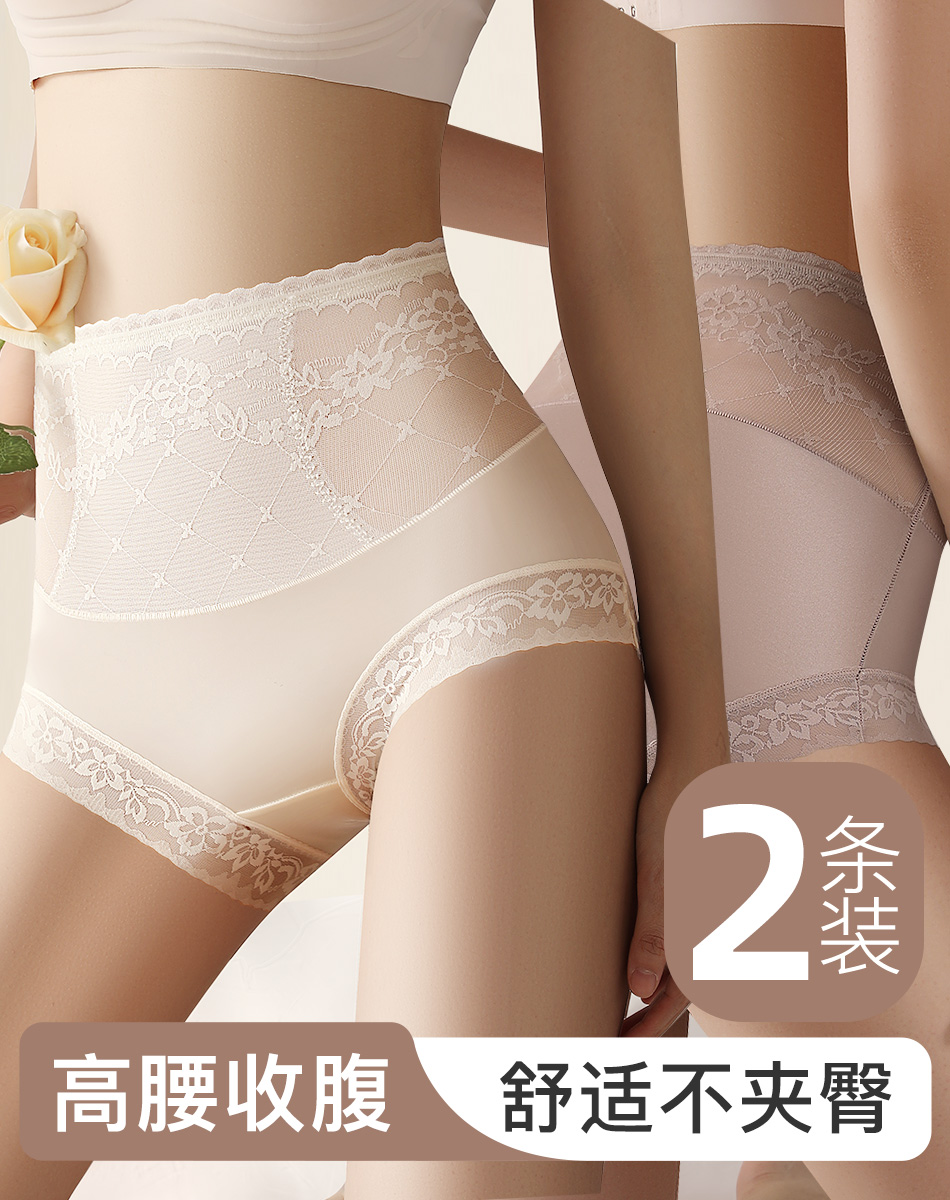 【高腰收腹2件装】无痕轻薄透气提臀显瘦塑身裤女含蚕丝抑菌底裆 86373醉波月梦内裤2条装