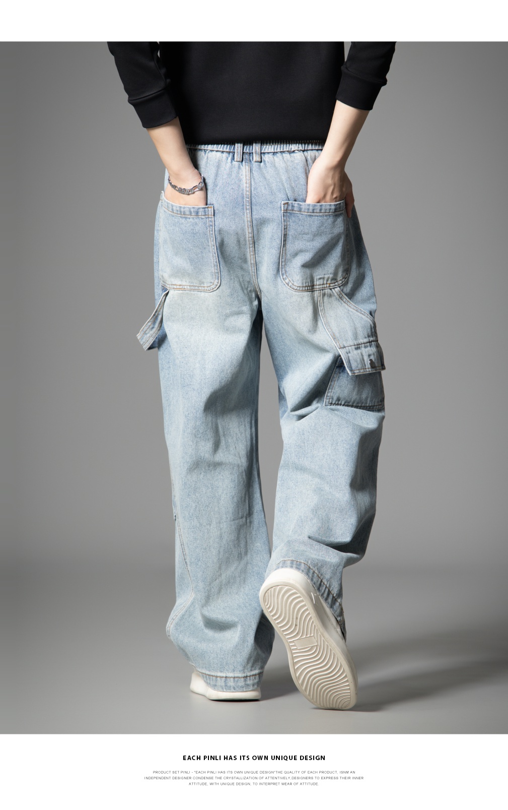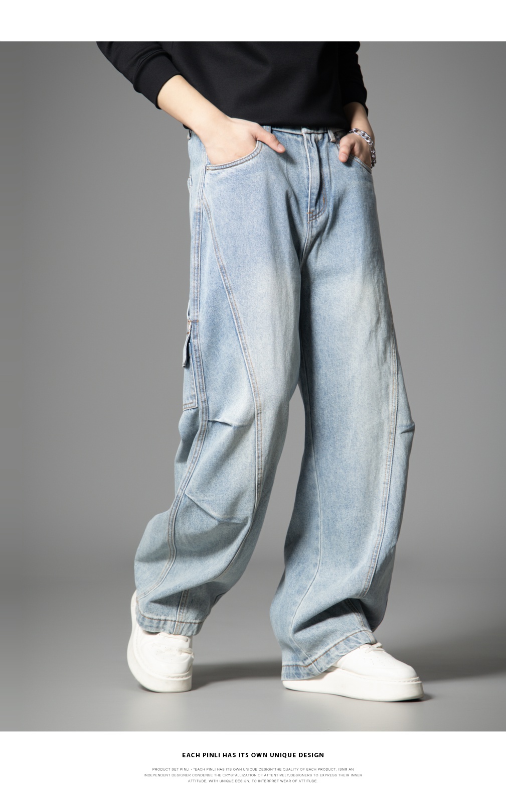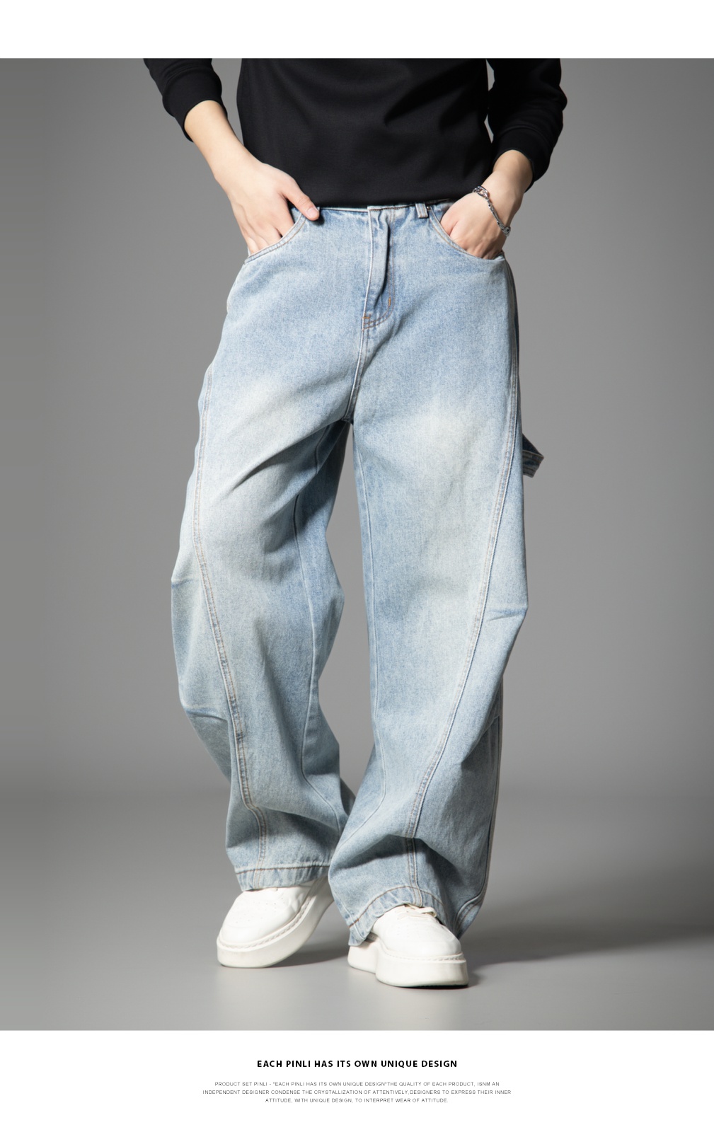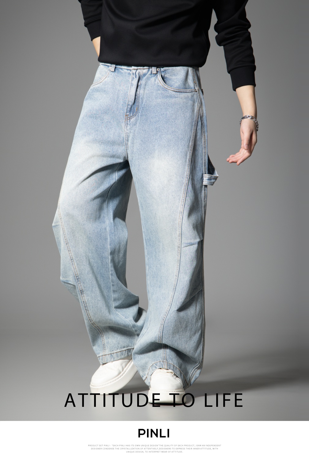 PINLI品立春季新款男士美式高街复古宽松直筒休闲牛仔长裤潮GD253116142