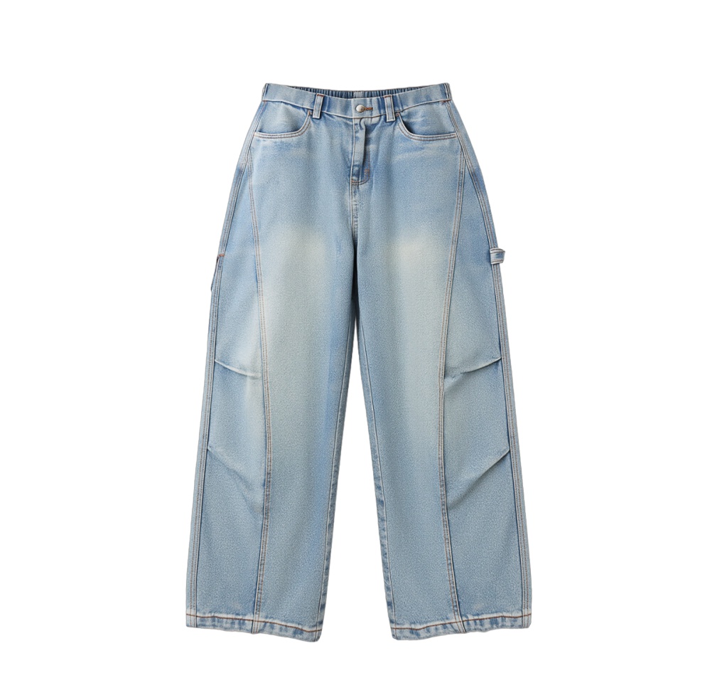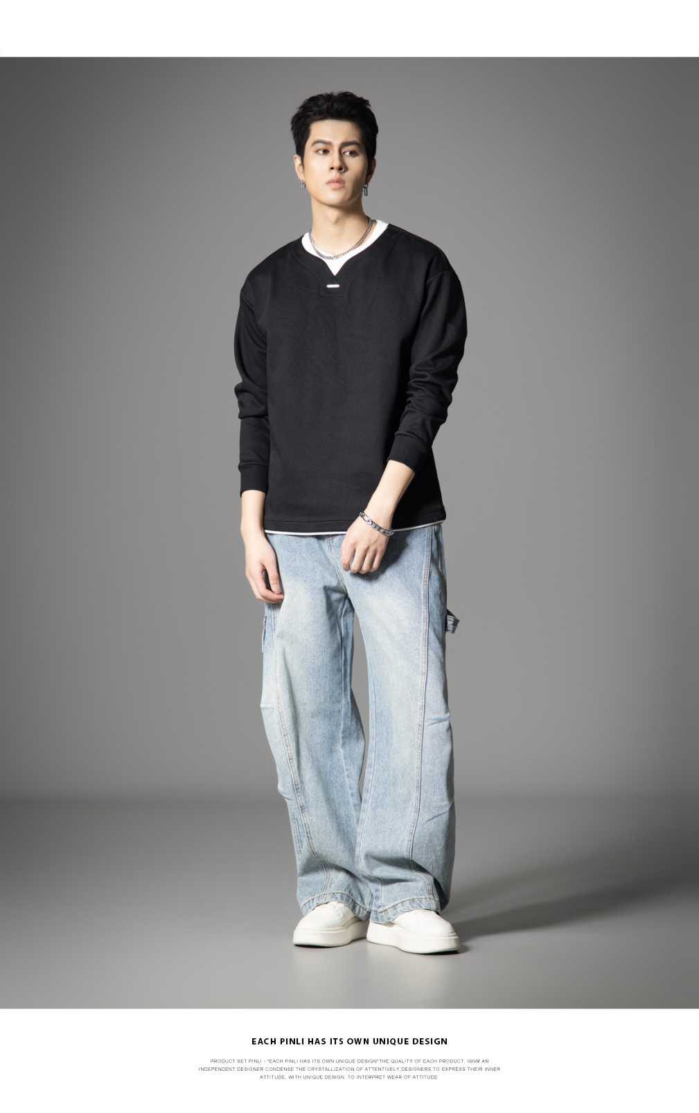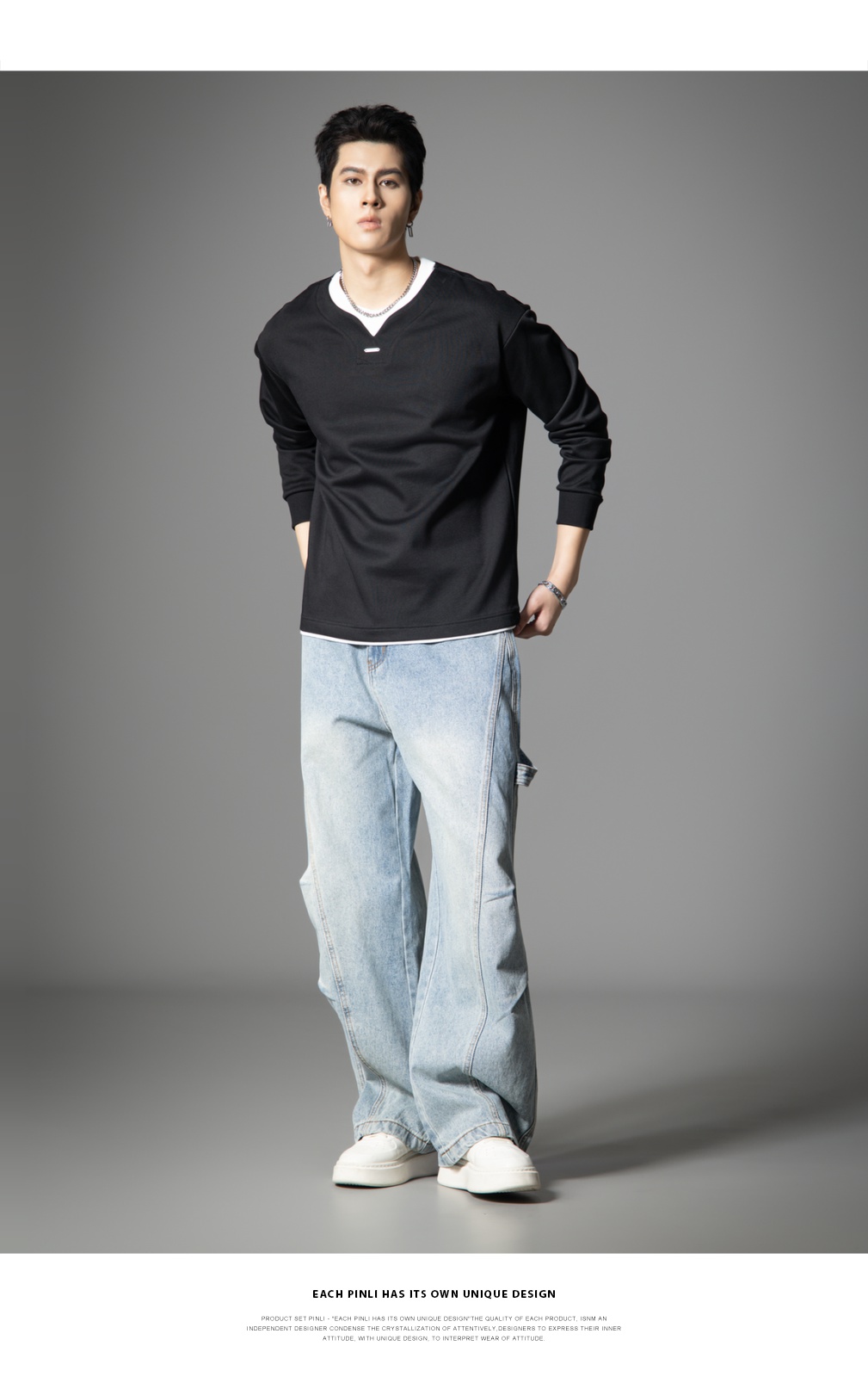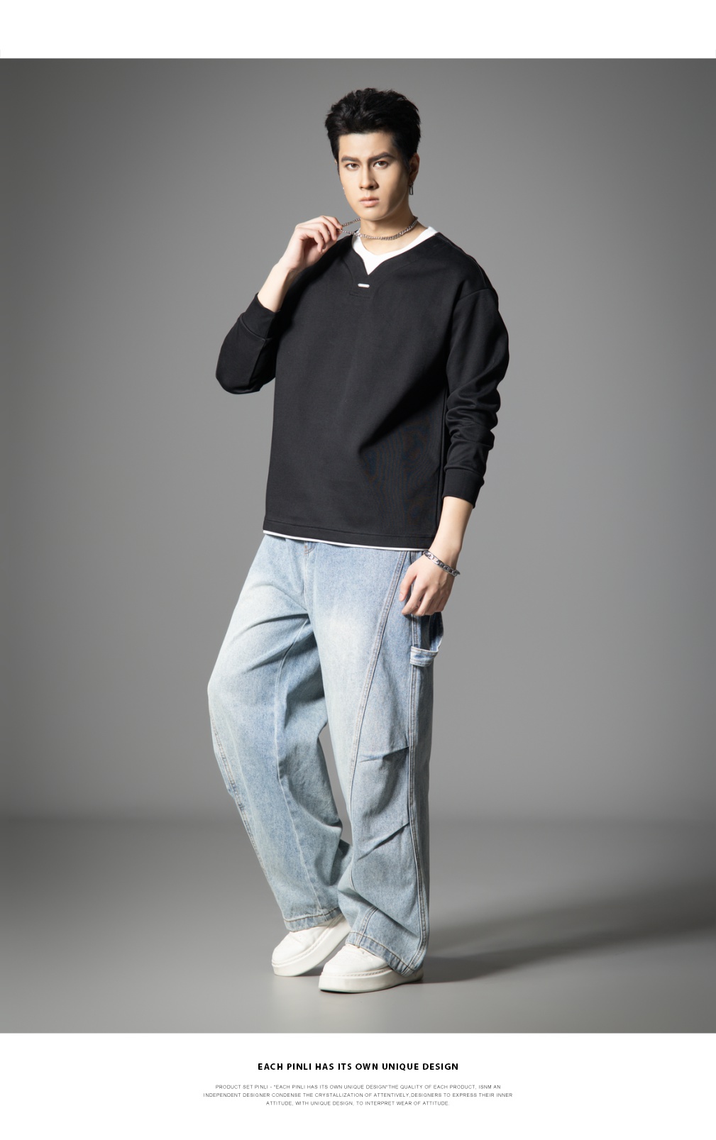 PINLI品立春季新款男士美式高街复古宽松直筒休闲牛仔长裤潮GD253116142