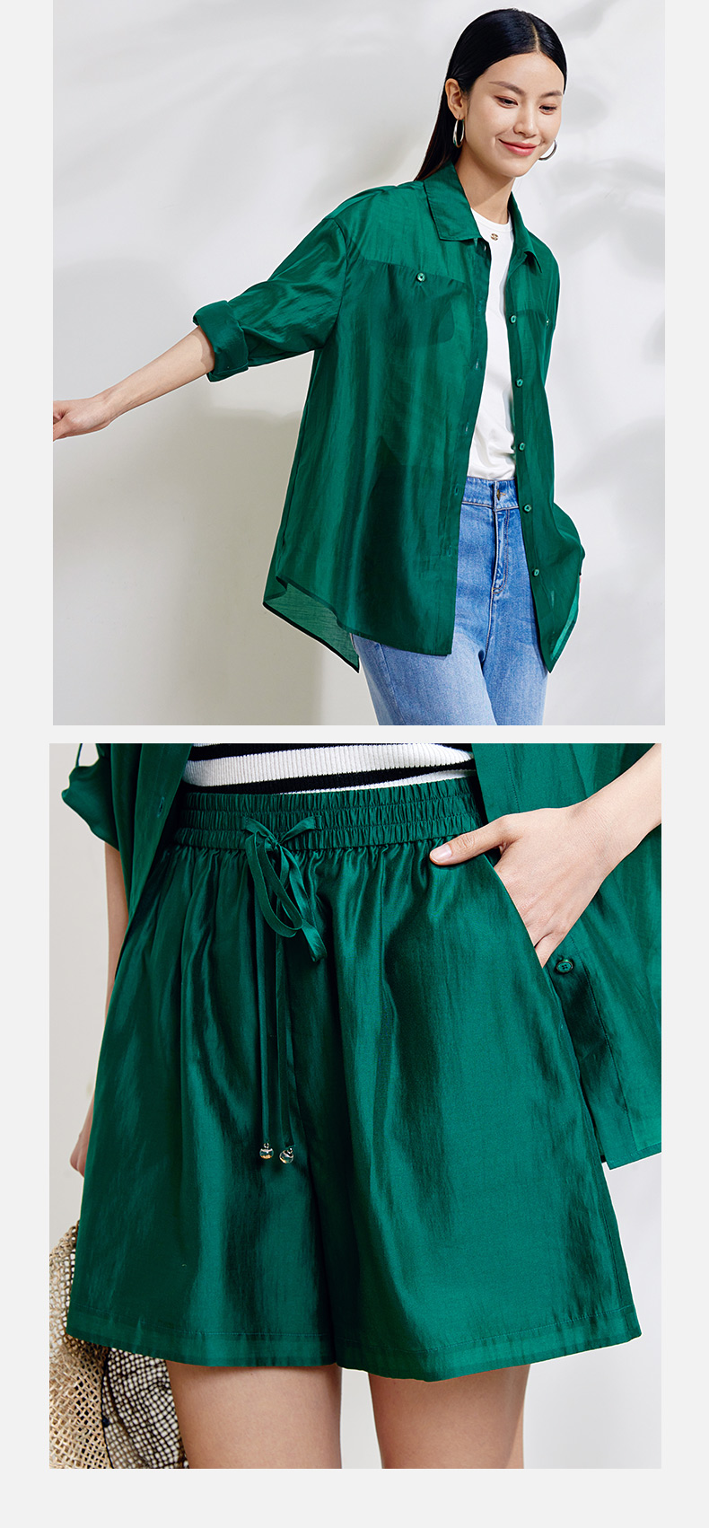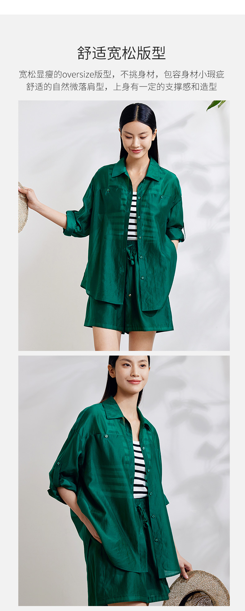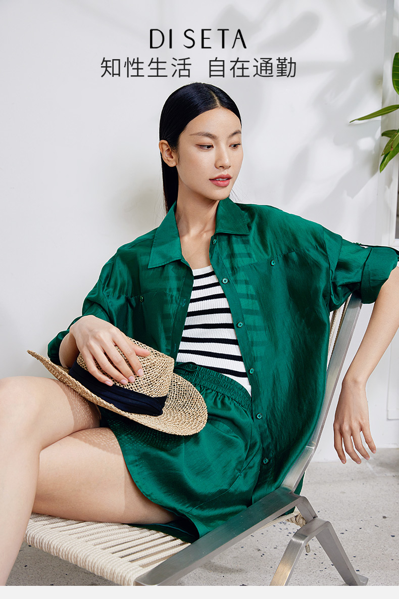 玳莎度假风短裤外套女2024年春季新款宽松纯色简约设计感小众套装 EA31302/EA36101