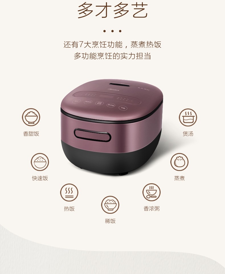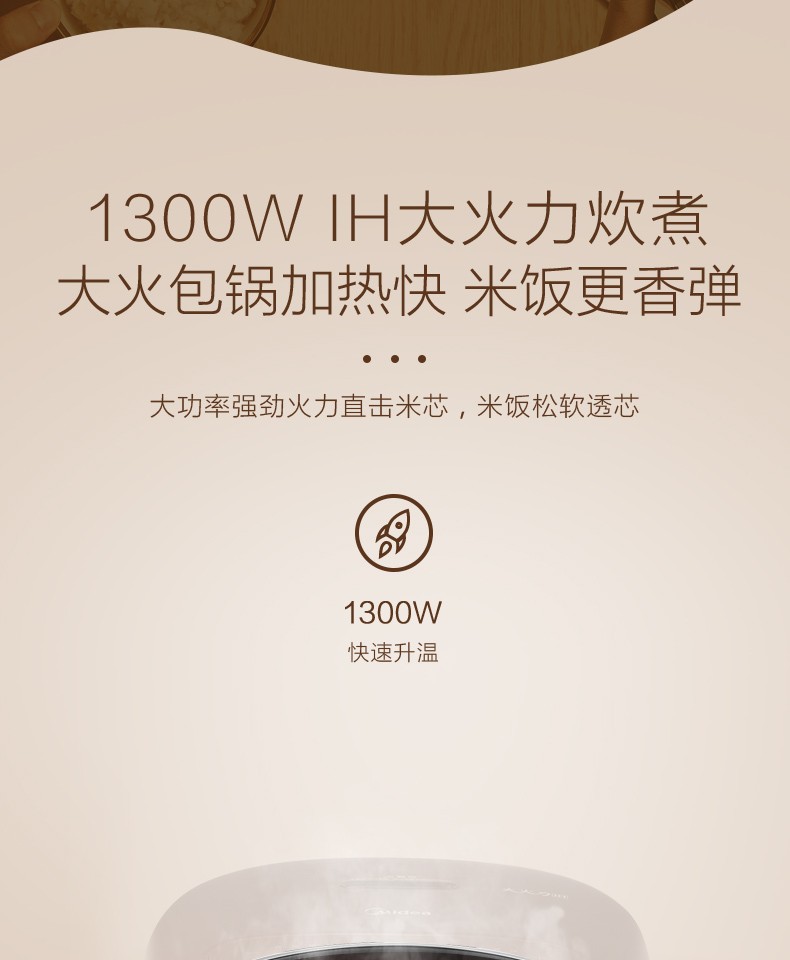 美的(Midea)MB-CFB4090H电饭锅IH电饭煲电磁煲定时大火力多功能全智能4L大容量精铁釜