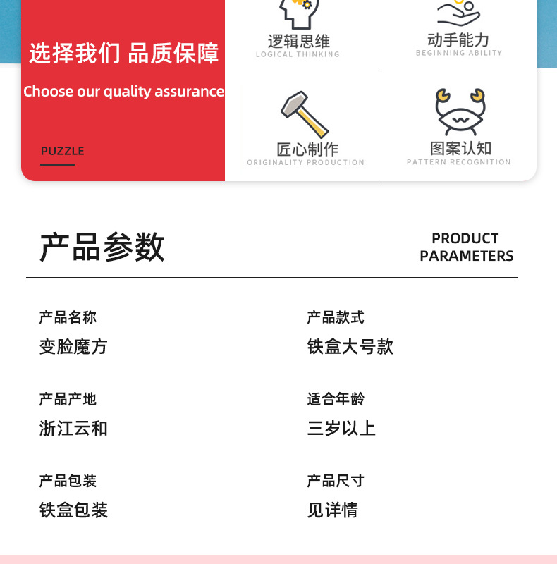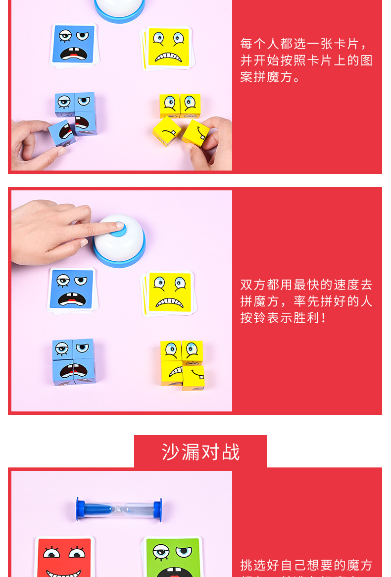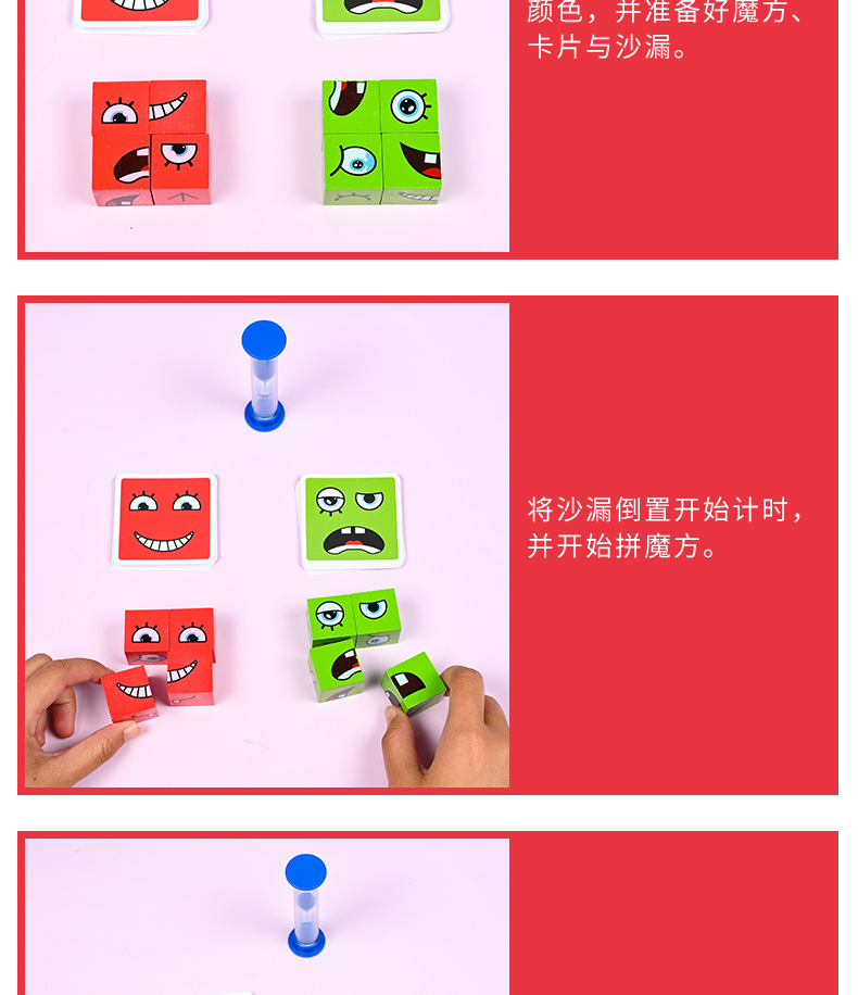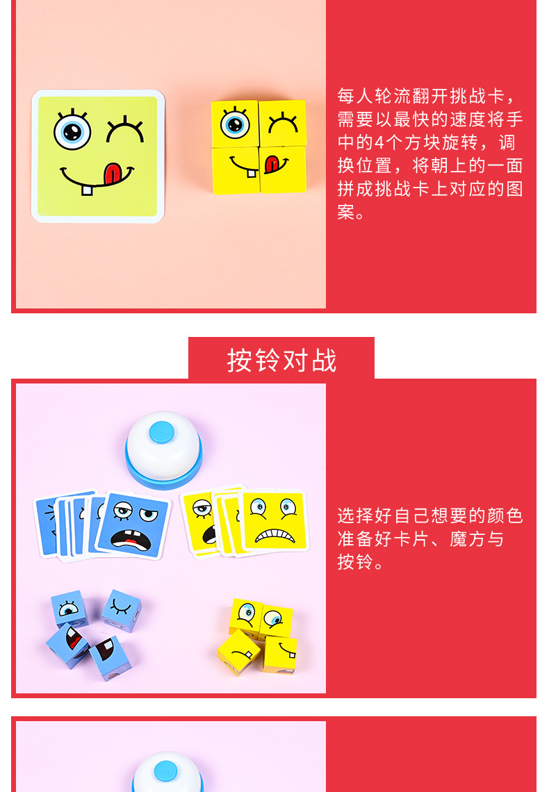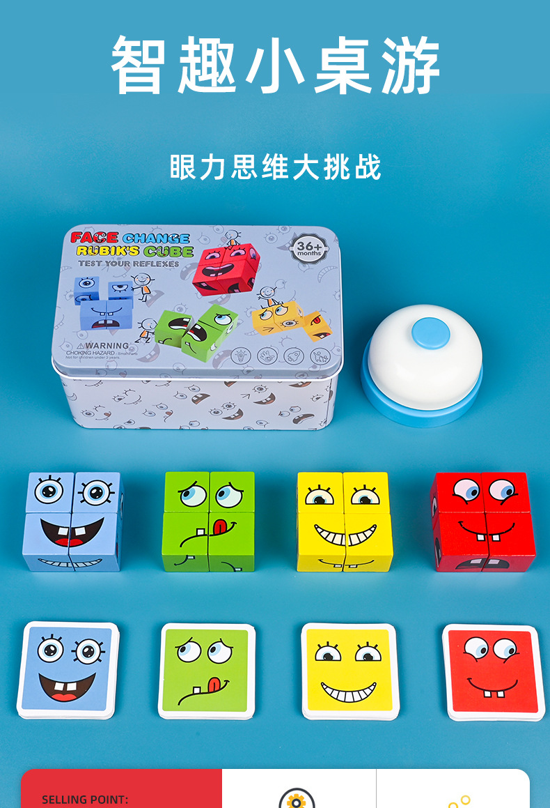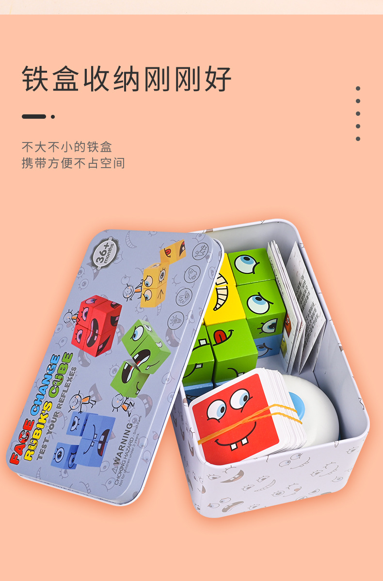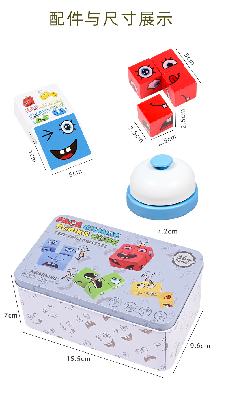 儿童木制变脸魔方桌游积木带按铃大号铁盒拼图亲子动思维益智玩具