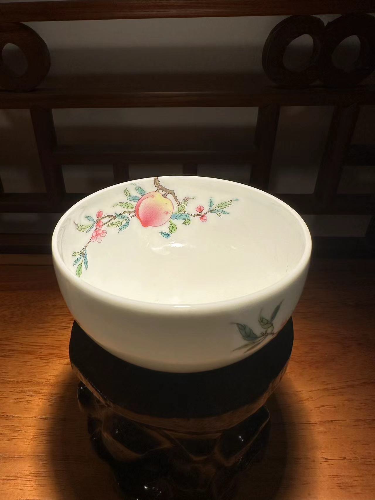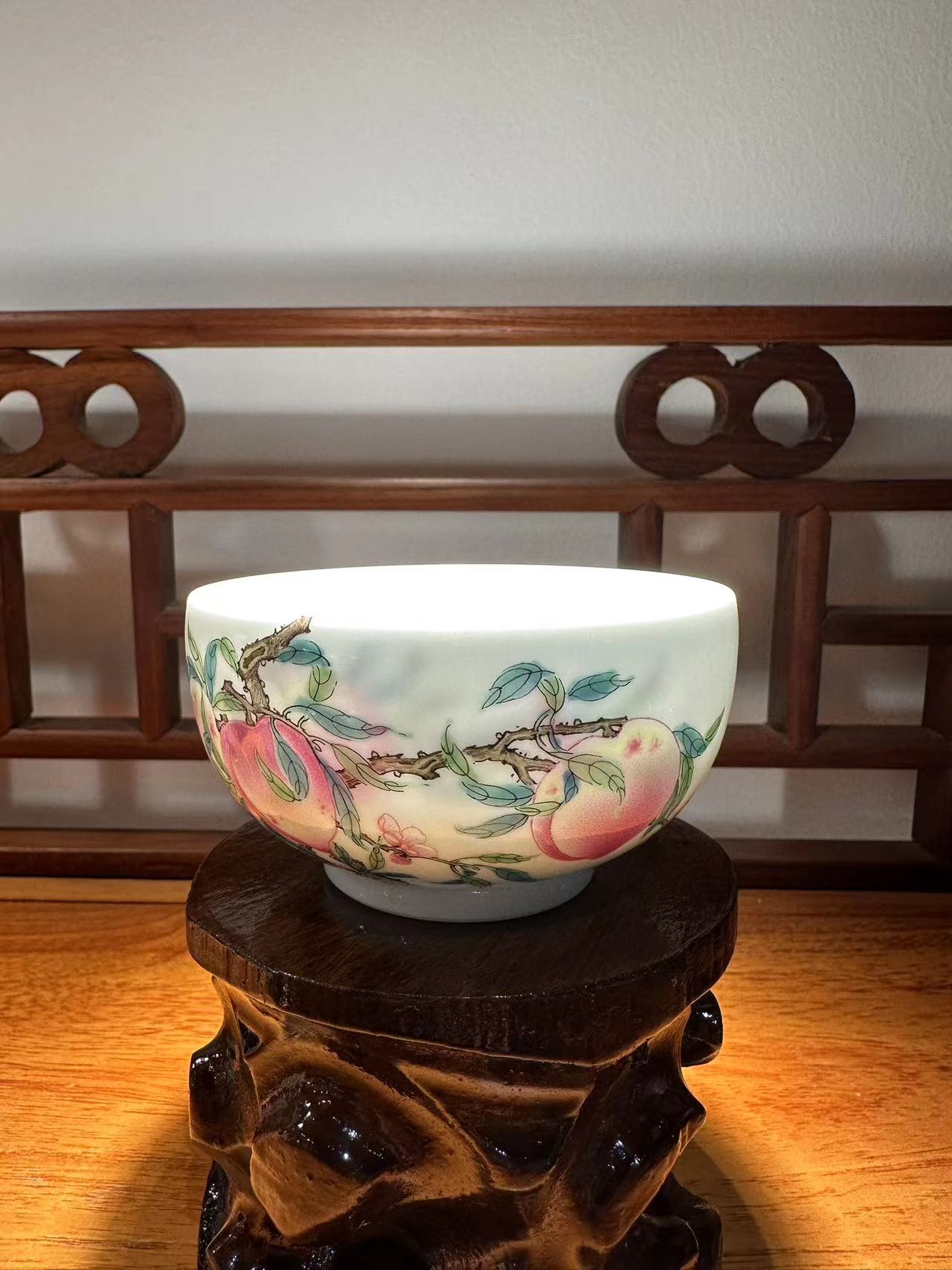 景德镇陶瓷 国瓷红叶 1头手绘珐琅彩寿桃过墙主人杯
