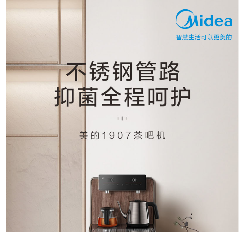 美的(Midea)茶吧机家用智能下置式高端背板式多档控温立式美的悦家饮水机YR1907S-X商场同款