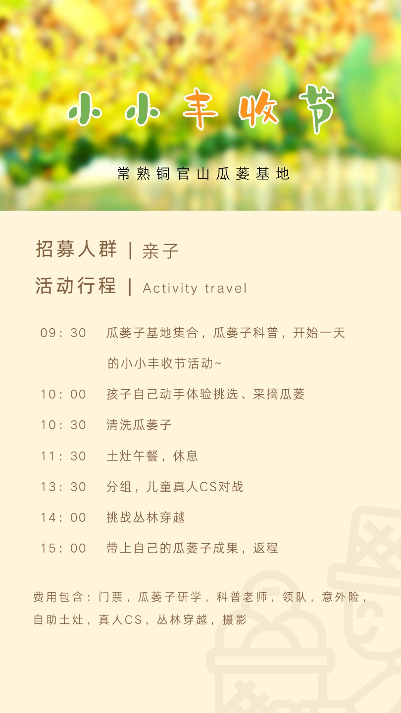 定制包团 | 小小丰收节 | 常熟 瓜蒌研学营 1日 亲子/陪同 瓜蒌子 + 森林土灶 + 真人CS + 丛林穿越..