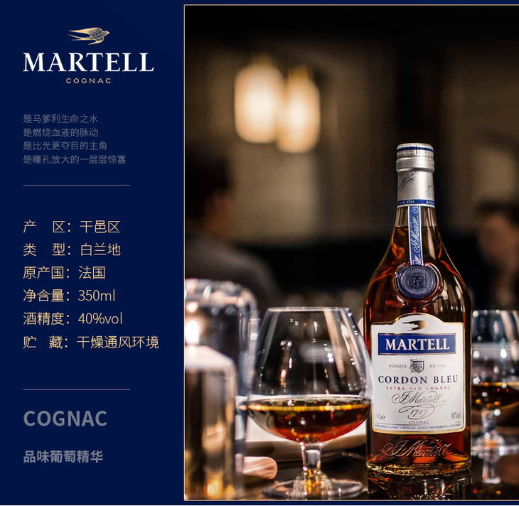 【行货】法国MARTELL 马爹利蓝带干邑白兰地