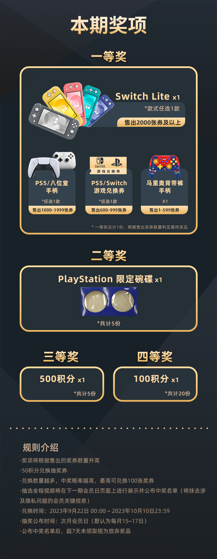 9月会员日抽奖:本期最高奖项 - Switch Lite 1台