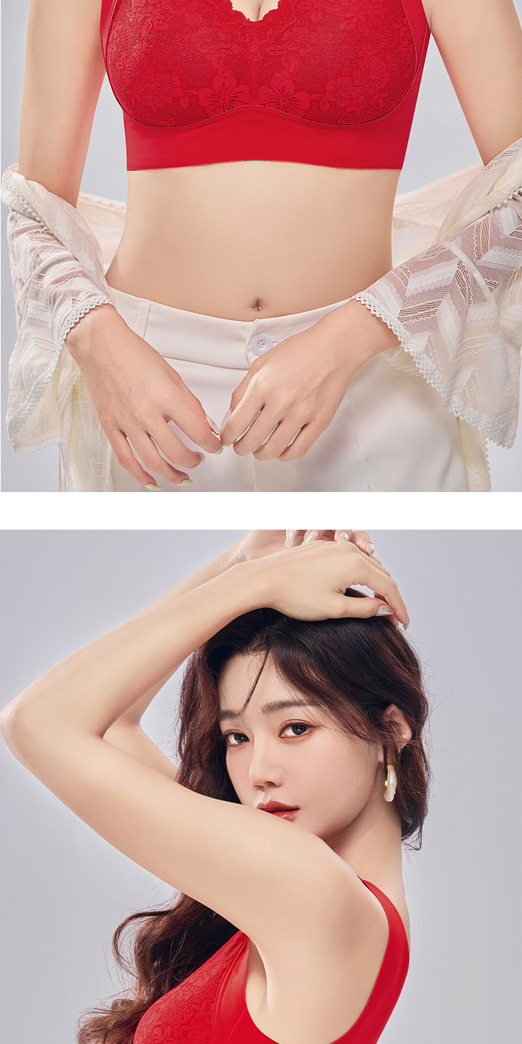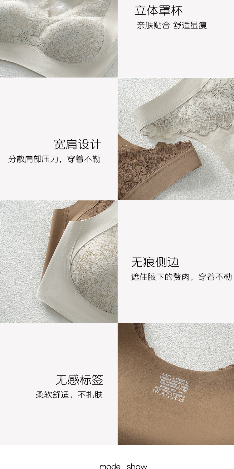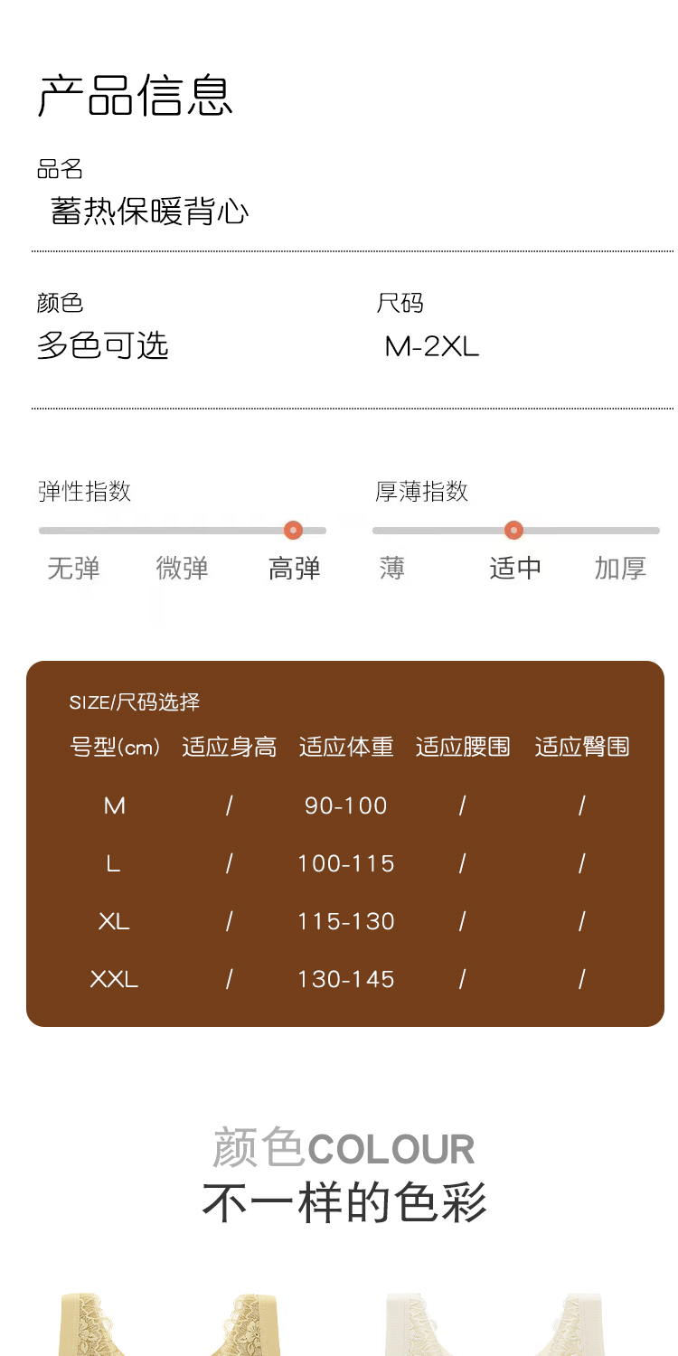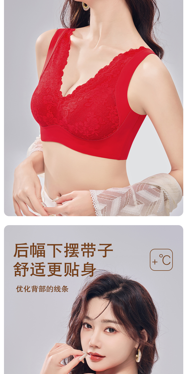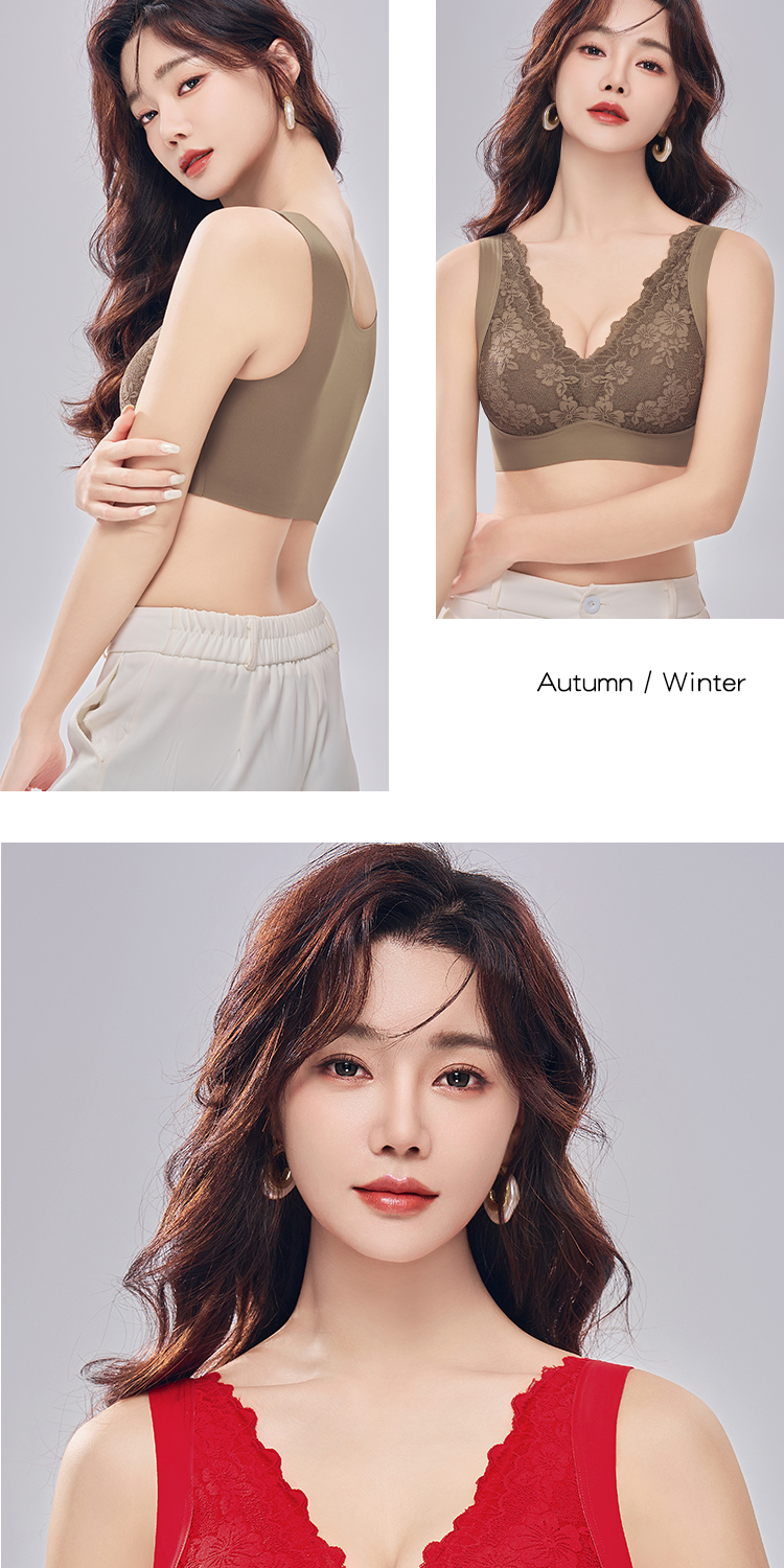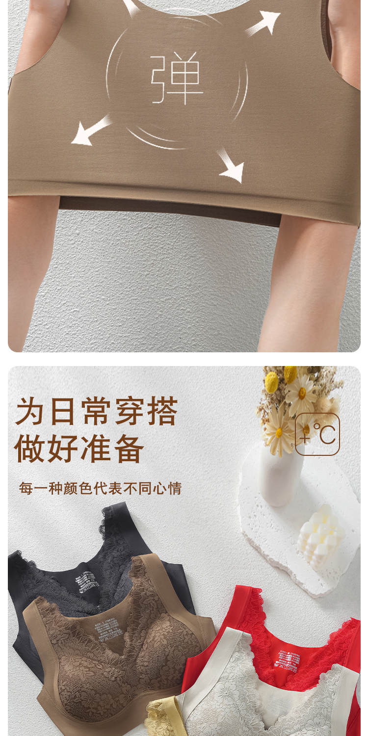 蓄热保暖背心文胸 无痕速暖双面磨毛自发热保暖内衣 轻盈无痕温暖 亲肤透气高弹 蕾丝聚拢上托收副乳半固定杯V领