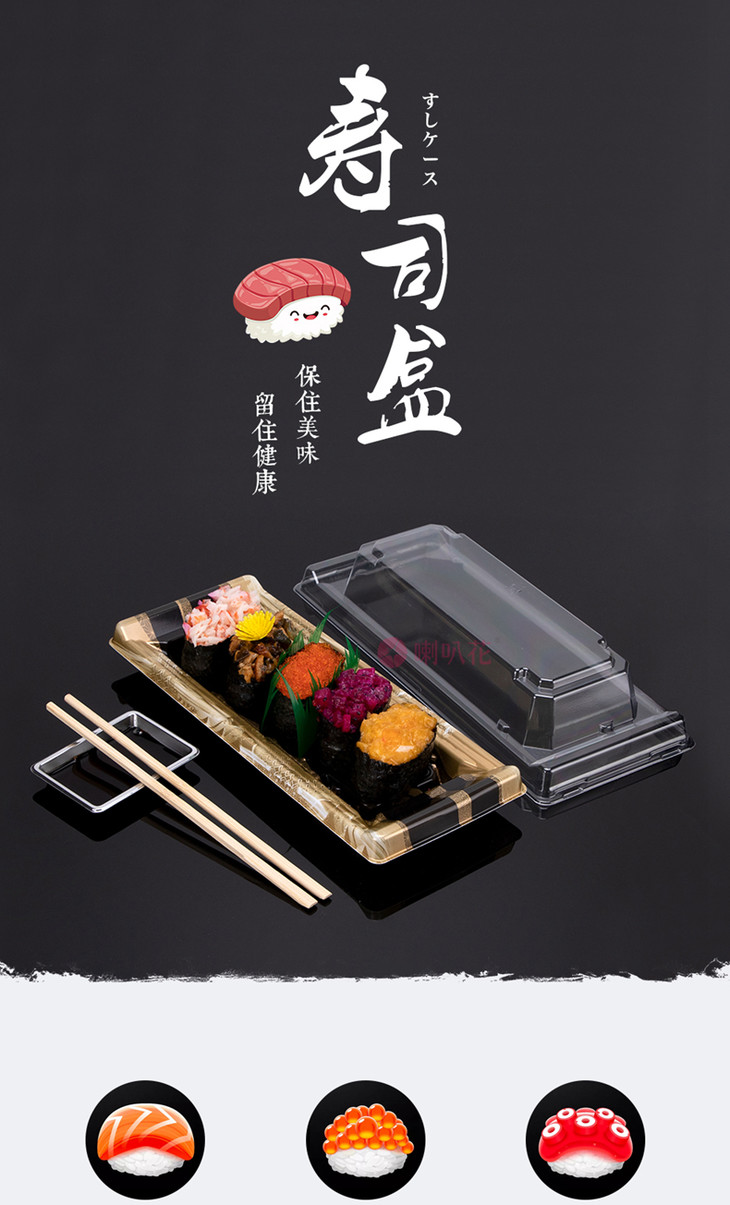 喇叭花寿司盒子印花一次性外卖打包盒三文鱼刺身拼盘商用包装盒