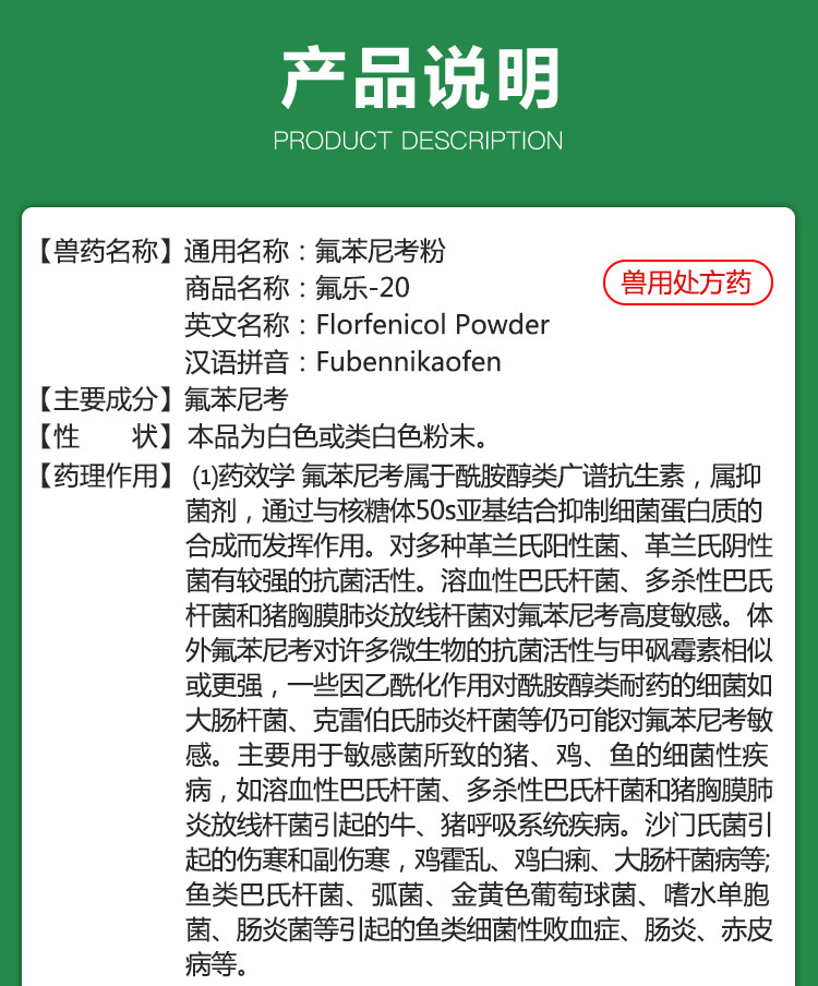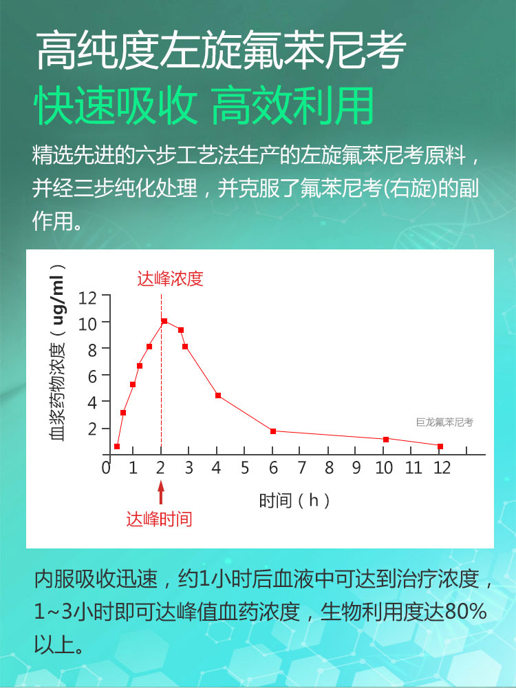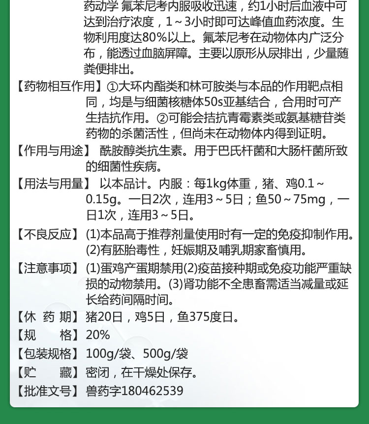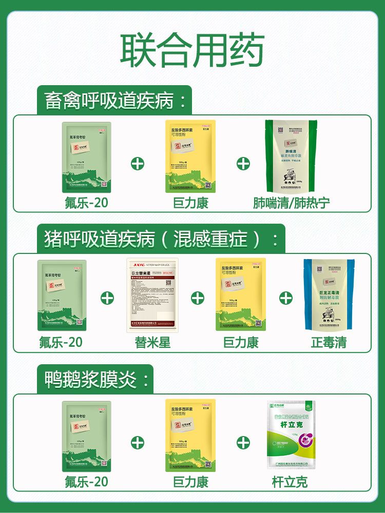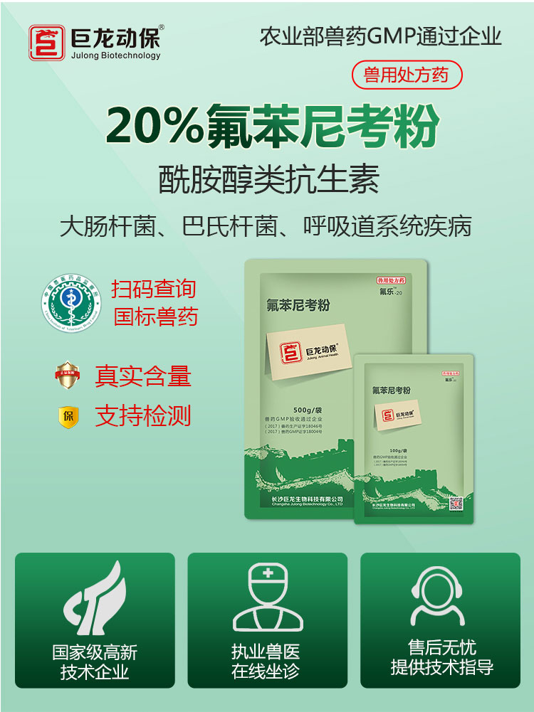 【氟乐20】巨龙动保氟乐-20氟苯尼考粉20%100g/500g