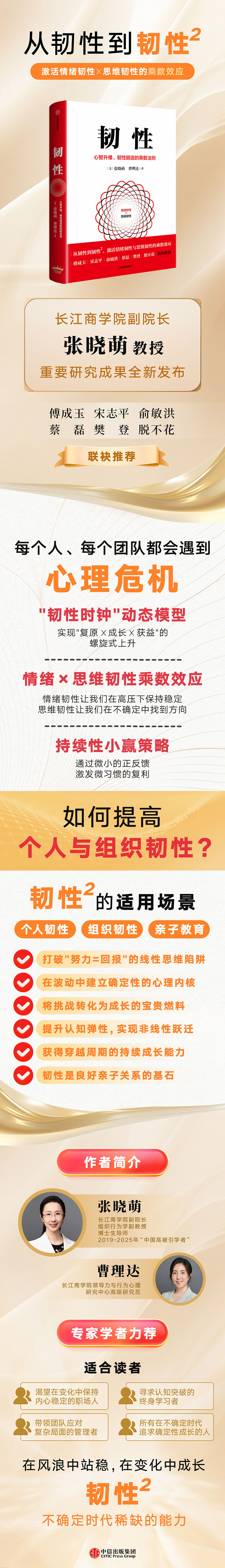 在算法主导与周期叠加的复杂时代,我们需要的不只是“抗压”,而是持续进化的心理系统。《韧性²》提出了“韧性时钟”这一动态模型:当情绪韧性与思维韧性形成乘数效应,个体就能借由持续性小赢,实现“复原—成长—获益”的非线性跃迁,激发出心理节律的螺旋上升。