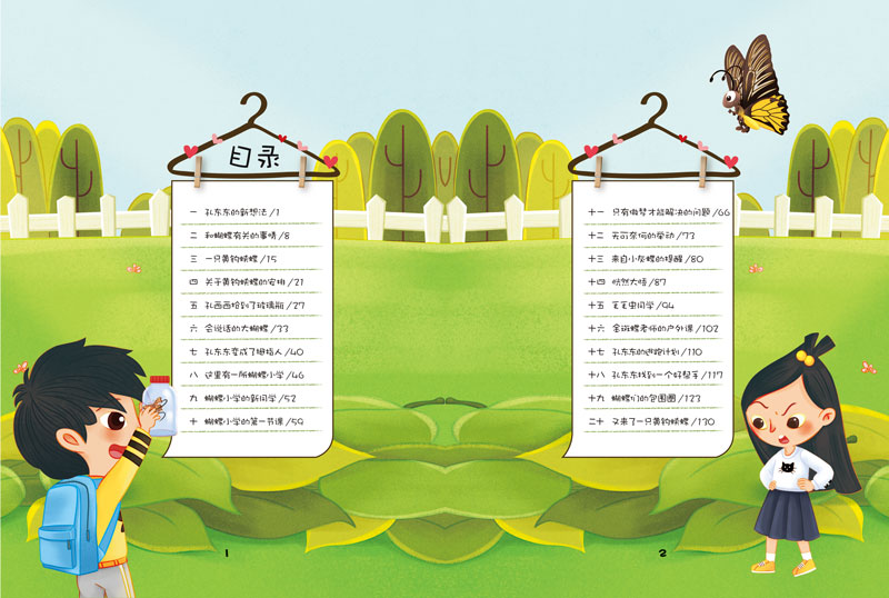 孔东东;哗啦哗啦地翻着书,他发现后面的内容更加精彩除了文字性的描述,还有很多蝴蝶的图片。这么一来,孔东东又认识了极光闪蝶、透翅蝶、金斑喙凤蝶、丝带凤蝶、大帛斑蝶
