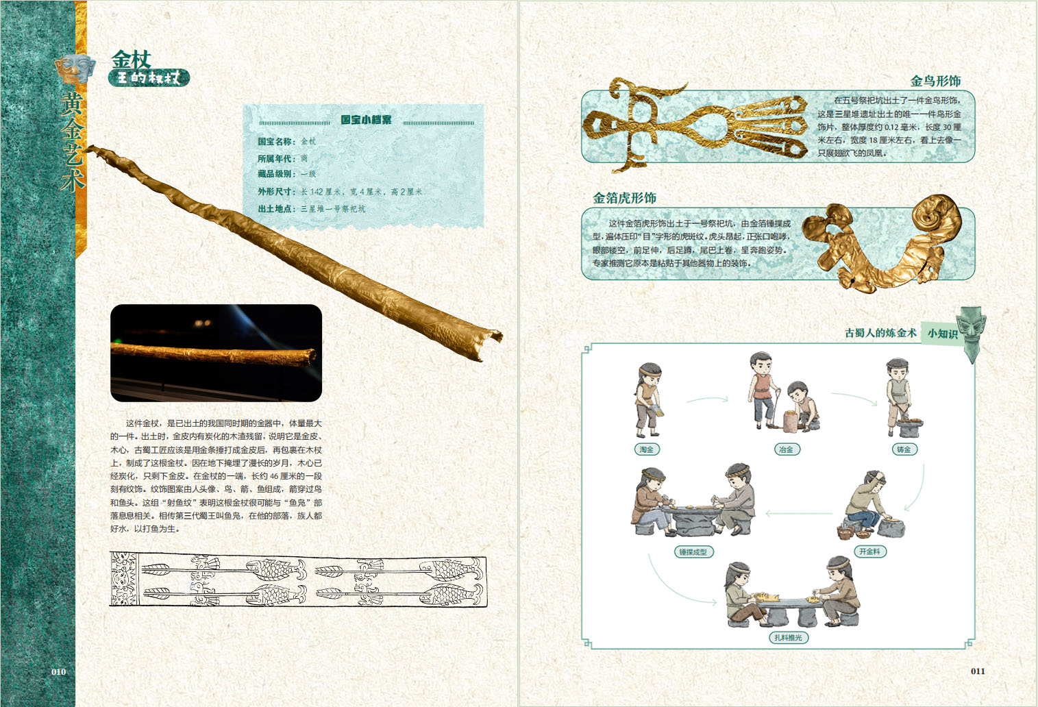 《跟着国宝去旅行 走进三星堆博物馆》目录古蜀日常 ?古蜀人的宴请小小;萌宠穿越千年三星堆时尚秀 ?青铜大立人:集神、巫、王于一身的;领袖戴立冠青铜人头像:三星堆;诸葛亮三星堆发型衣饰大赏黄金艺术 ?金杖:王的权杖金面具:王的面具商戴金面罩青铜人头像:金面使者玉能通神 ?祭山图玉璋:古蜀人如何祭山神树纹玉琮:三星堆与良渚的缘分青铜面具 ?青铜纵目面具:蜀王蚕丛的凝望给神的礼物 青铜神坛上的世界万物有灵 ?青铜太阳形器:太阳崇拜青铜爬龙器盖:龙崇拜三星堆动物园里有什么?通天梦 ?青铜神树:登天神梯寻宝攻略