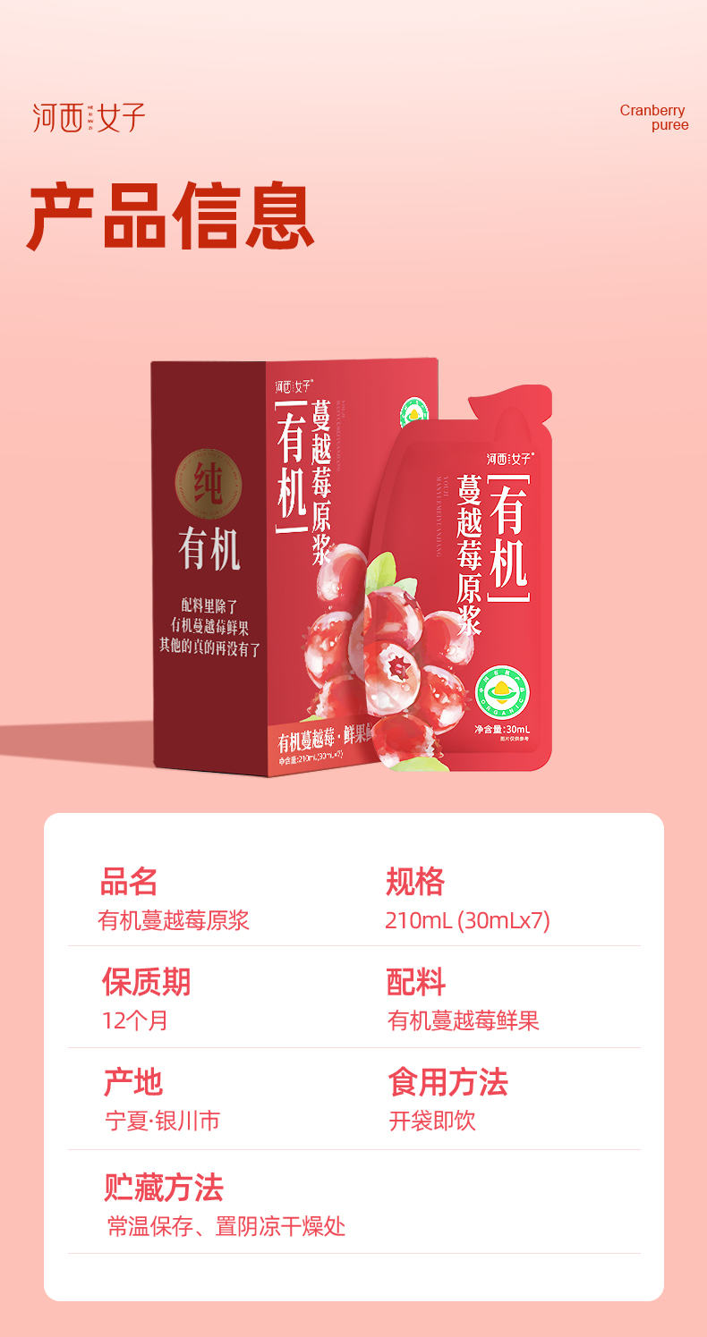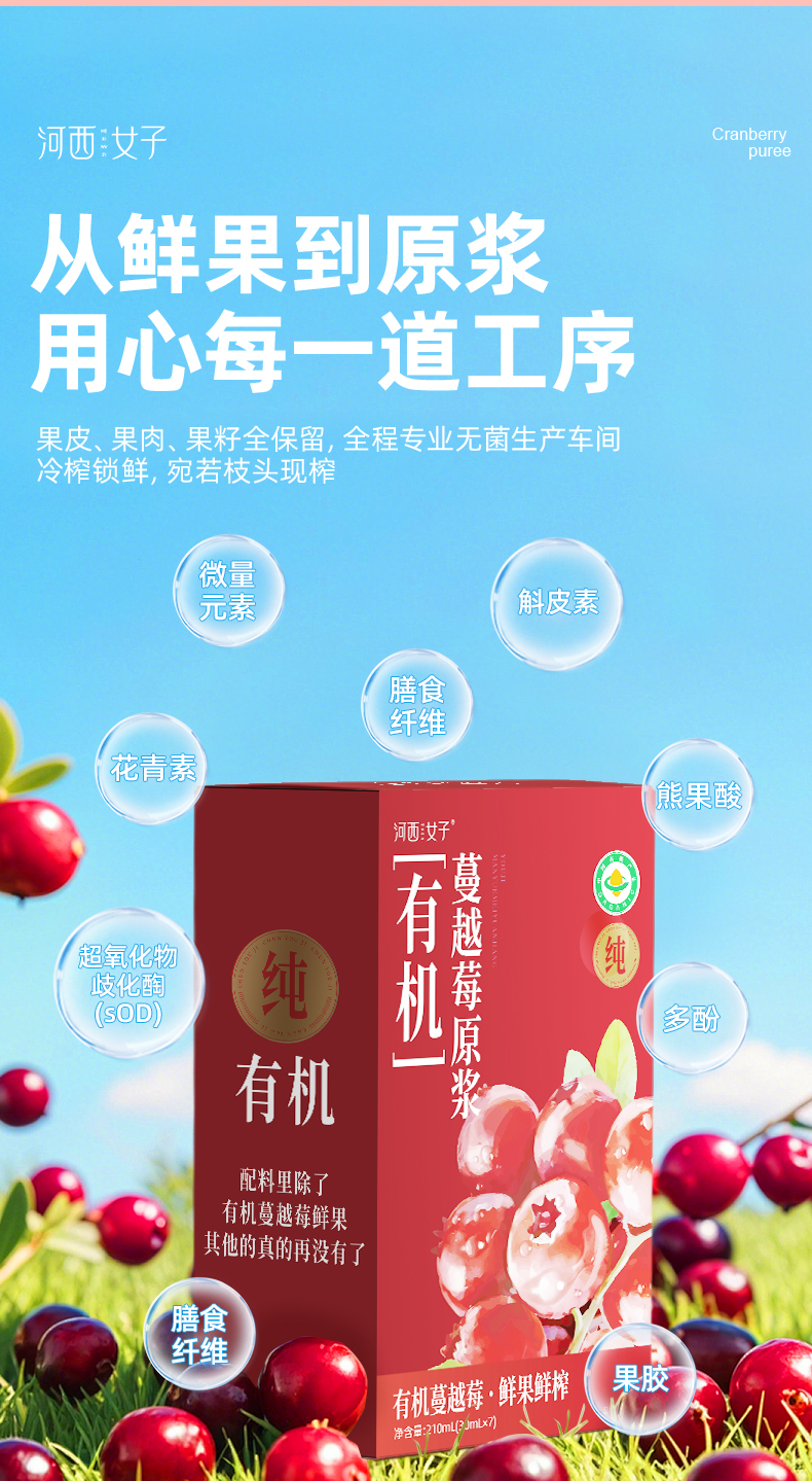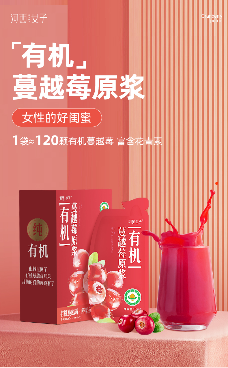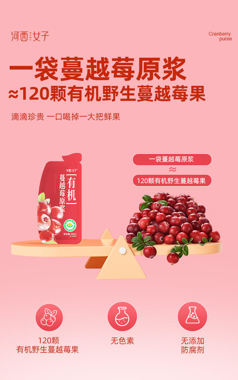 【甄选&全网比价】有机蔓越莓原浆 1袋≈120颗新有机蔓越莓 100%纯原浆不加一滴水 低温萃取 营养保留更全面 女性友好