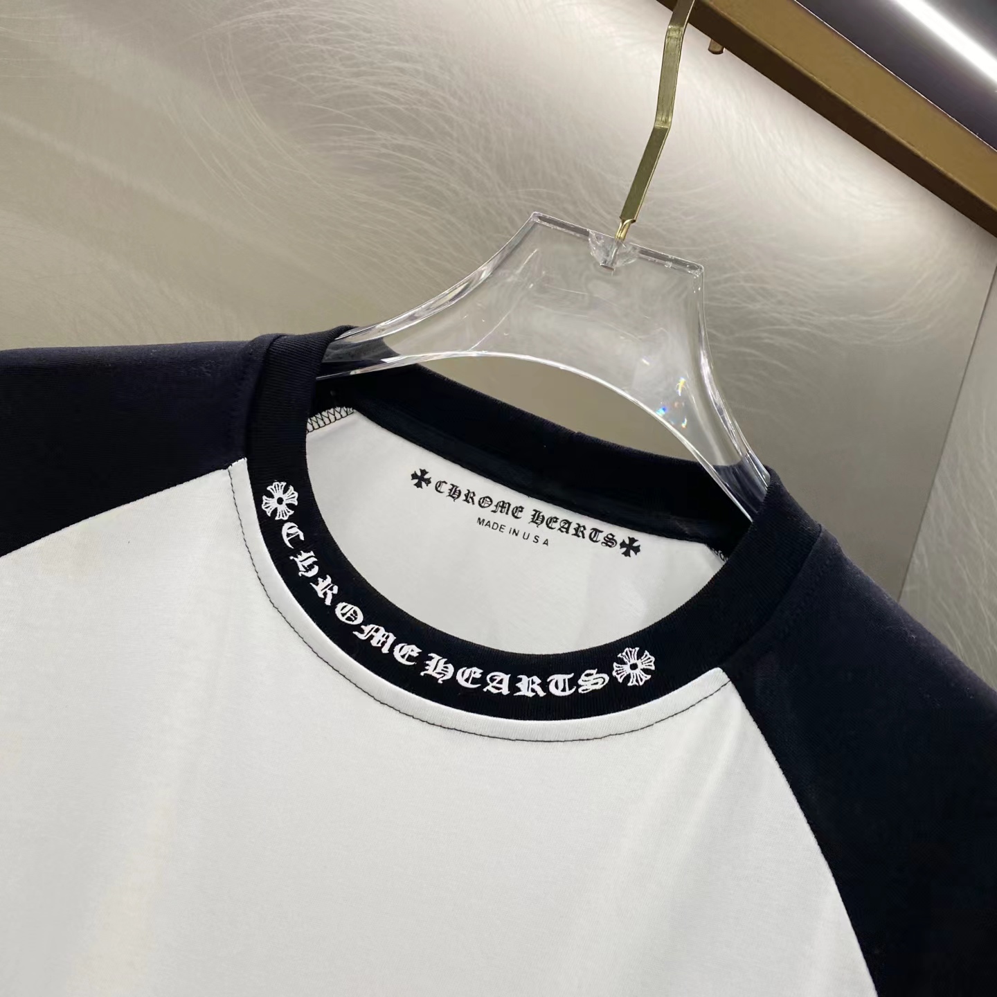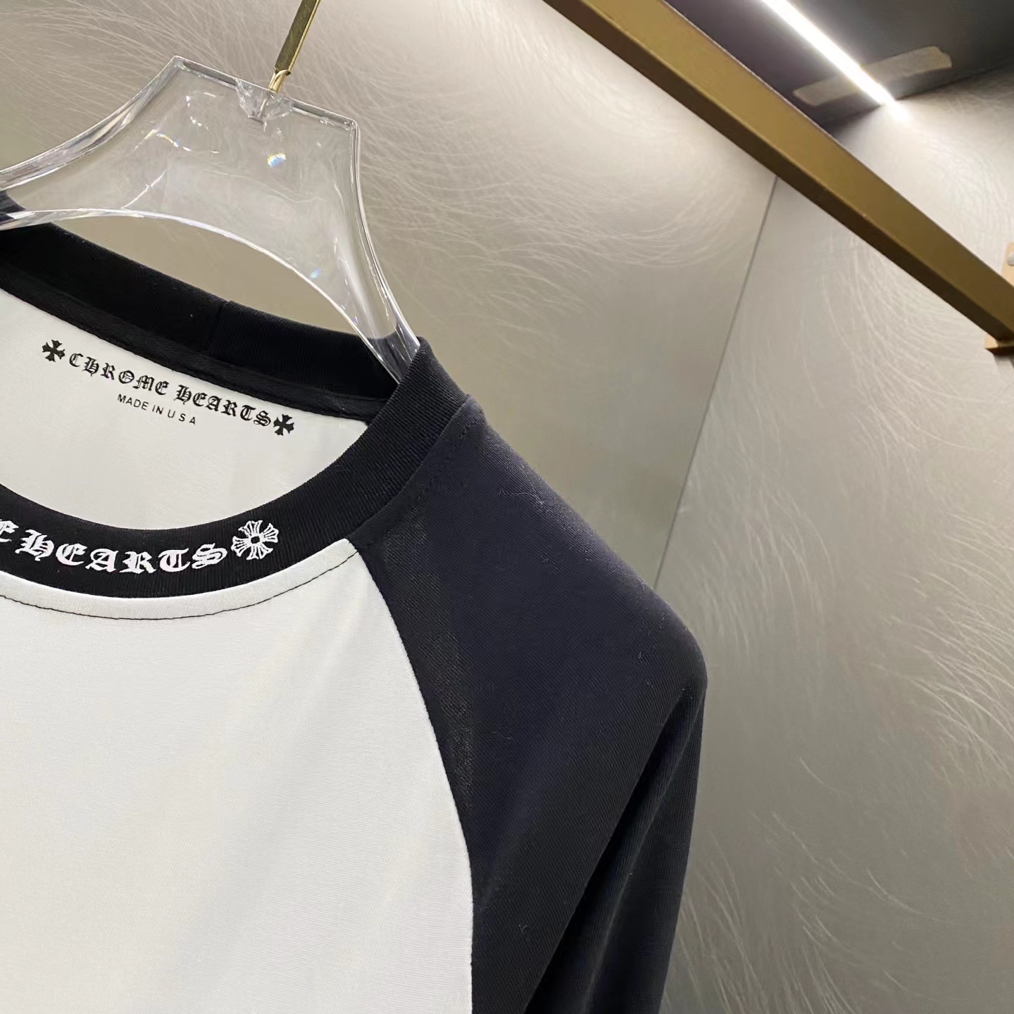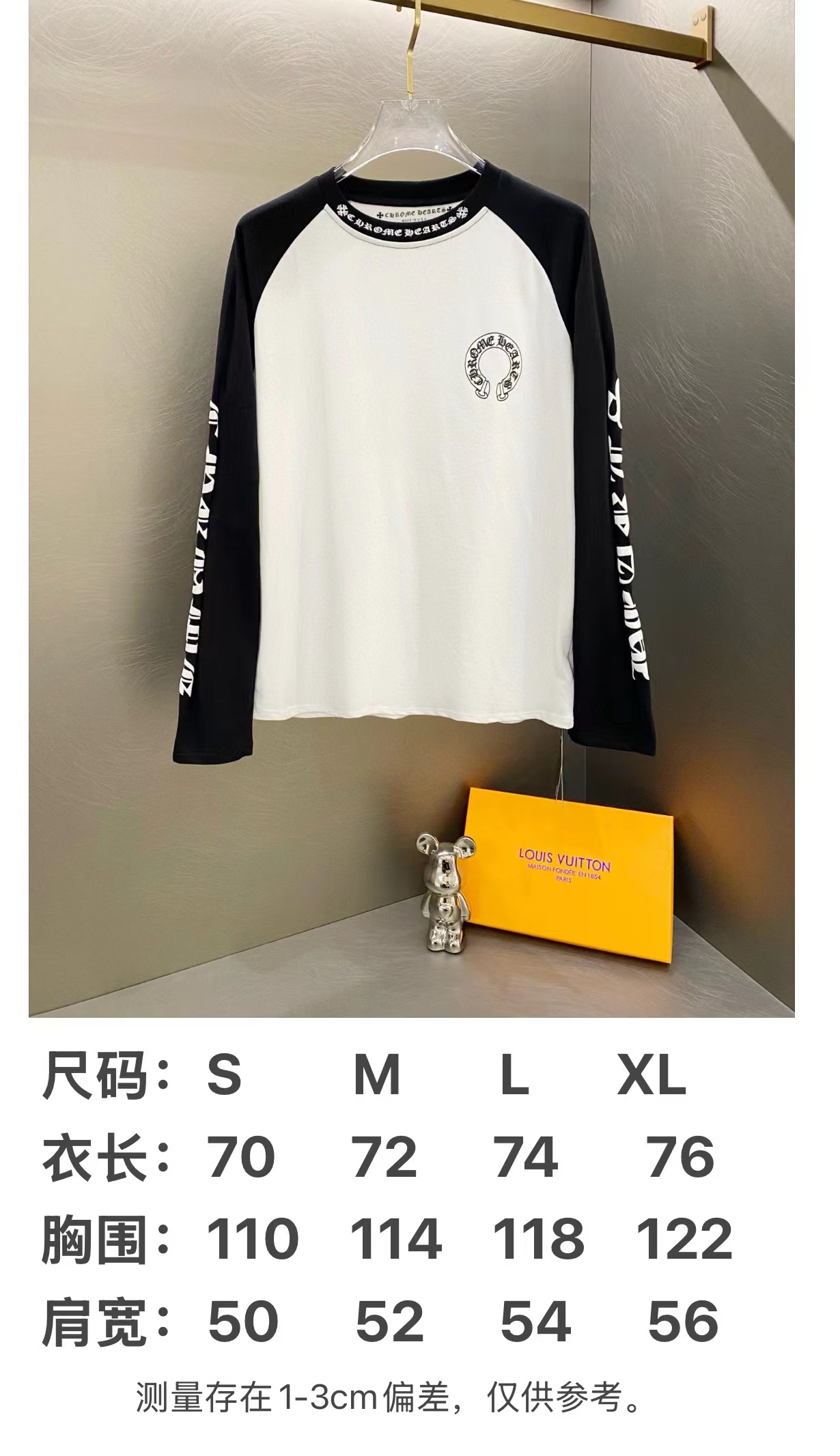时髦精的显瘦tee,短袖+长袖一起。胸口印花做旧复古圆领E041888