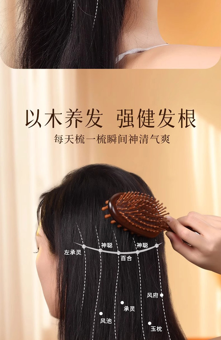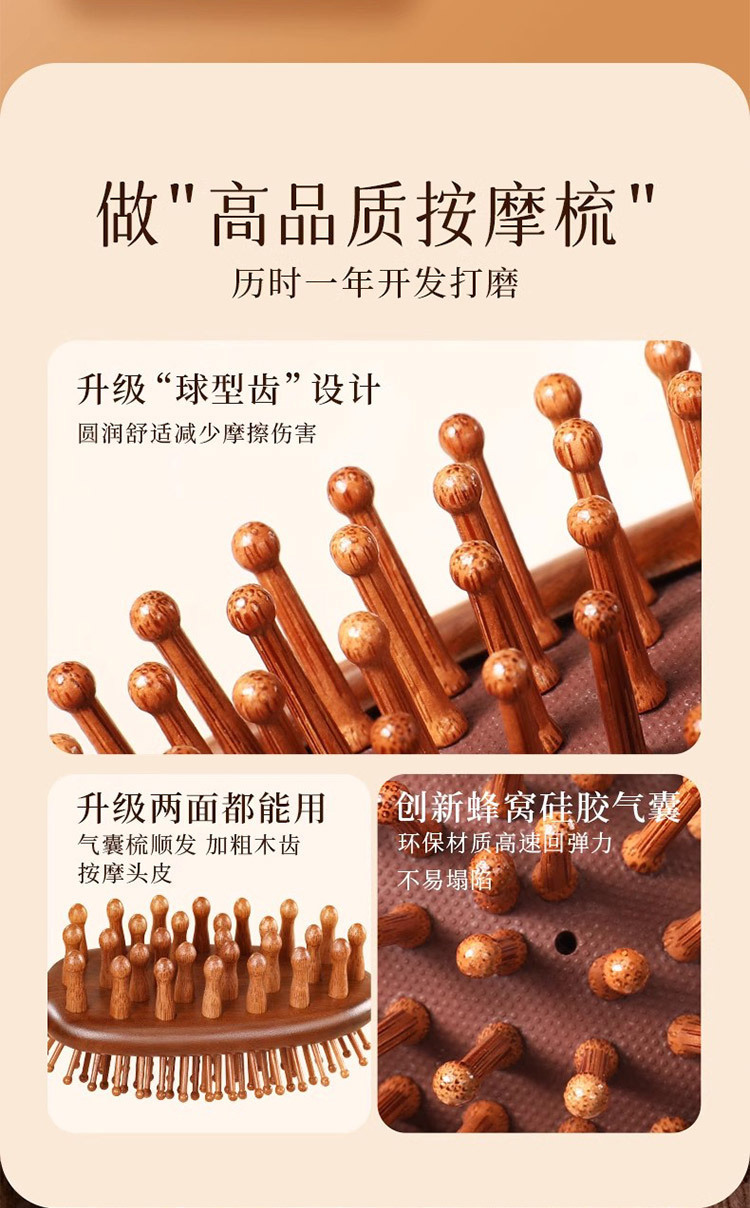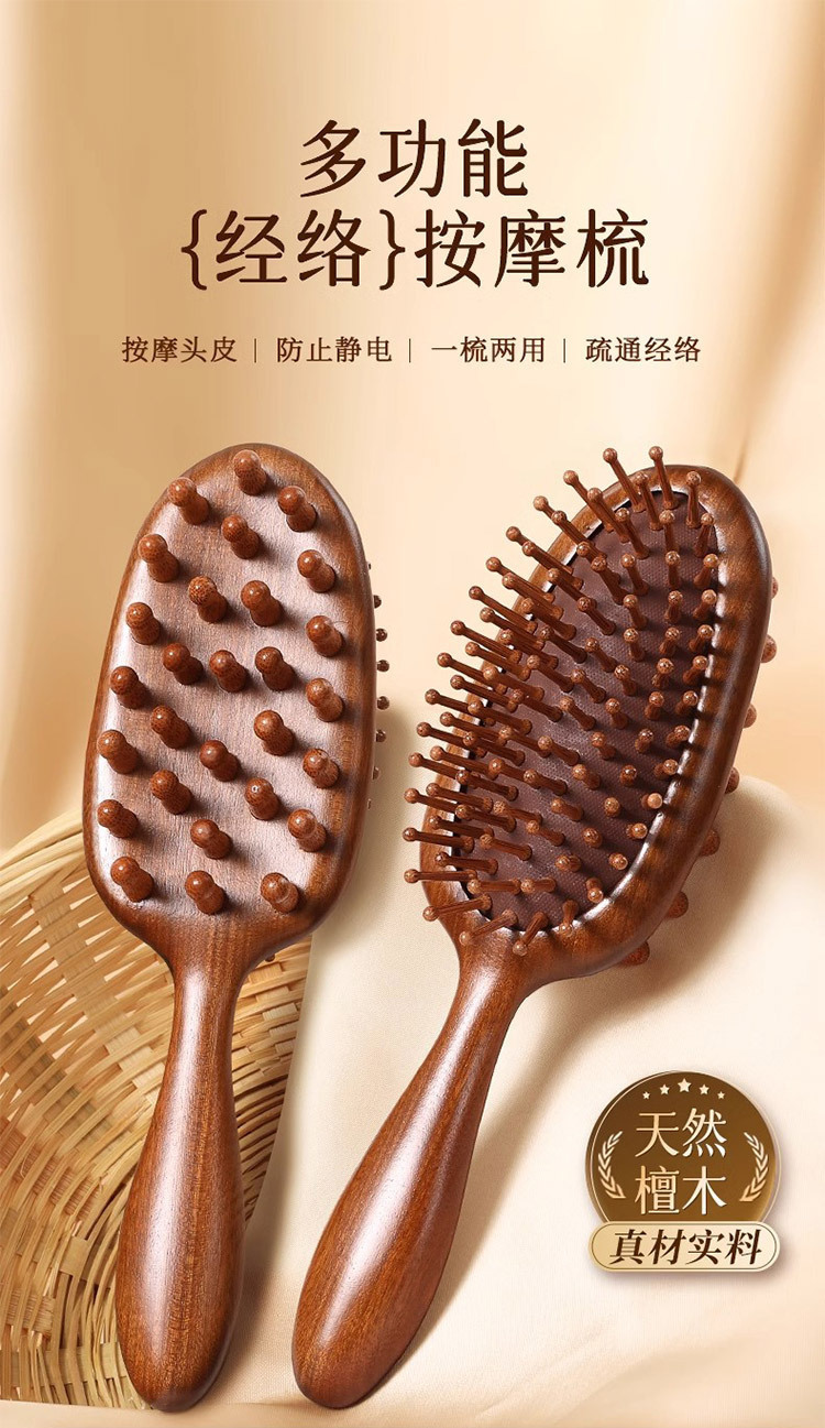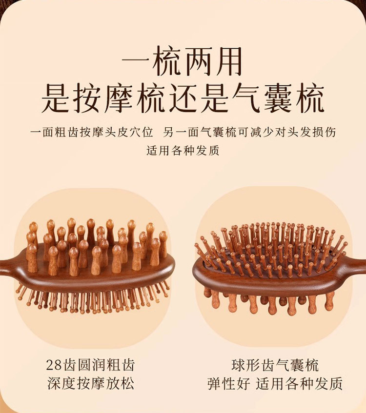 【多功能❗️檀木双面气囊梳】一梳两用全方位按摩,抚平毛躁不扯头发,圆润梳齿疏通经络,插齿工艺更结实耐用,钉钉梳头部经络头皮养生梳防脱发QQ
