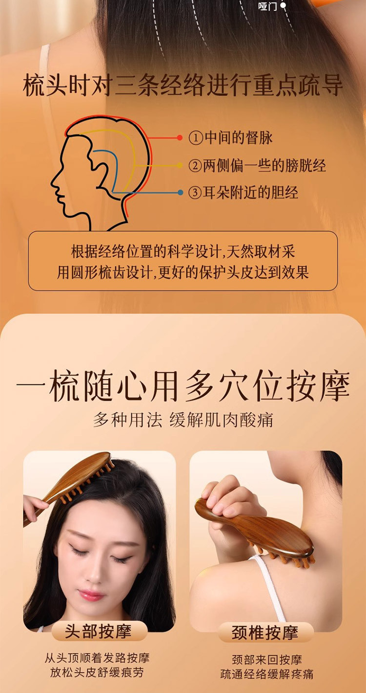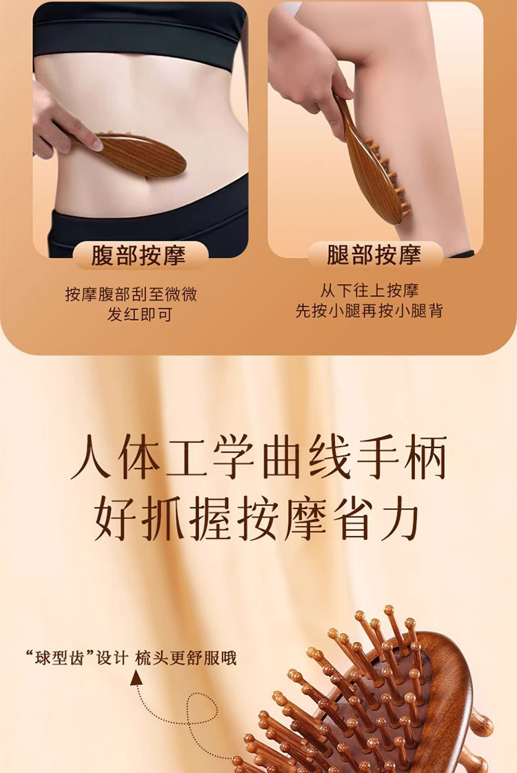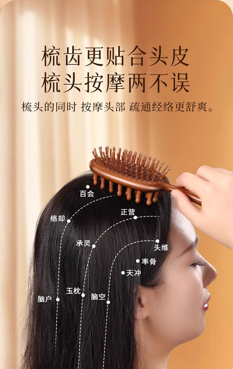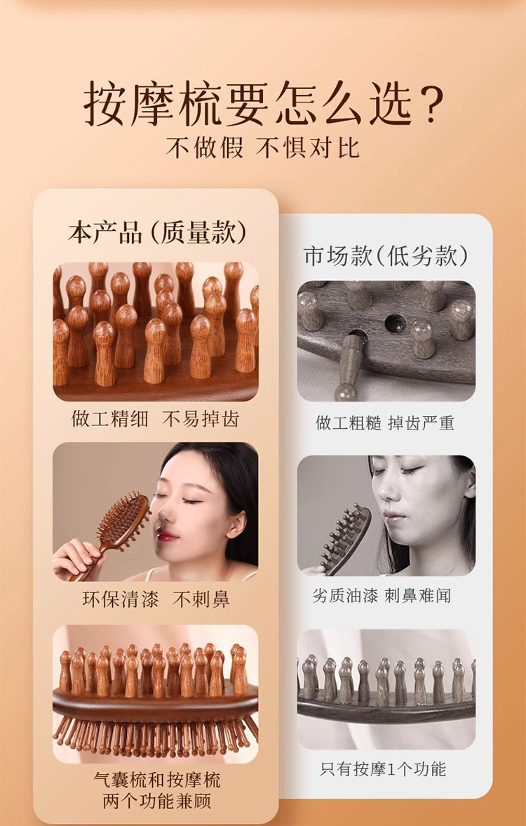 【多功能❗️檀木双面气囊梳】一梳两用全方位按摩,抚平毛躁不扯头发,圆润梳齿疏通经络,插齿工艺更结实耐用,钉钉梳头部经络头皮养生梳防脱发QQ