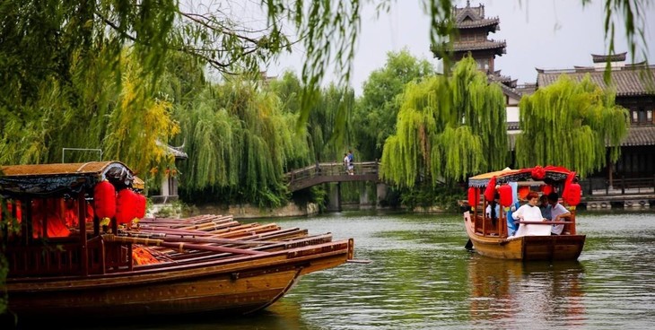 乘坐摇橹船沿途欣赏江苏十二园美景