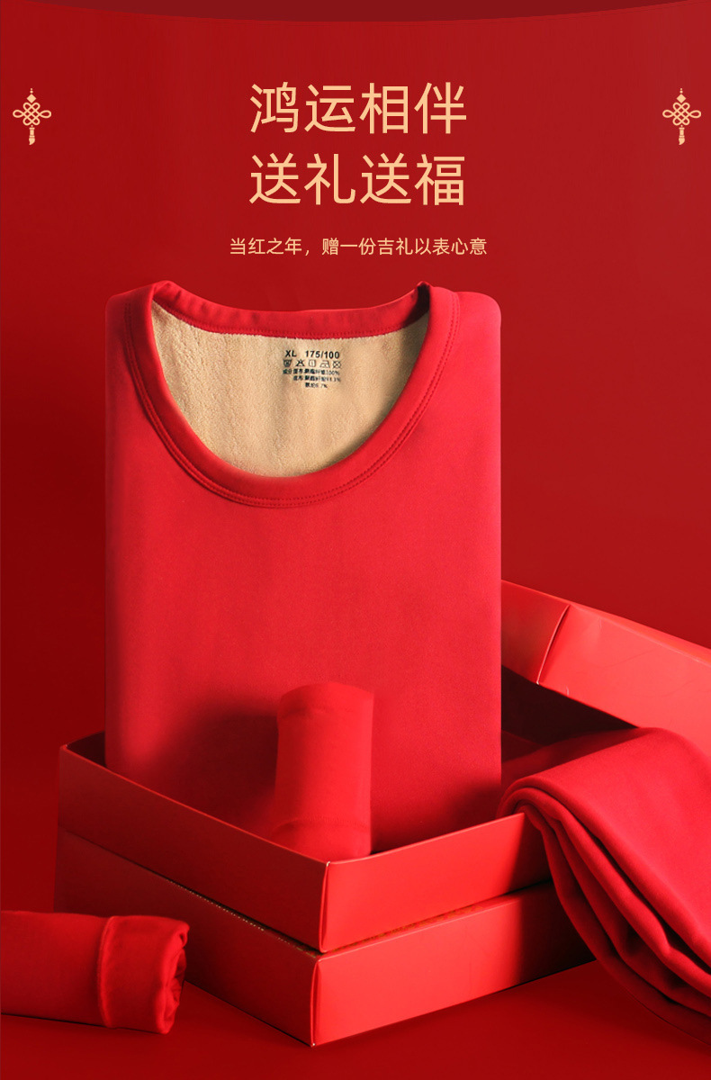 【开运大吉,好运一整年!】情侣保暖内衣 秋衣秋裤纯棉 2025蛇年大红色 本命年保暖内衣男 加绒加厚 新婚红色秋衣秋裤套装女。ry